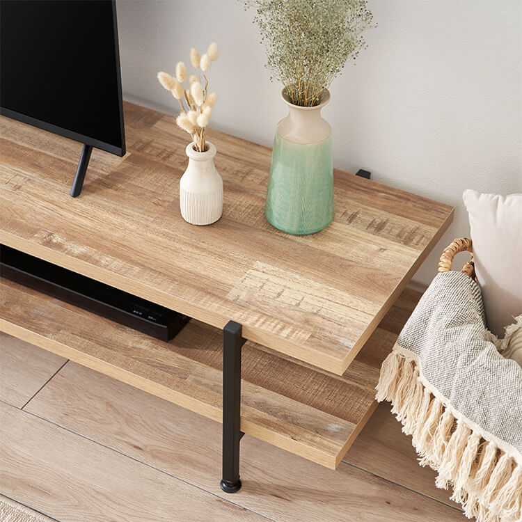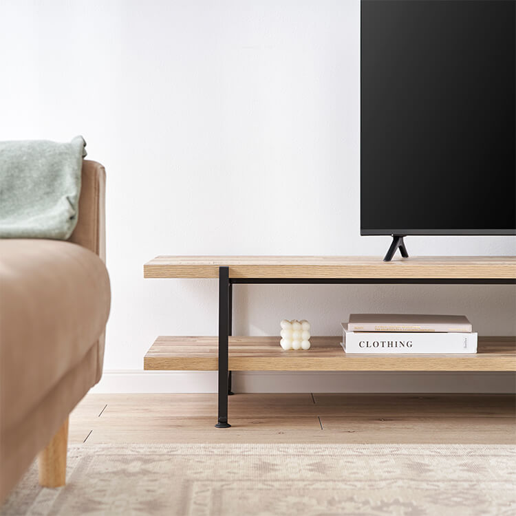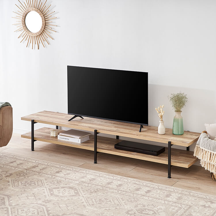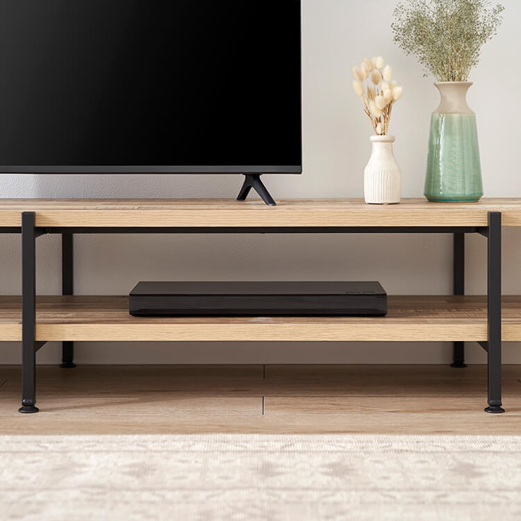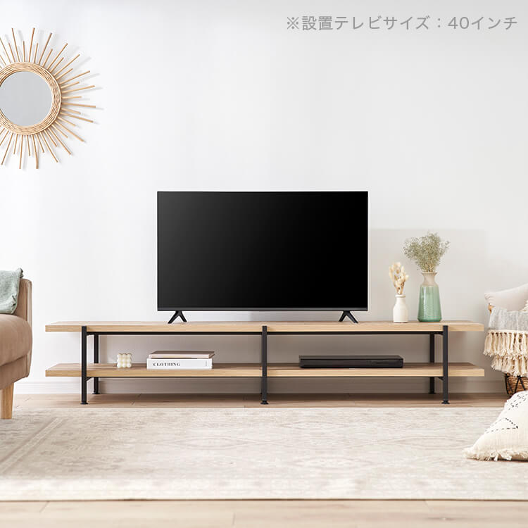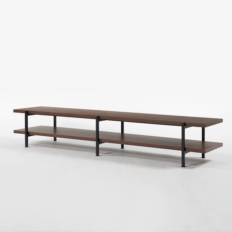 利便性の高さと美しさを併せ持つインダストリアル調のテレビボード[幅180cm]。シンプルなデザインで使いやすく、男前系に限らず様々なテイストのお部屋に馴染んでくれます。シンプルな異素材の組み合わせが、装飾で飾られたデザインとは違った魅力に。シンプルだからこそ、自分の理想の空間が叶うインダストリアル調シリーズです。こちらは当社デザイナーが独自のこだわりをもって完成させたオリジナル商品です。シンプルな中にも、他には無い味わいをデザインに落とし込み、カタチにしました。広々使えて余裕のある幅180cmタイプの天板は、テレビはもちろんお気に入りの雑貨を置くスペースとしてもぴったり!ロータイプのディスプレイ棚としても活躍します。
