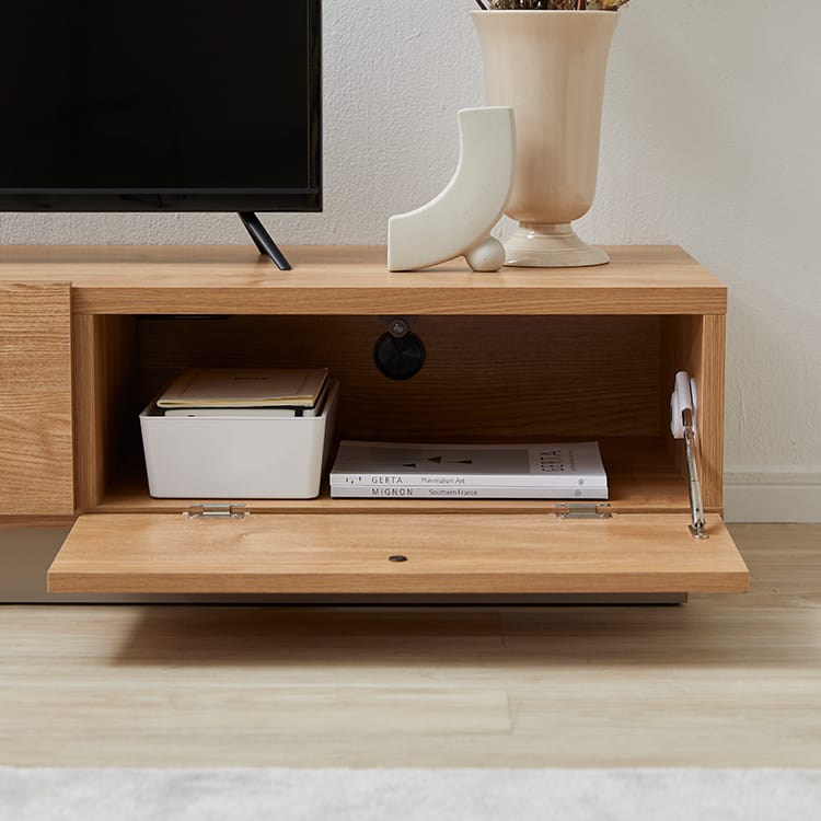 お部屋を選ばない木目調とグレージュのMIXデザイン。選べる豊富な横幅。見た目もサイズ感も色んなお部屋にジャストにハマる、日本製テレビ台です。熟練の家具職人が1つ1つ丁寧に真心込めつくり上げたこのテレビ台。確かな技術のもと、細部に至るまで匠の技が光ります。幅110cmから140cmまで、お部屋にぴったりのサイズをお選びいただけます。サイズとカラーが選べるこのテレビ台シリーズ。あなたのお部屋に合う組み合わせはどれ?