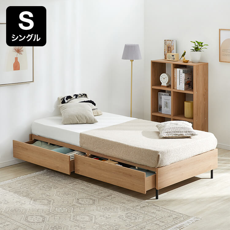 ベッドフレーム 収納付きベッド すのこベッド 木製ベッド スチール脚 [S]