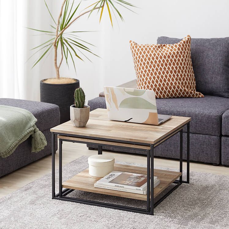 2つ並べて天板スペースを広げたり、単品使いでも使い方広がる機能性。すっきりした細脚と、リアルな木目調の3Dペーパーのデザイン性。その全てを兼ね備えたネストテーブルが、こなれた空間を演出します。