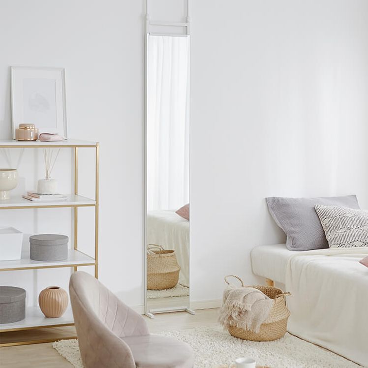 壁と天井さえあれば、場所を選ばずに設置できるスタンドミラーです。鏡を垂直に設置することができる突っ張り式で、よりリアルな姿を映し出すことができ、場所も取らず限られたスペースを有効活用できます。