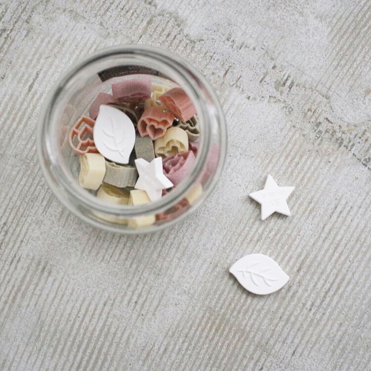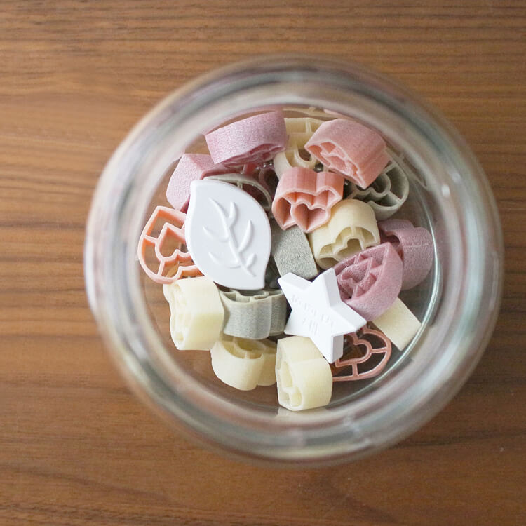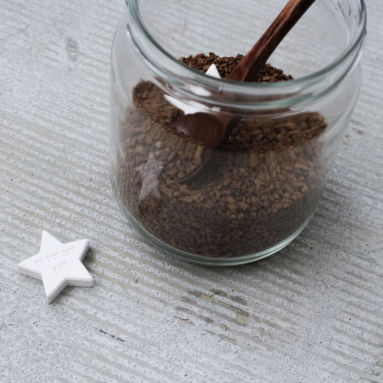 吸湿性に優れた珪藻土を使って作られた乾燥剤。乾燥剤といえば使い捨てがほとんどですが、このドライモチーフは繰り返し使えるエコな乾燥剤です。毎日の暮らしで使われるモノ、心地よいと感じるモノに囲まれてすごして欲しい。生活の中にさりげなく、よりそえるように。そんな思いを込めてモノづくりをしています。料理に使う砂糖や塩、しばらくすると固まってダマになってしまう……。そんな時はこの乾燥剤をひとつ砂糖や塩の入れ物にそれぞれ入れておくだけでさらさらな状態を保つことができます。モチーフ違いで揃えても可愛くおしゃれにコーディネートが楽しめます。※リーフは別ページでの販売です。