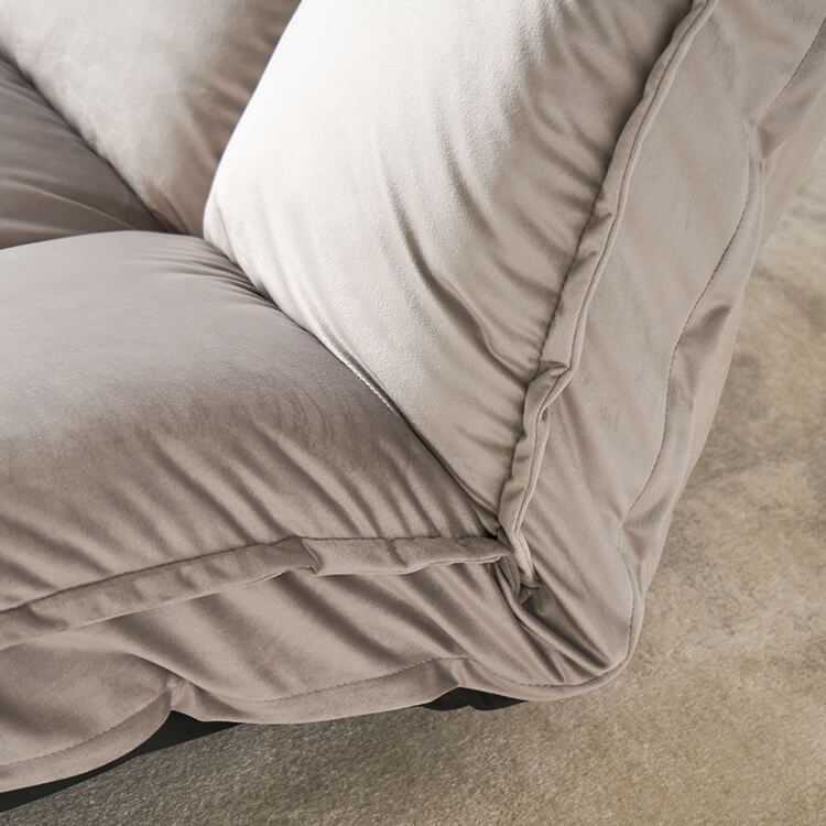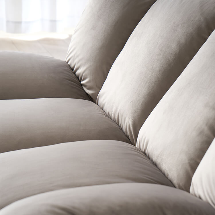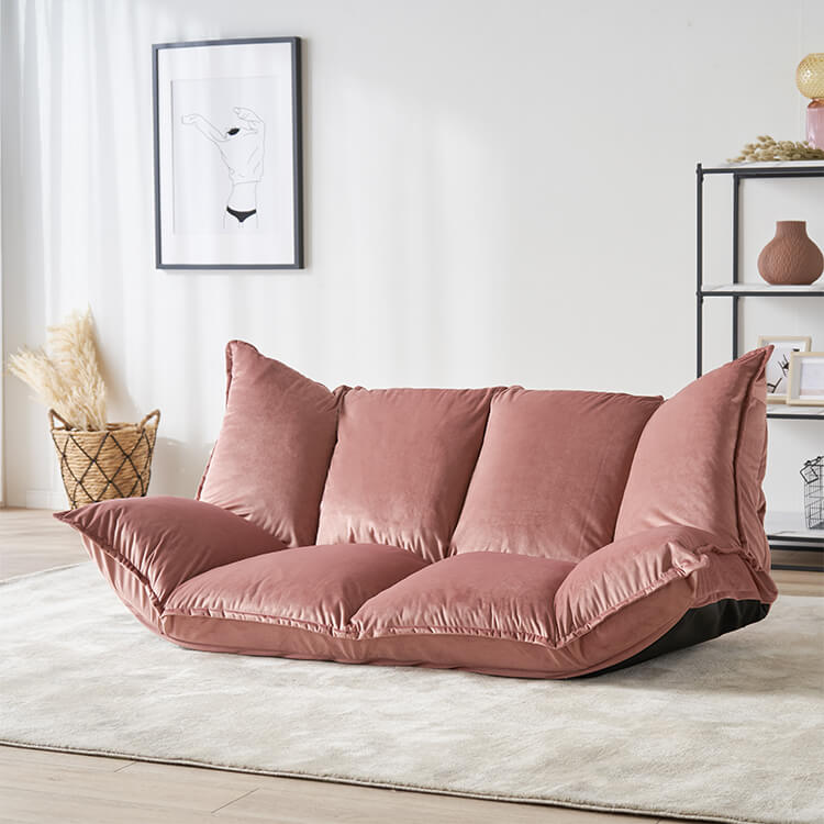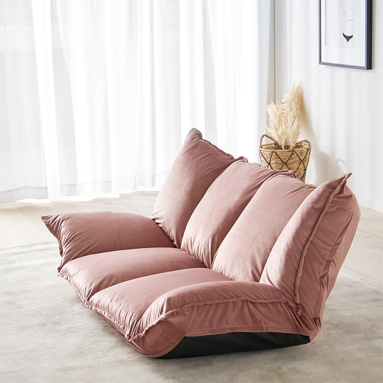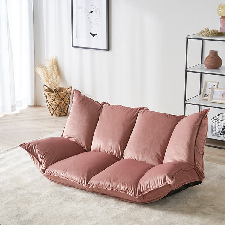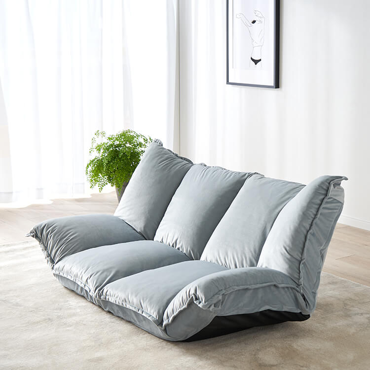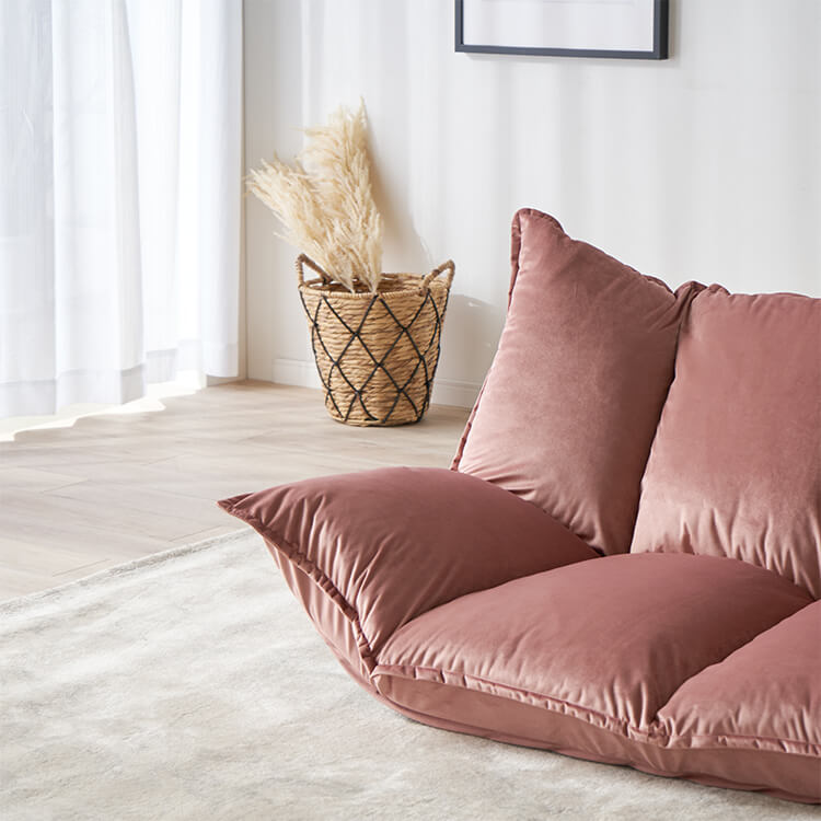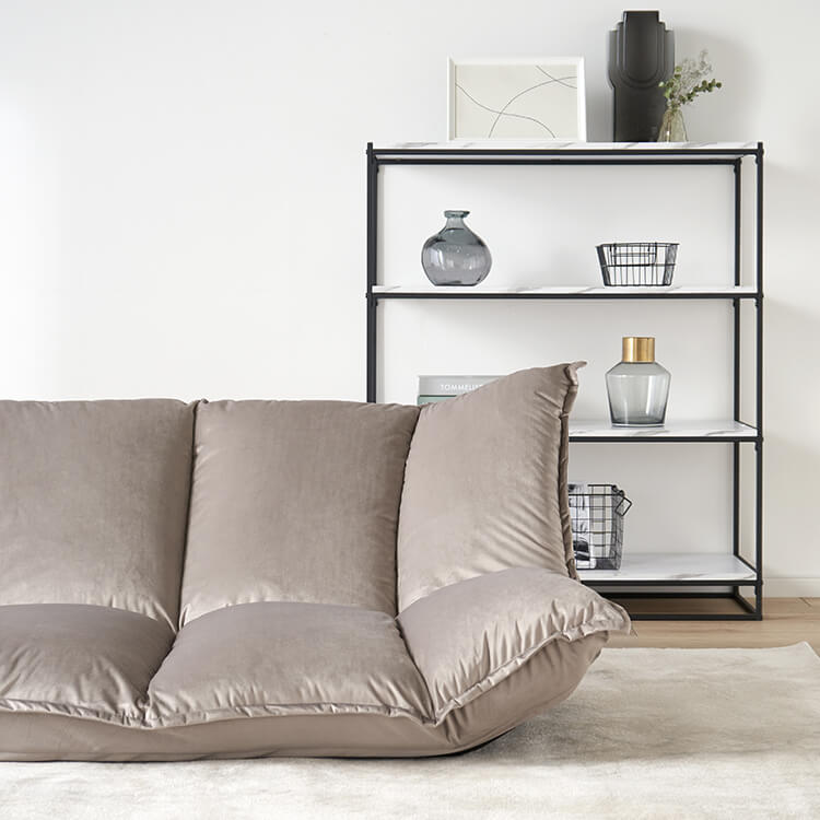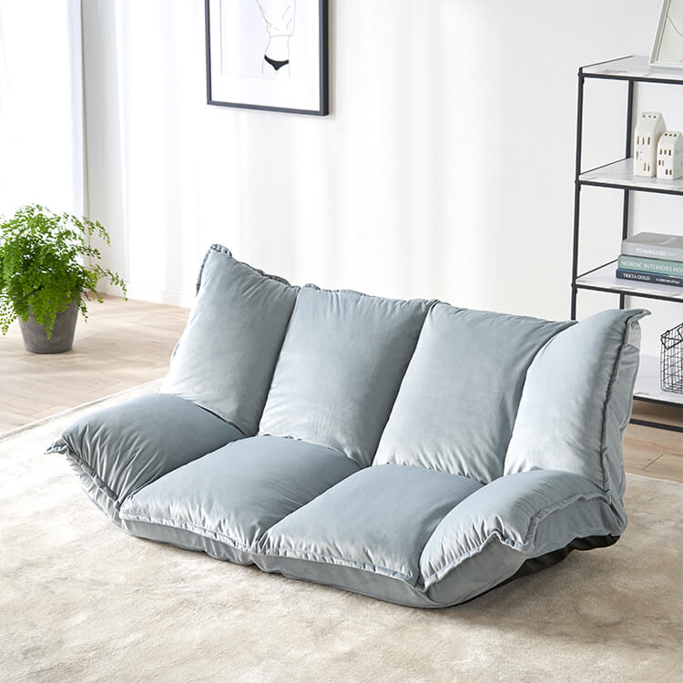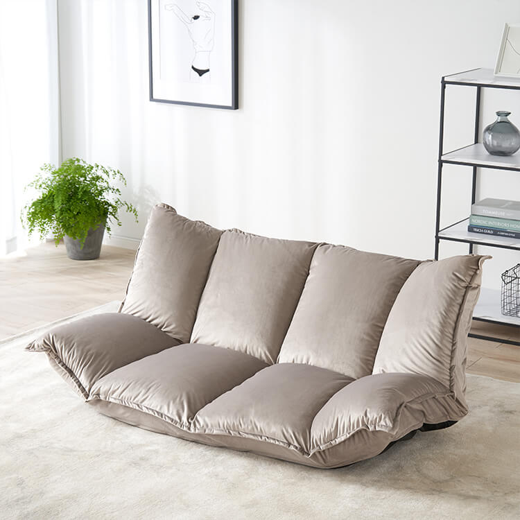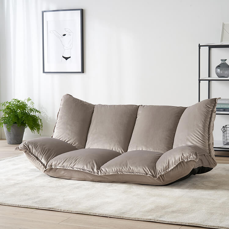 自由に形を変えてひと休み。ついウトウトしてしまうほどの心地よさがクセになるリクライニングフロアソファです。当社で人気のソファが、嬉しい細かなリクライニング機能はそのままに、よりおしゃれなデザインになりました!高さを抑えたロータイプでお部屋もスッキリ!開放感のあるくつろぎ部屋をお作りします。ゴージャスで煌びやかな印象があるベルベット調生地ですが、実はナチュラルテイストのお部屋とも相性◎生地特有のなめらかな手触りは、身体をやわらかく受け止めてくれます。