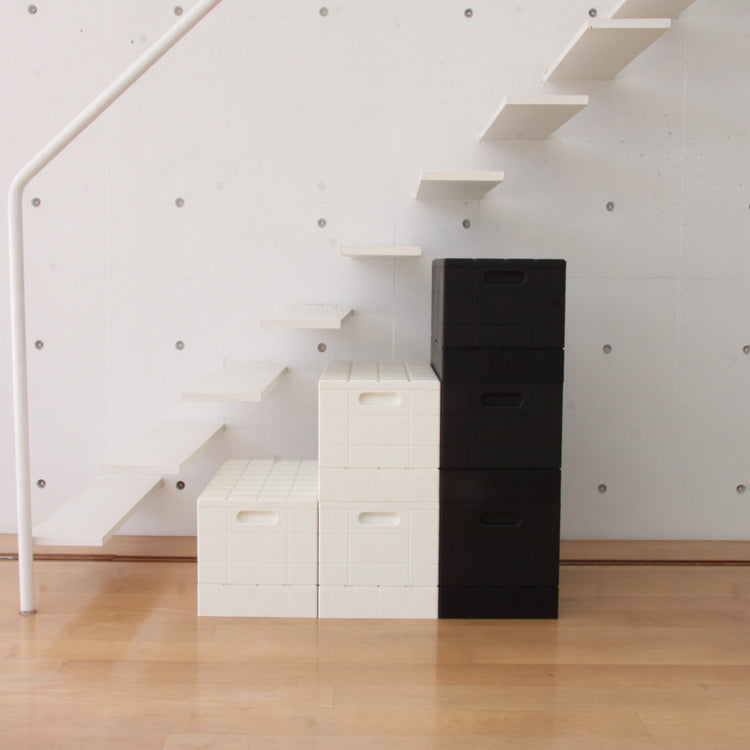 上面の凸凹を利用してブロックのように自由に積み上げることができる収納コンテナです。美しく機能的な日用品をつくるためにスタートしたブランドI’m D(アイムディー)。デザインを大切に、生活に価値をつくるアイテムを生み出しています。内容量は38.5L入る頼もしさ。蓋耐荷重(蓋をして均等に重さがかかる状態で)約100kgまで耐えられるので、ベンチとしても使えます。お出かけグッズを入れて玄関に置いたり、キャンプやBBQでも活躍します。使わない時はコンパクトに折り畳め、テーブルの下や部屋のすき間に収納できます。