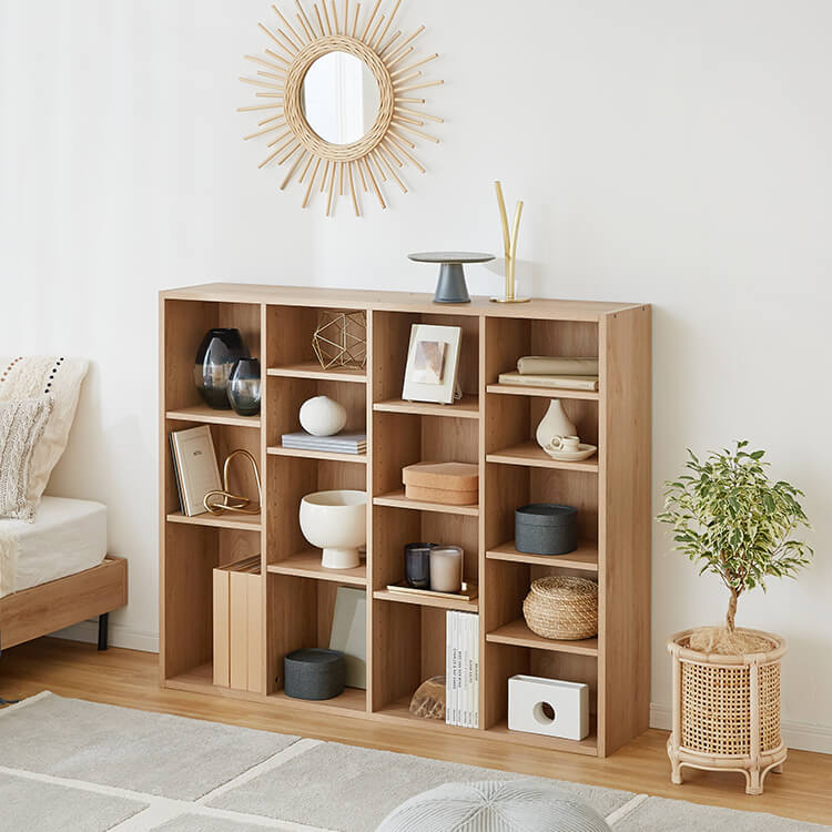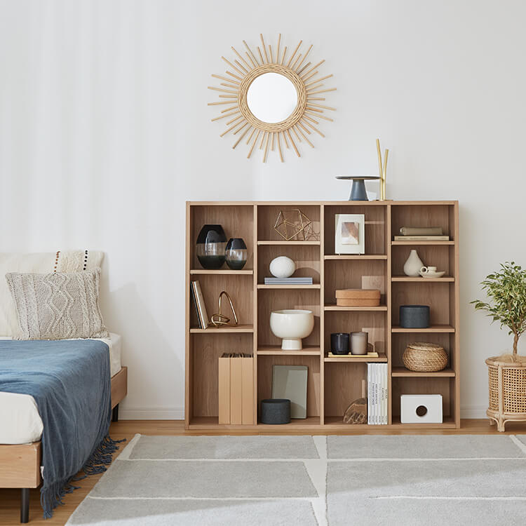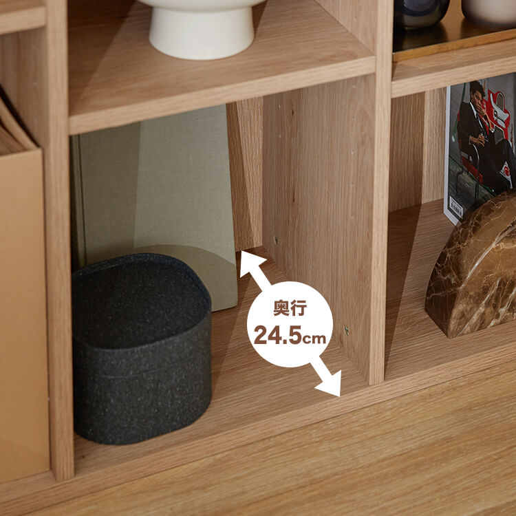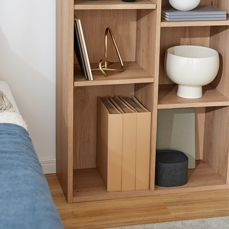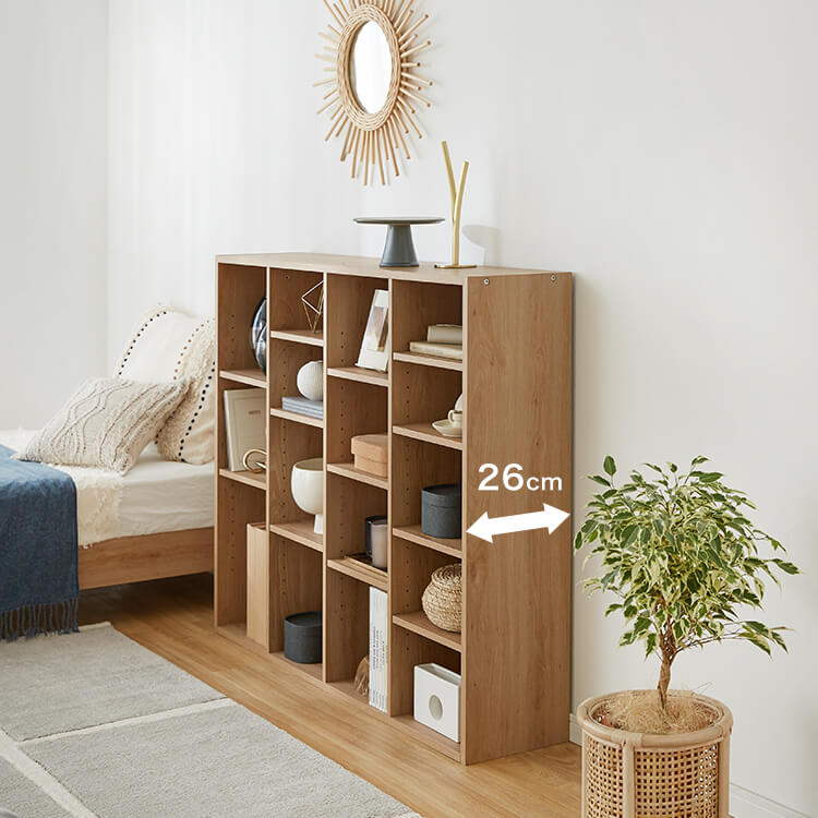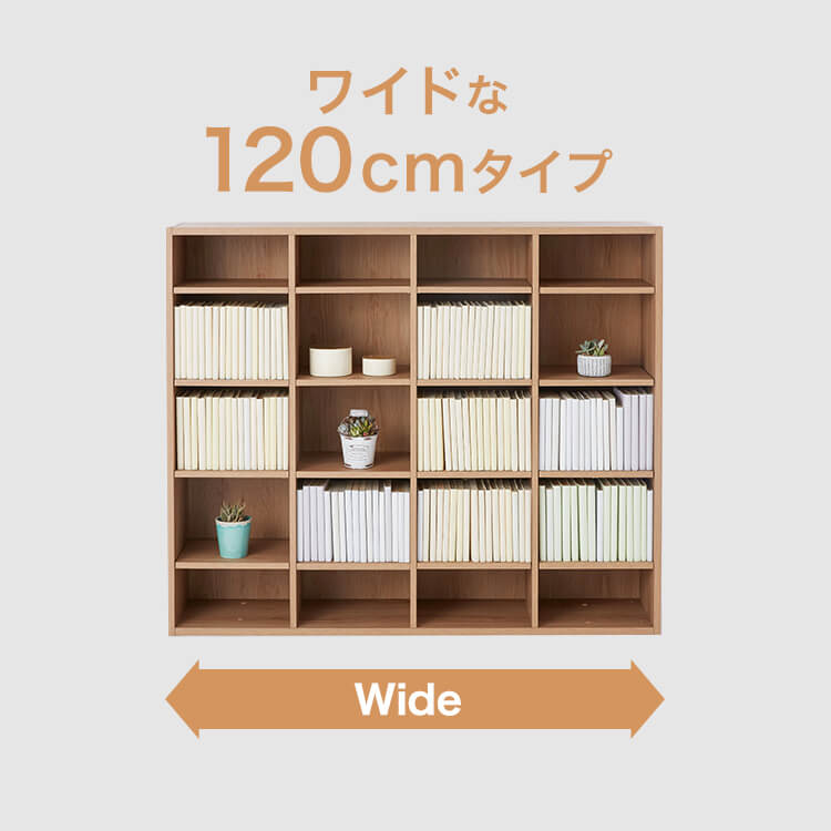 お部屋に溢れる本たちを、一つの本棚にひとまとめ。2個セットで縦に重ねてハイタイプにも、ミドルタイプのまま横に並べても。自分仕様にデザインする本棚として、空間に合わせた自由度の高さが魅力です。豊富な収納力が魅力の120cmタイプ。お気に入りの本・雑誌から雑貨までしっかり収められる大容量タイプです。増え続ける本や雑誌たちを、お好みで個別の棚サイズで格納。サイズ違いのものをガタガタ収納で、小さな文庫本が埋もれてしまって見つからない!…なんてお悩みから解き放たれ、見た目にもスッキリ、眺めていたいMY本棚へ変身できます。棚は縦に2つ重ねてハイタイプ仕様にも出来ます。※こちらは2つ並べたイメージです※重ねて使用する際は、付属の転倒防止金具又は市販の転倒防止金具などで転倒予防対策を行ってください。※重ねて使用する際は、上段の天板には物を置かないでください。※床面との相性で、製品を設置した際にがたつきが出る場合は、 市販のフェルト等でがたつきを解消してください