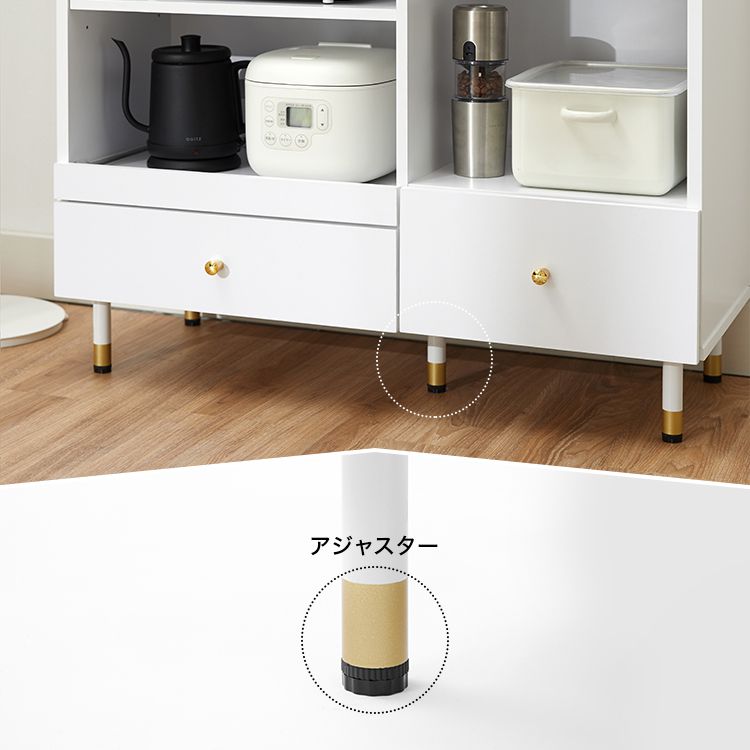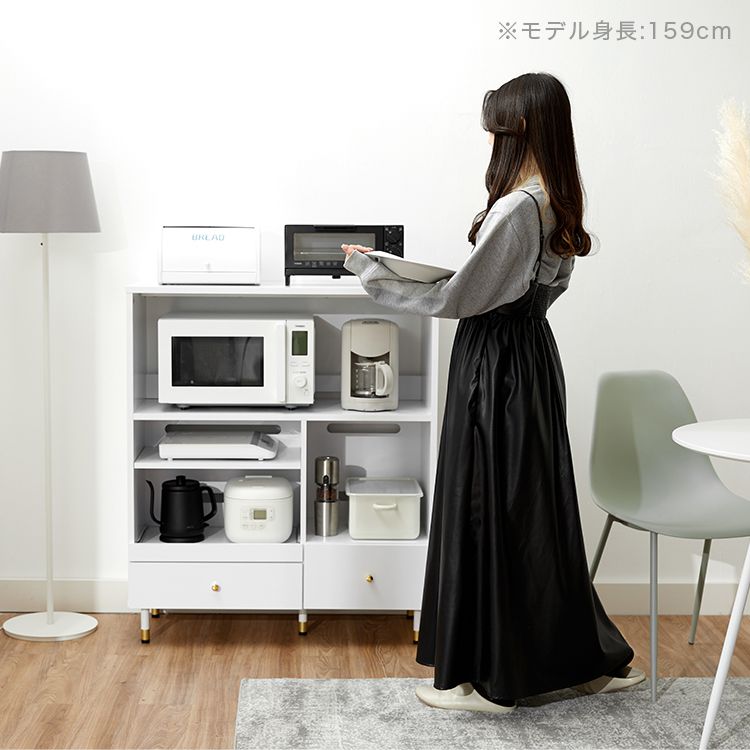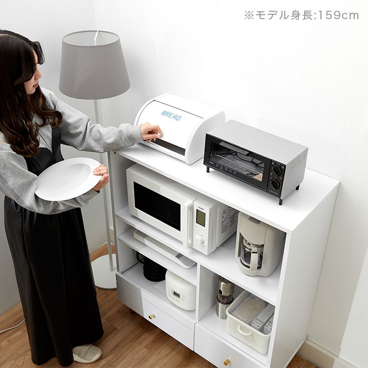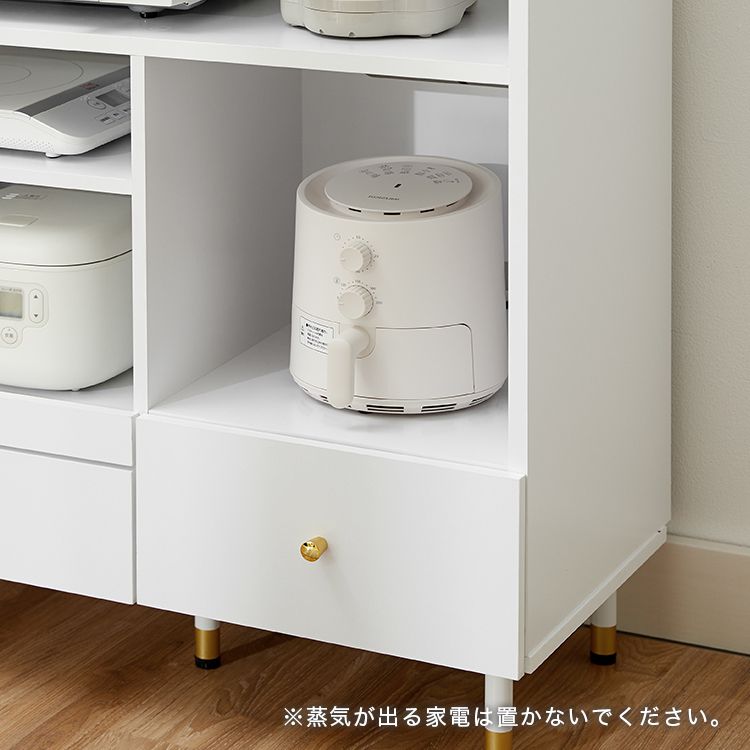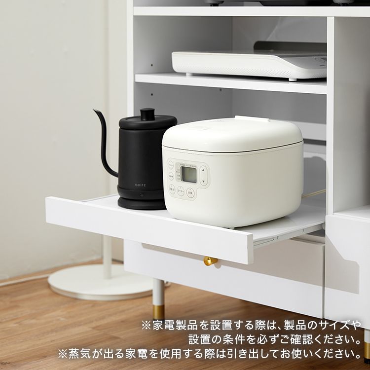 「隠す収納もいいけど、お気に入りの家電を見せて収納したい……」そんな方にオススメのキッチン収納です。家電をオシャレにディスプレイ感覚で見せて収納しちゃいましょう。隠す収納だけだと物足りない方の悩みを解決!一か所に収納できるので、使いやすく便利なキッチンが叶います。使う頻度の高い、炊飯器や電子レンジ、ケトルなどの家電をまとめて仕舞える設計にしました!トースターなどの軽量家電やよく使う調味料を置いたり、ちょっとした作業場としても使える天板スペース。 シーンに合わせて幅広く活用できます。(※家電製品を設置する際は、製品のサイズや設置の条件を必ずご確認ください。)