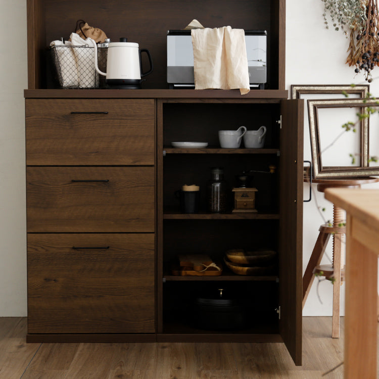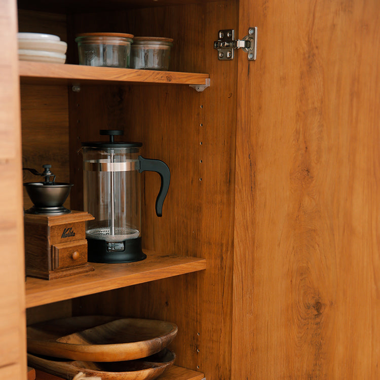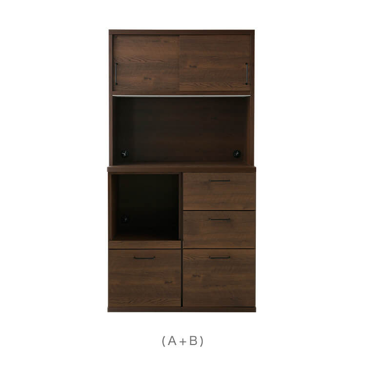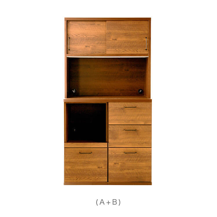 自分でじっくり選んだものほど、愛着を持って長く使いたくなるもの。毎日の使用シーンを想像しながら、あなただけのお気に入りキッチンを。熟練の家具職人が一つ一つ丁寧に真心こめて作り上げた完成度の高いキッチン収納。 安価な輸入品とは違い、作り手のプライドと情熱が集結しています。下段の組み合わせパターンは「A+B」か「B+C」の2通りからお選びいただけます。2つの組み合わせから選べる下段収納は並び順も自由。生活にあった使い勝手を自分でカスタマイズすることができます。
