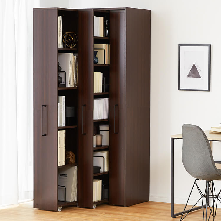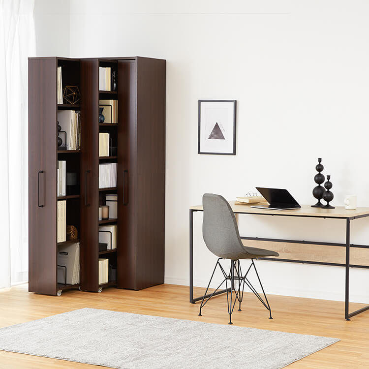 コミック・CD・DVDなど、「スリムな奥行」のモノから、雑誌・書類など「ワイドな奥行」のモノまでパワフルに収納します。「たっぷり収納したいけど、場所は取りたくない」そんな方におススメ!スペースの限られたワンルームやこども部屋に、大容量の収納スペースが作れます。幅64cmで、わずかなスペースにも置けるサイズ感。部屋が広々使えて、モノがすっきりと片付きます。「ワイドな奥行」と、「スリムな奥行」の異なる奥行のシェルフを合わせました。モノの奥行に合わせて、収納できるのが便利なポイントです!