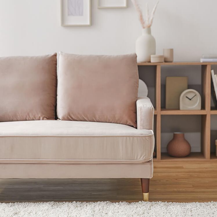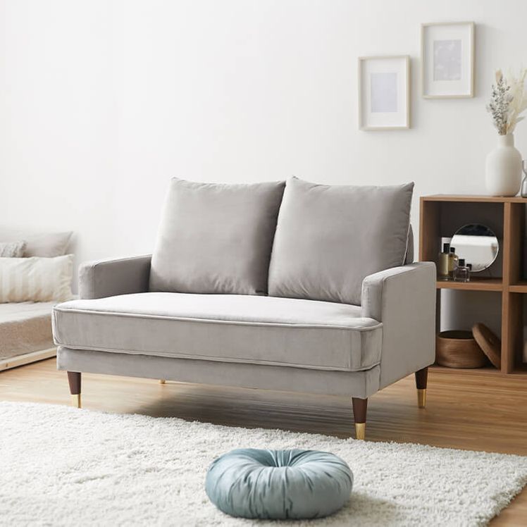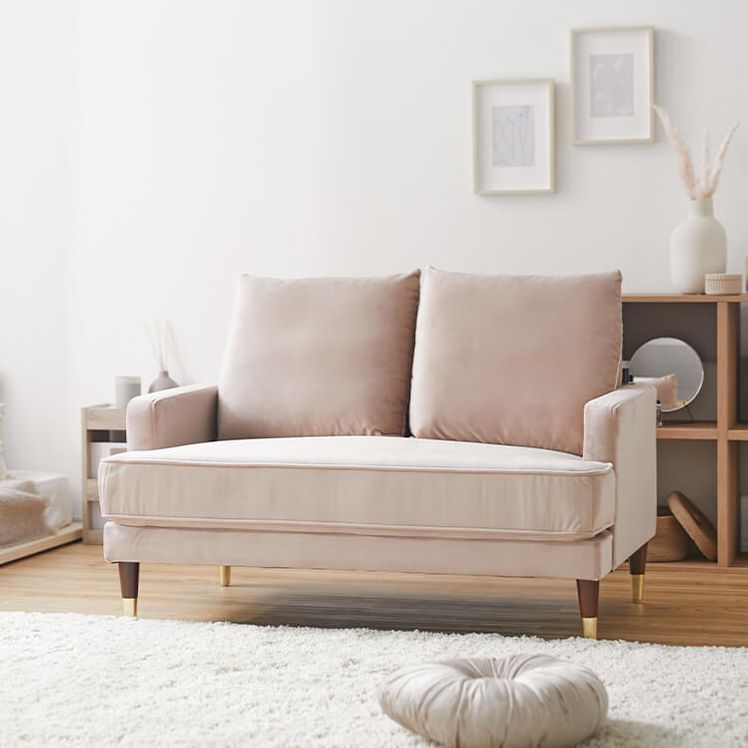 2人掛けソファ 木脚 クッション ベルベット調