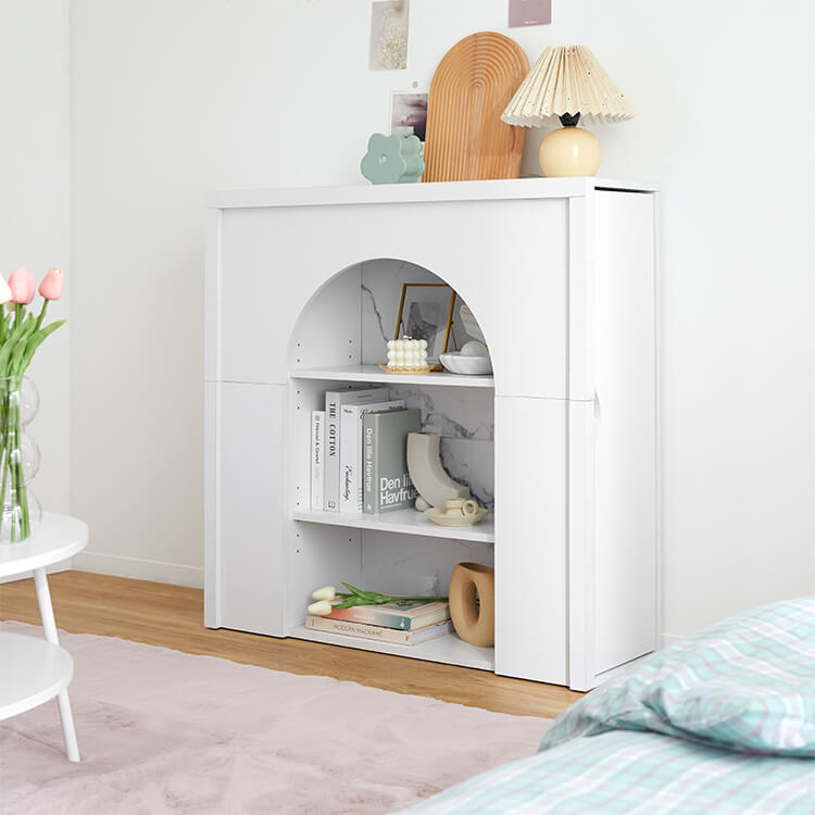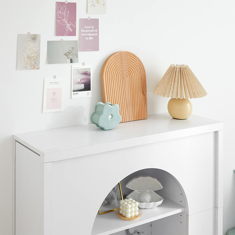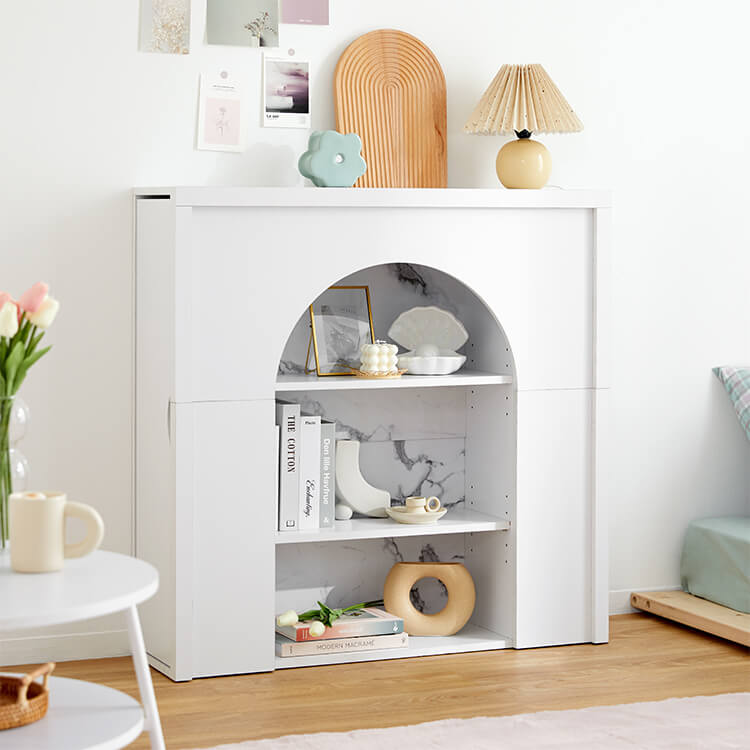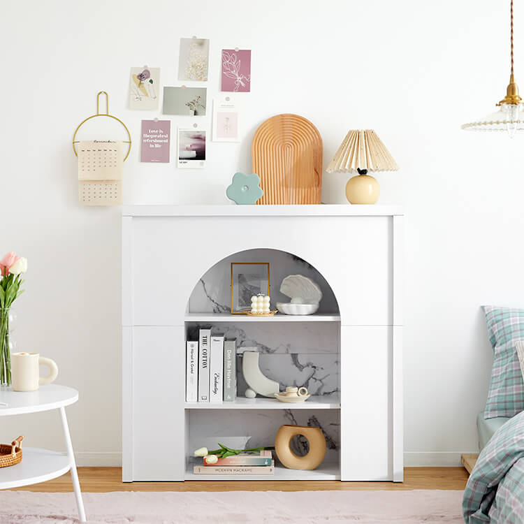 インテリアコーディネートの主役になるエレガントな収納棚付きマントルピース。寝室やリビング・ワンルームのお部屋に置くだけで、ときめく大人な女子部屋を演出してくれます。アンニュイな雰囲気が魅力の韓国インテリアシリーズ。おしゃれでどんなお部屋にも合わせやすく、お部屋をまるごとセンスアップしてくれます。様々なタイプのお部屋に取り入れやすいように、無駄な装飾を省いたシンプルなデザイン性・サイズ感に仕上げました。背板は、組み立て時に表面素材が選べるリバーシブル仕様に。お部屋のアクセントにもなるリアルな大理石柄と統一感が生まれるホワイトから選べます。