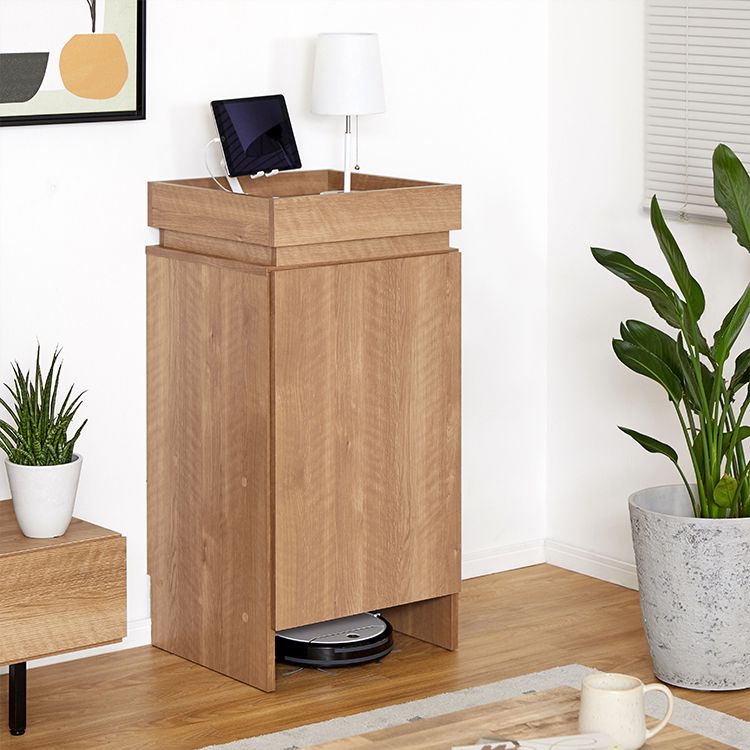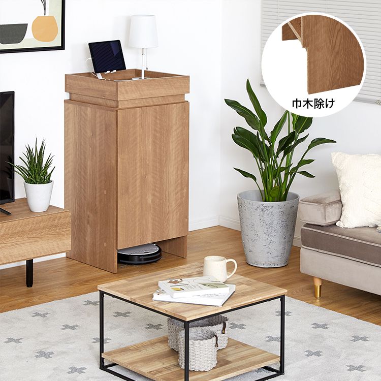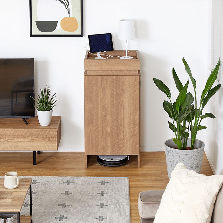 リビングに置くことが多い家電たちを、ひとまとめに収納できるキャビネット!「リビングボードは置けないけど、プリンターやタブレット周りを置ける場所が欲しい!」という方にオススメです。スマホやノートPC、ルーター、プリンター、お掃除ロボットなど、これらをしっかり収納できる豊富なスペースを完備。家電はもちろん、説明書などの書類も一緒にしまえるので便利さもアップします!こちらは、当社デザイナーが独自のこだわりを持って完成させたオリジナル商品です。お客様に満足いただけるよう信念をもって作り上げ完成させました。美しい木目で生活感を隠してくれる、フラットデザインに仕上げました。余計な装飾がないシンプルなキャビネットだからこそ、お部屋がスッキリとみえます。