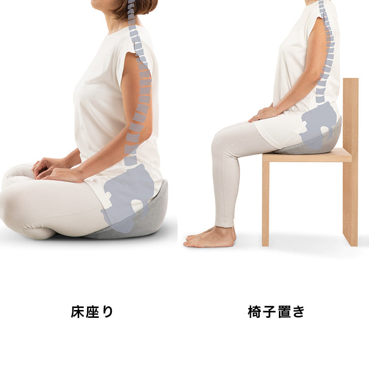 騎手の美しい姿勢を支える「鞍」の構造をヒントに、心地よい座りのかたちを追求して誕生した姿勢サポートシートです。「おうちで健康」をテーマに身体も心もはずむ、健やかなライフスタイルをサポートする&MEDICAL。身体が喜ぶここちよい体感や暮らしと調和するデザインを日々お届けしています。椅子の平らな座面と違い、お尻を前後・左右から包み込むようにフィットするため、やさしく心地よい座りをつくります。前部の盛り上がりと後部の背面サポートにより、床座りでも椅子置きでも、座るだけで骨盤の安定を助けます。