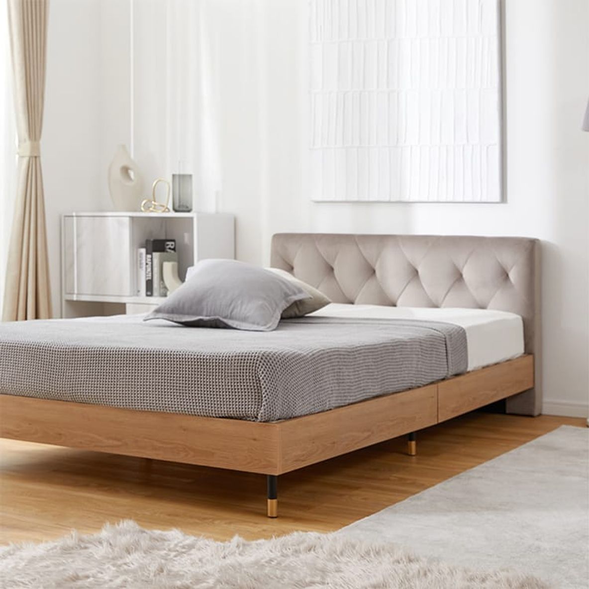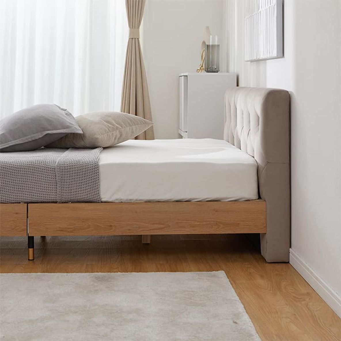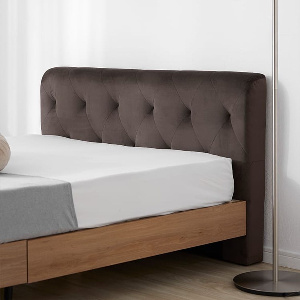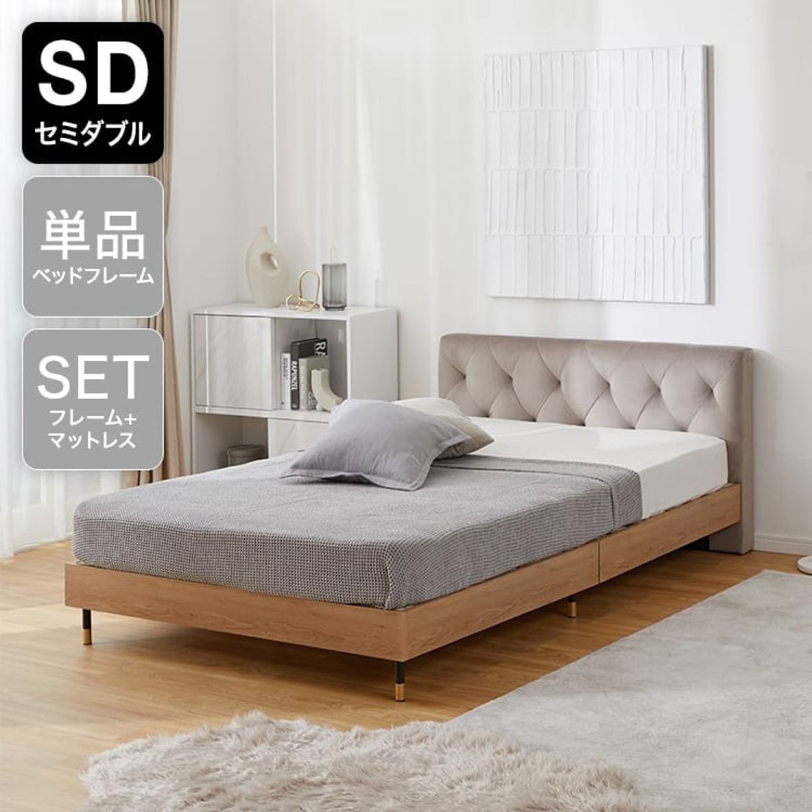 ベルベット調ヘッドボード 木製ベッドフレーム [SD]