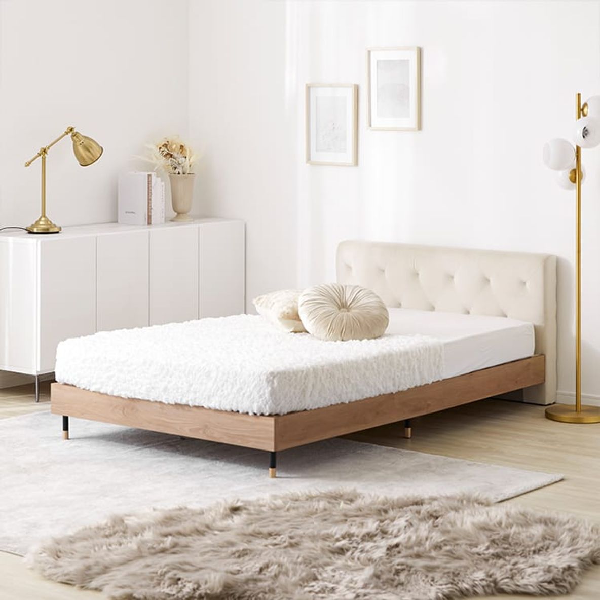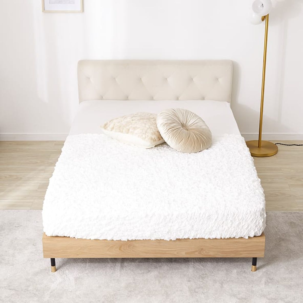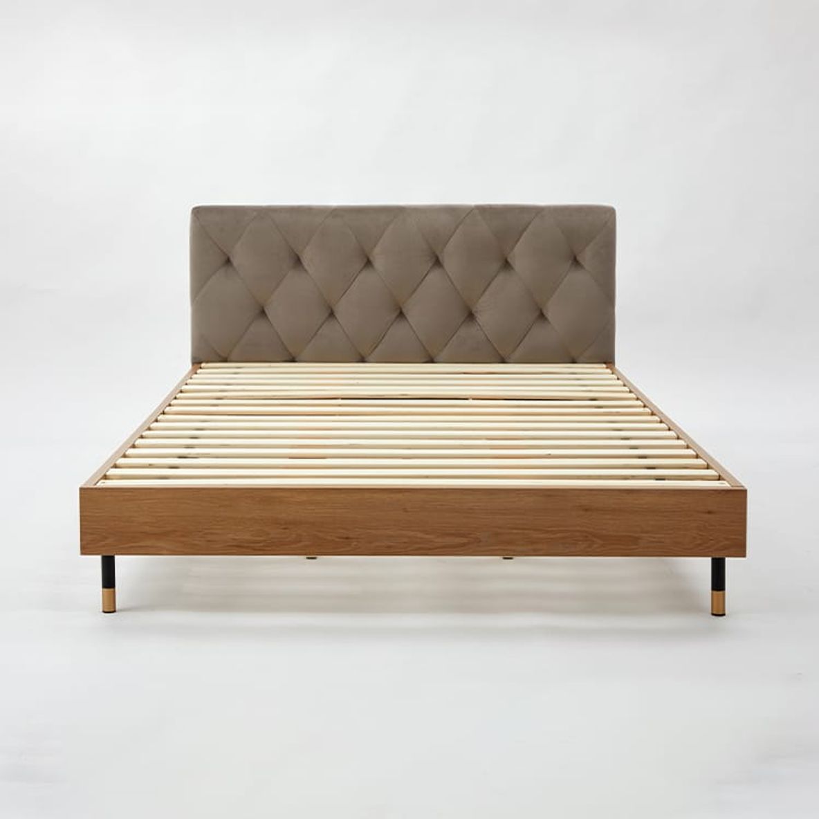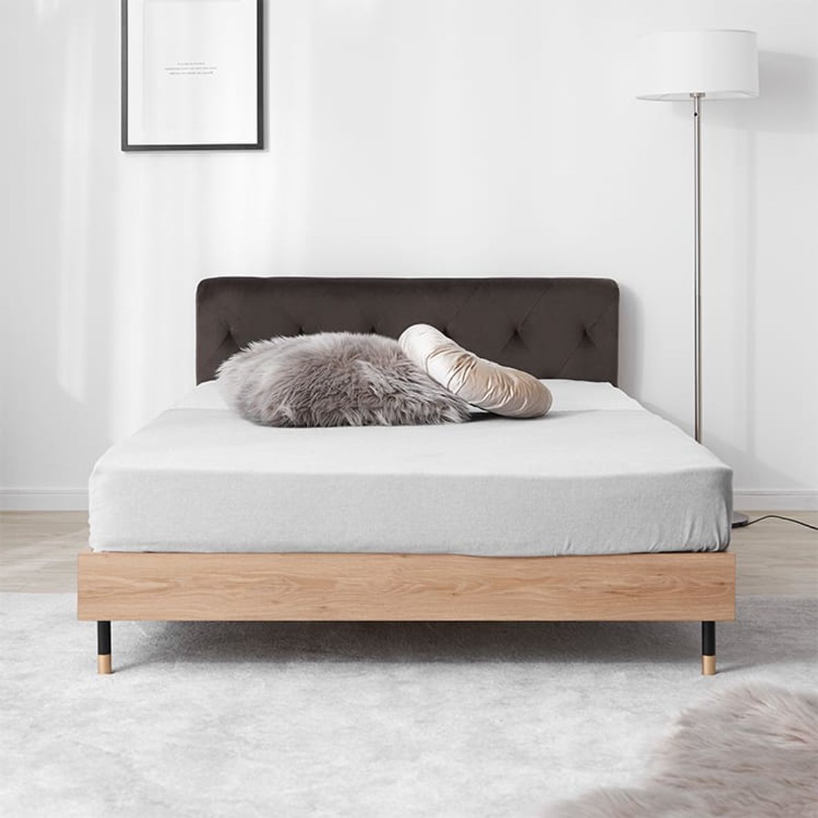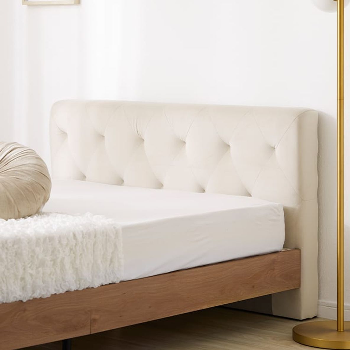 ベルベット調ヘッドボード 木製ベッドフレーム [SD]