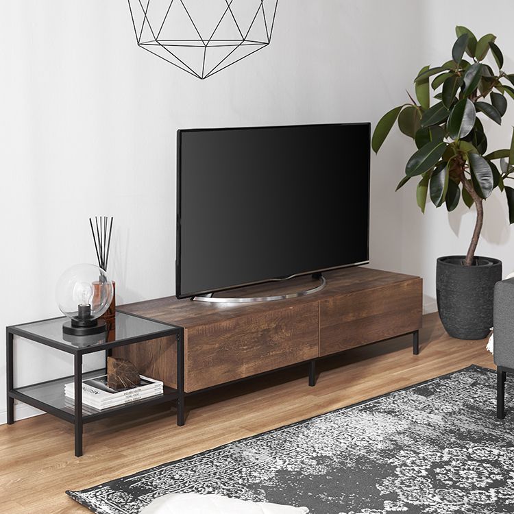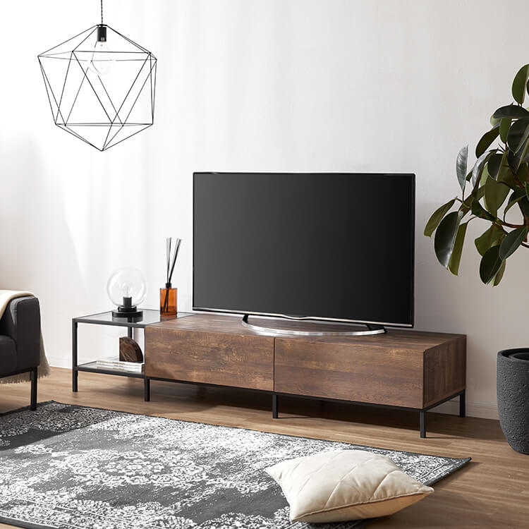 落ち着いた木目調×ガラススペースが上質な空間を作り出し、贅沢な大人の時間を演出するテレビ台。他に無い魅力で、お部屋にスタイリッシュな高級感をもたらします。こちらは当社デザイナーが独自のこだわりをもって完成させたオリジナル商品です。おしゃれなデザインで、収納力や電源コードの配線など、使いやすく機能性の高いボードをカタチにしました。風格ある木目調のテレビ台に、ガラススペースをプラスした新しいカタチ。存在感がありながらも、抜け感のあるスマートなデザインが、お部屋をまるごとセンスアップ!天然の木を連想させるような、リアルな木目調がどんなお部屋にもすっと馴染み、落ち着いたムードを演出してくれます。