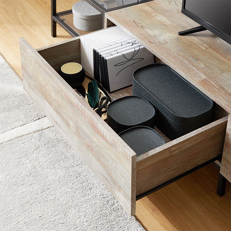 テレビ台 木目調 ガラス 収納棚 ローボード 引き出し