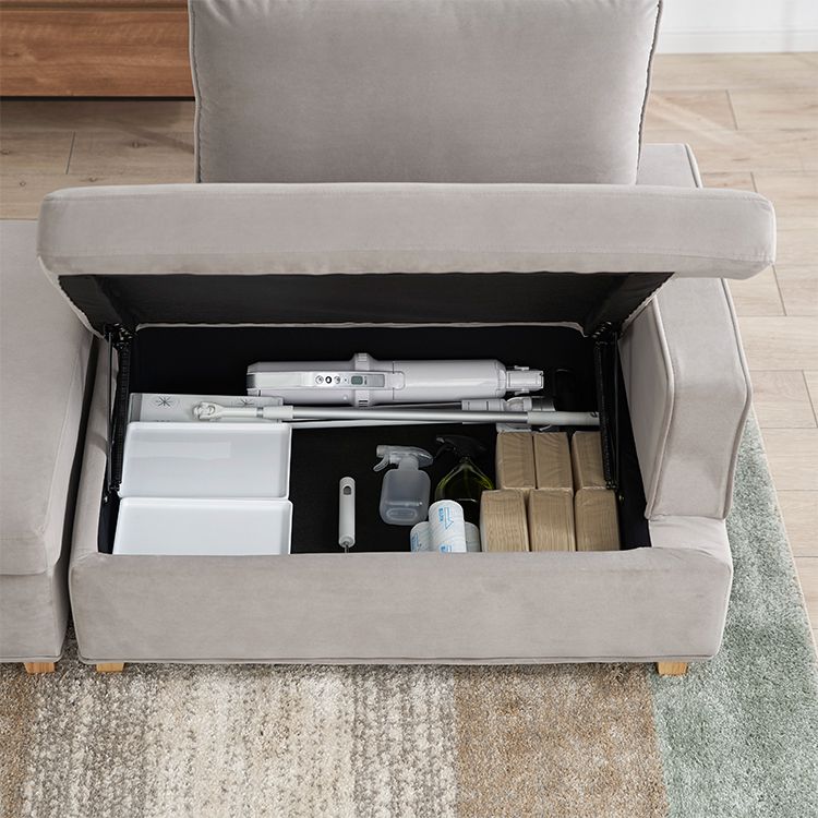 ゆったりとした、くつろぎ時間を叶えつつ、片付けもサポート!収納付きコンパクトカウチソファは、お部屋のスペースが理由でソファの購入を迷っている方にオススメです。一人暮らしやワンルームなど、限られたスペースでもソファを取り入れやすいよう、当社デザイナーが「こうだったらいいな」をカタチにしました。シンプルなフォルムに、しっとりと肌に馴染む質感と美しい光沢が特徴のベルベット調生地を採用。海外インテリアのような雰囲気を感じさせてくれます。座面の下に収納スペースを設けました。本や、ティッシュボックスなどのストックを仕舞うのに活躍!生活感を見せない、隠す収納としてデットスペースを有効活用しています。