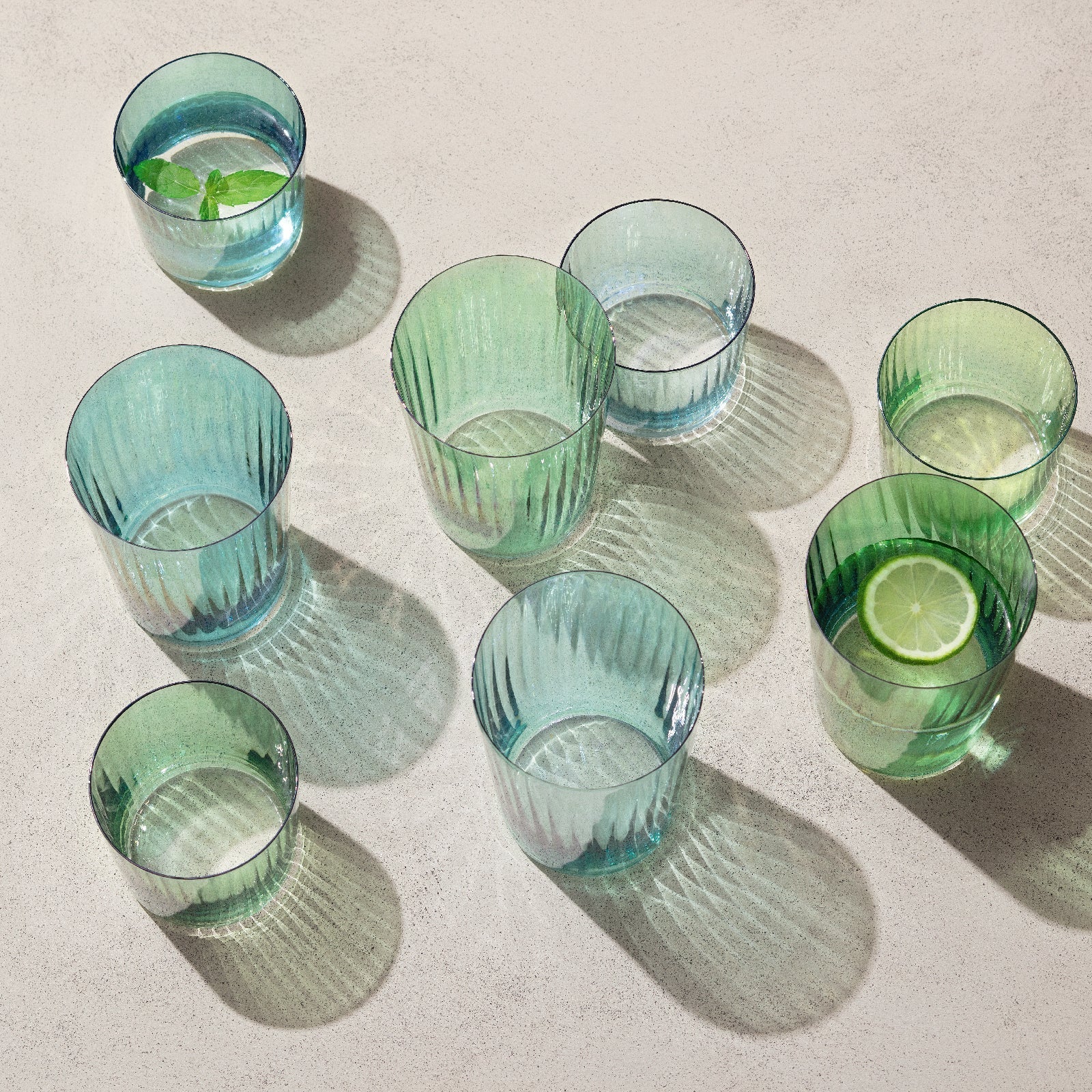 宝石のファセットの美しさを表現したタンブラー細かく施されたプリーツのような質感は、磨かれた宝石のファセットを連想させます。オリジナルボックス入りの4個セットで、ギフトにも最適です。