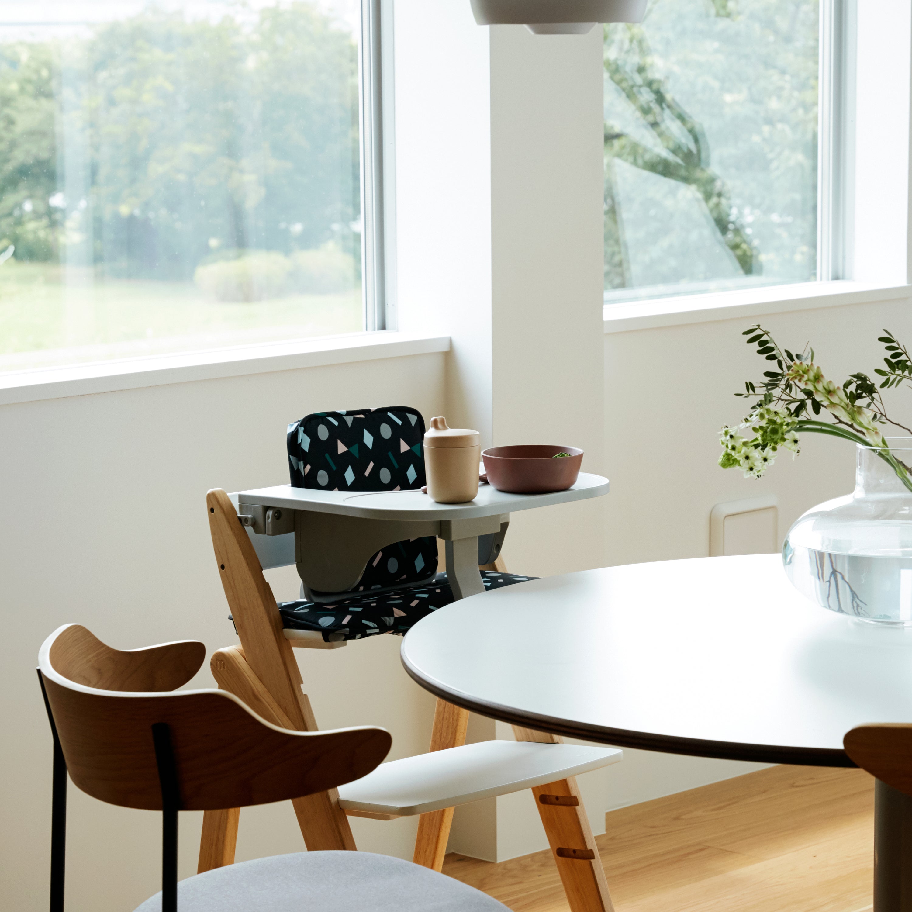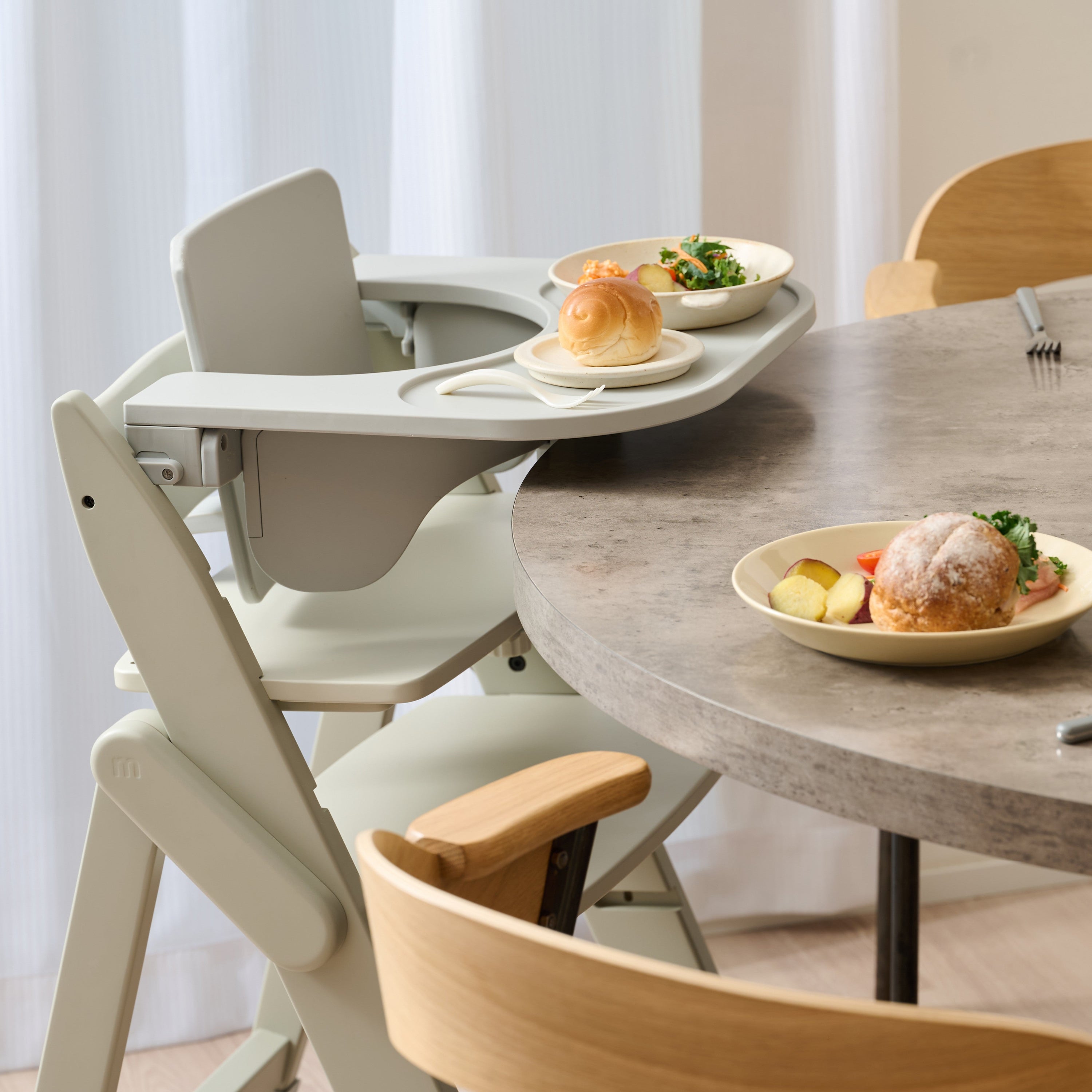 スターター・セットと併せてお使いいただくイッピー専用のフードトレイ。お子さまだけで食事をすませる時やおやつの時間に便利なアクセサリーです。 食べこぼしのお手入れも簡単です。 ダイニングテーブルの高さに合わせて、取り付ける高さを2段階から選べます。