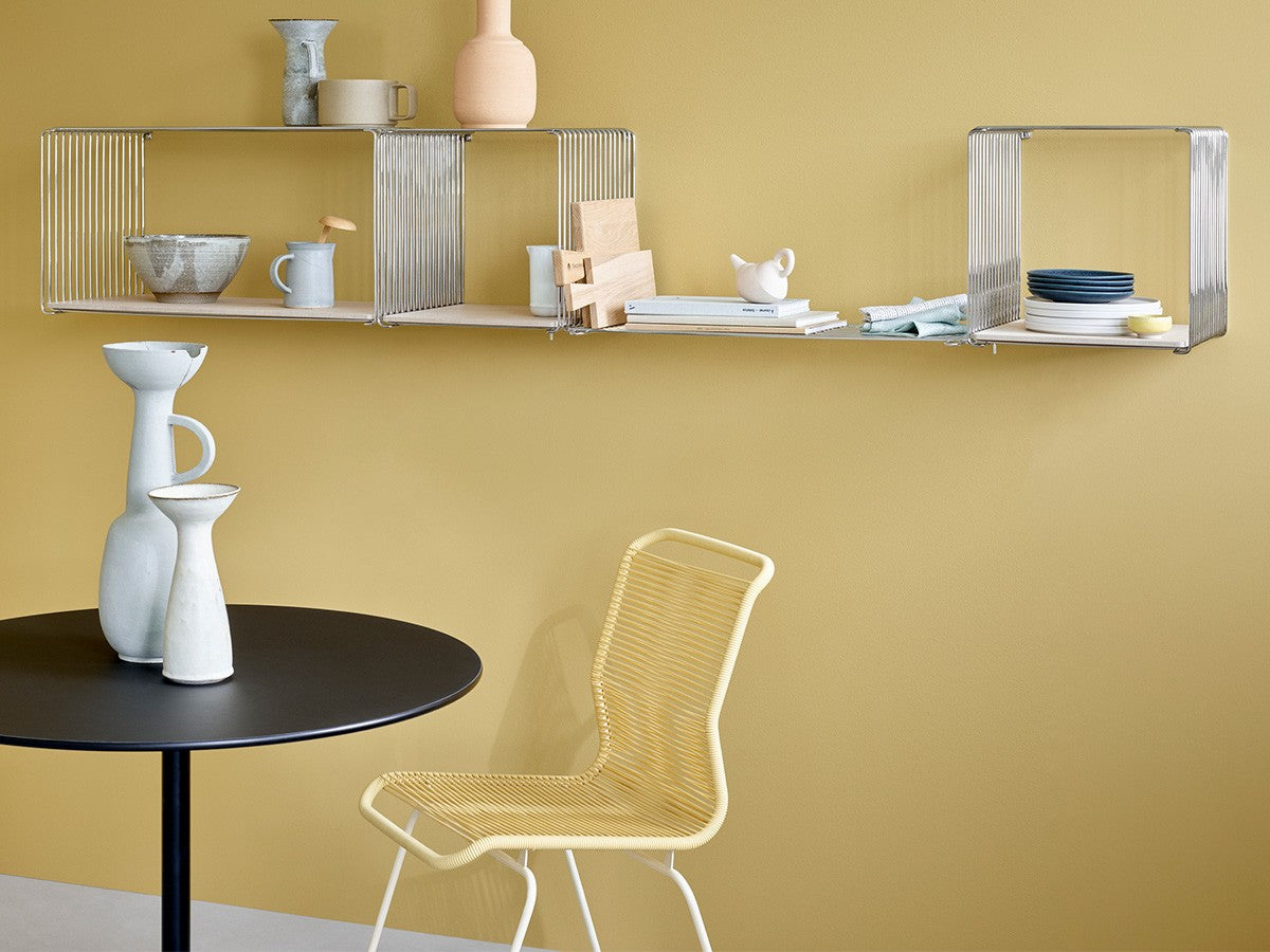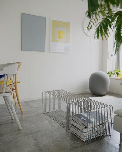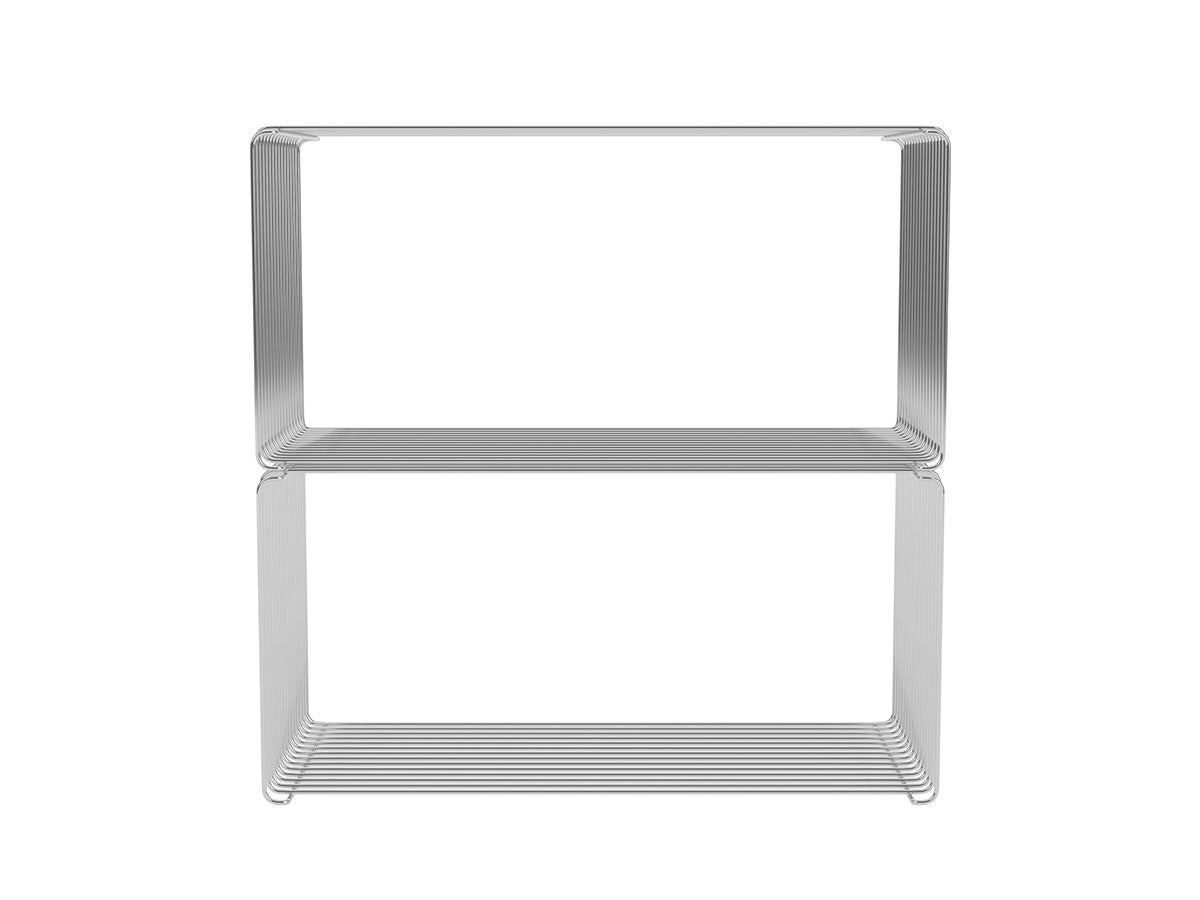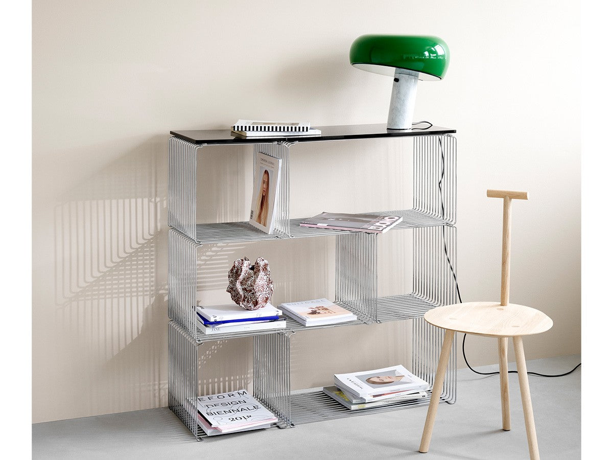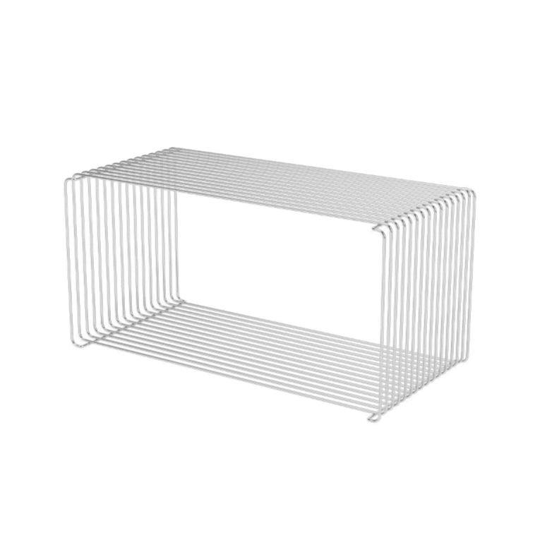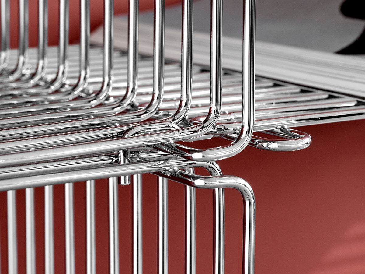 1971年にヴェルナー・パントンがデザインした「パントンワイヤーシステム」。シンプルでありながらエレガントで、軽やかでありながらインダストリアルなモジュールです。床置き、壁掛け、重ね置きも自在。ブックスタンドやお部屋のパーテーションとして、また、小さなテーブルとしてもご使用いただけます。単品としてのご使用だけでなく、別売りの「トップパネル」や「シェルフボード」を追加したり、サイズ違いを含めて複数台を組み合わせることで、あらゆる用途、場所に対応します。