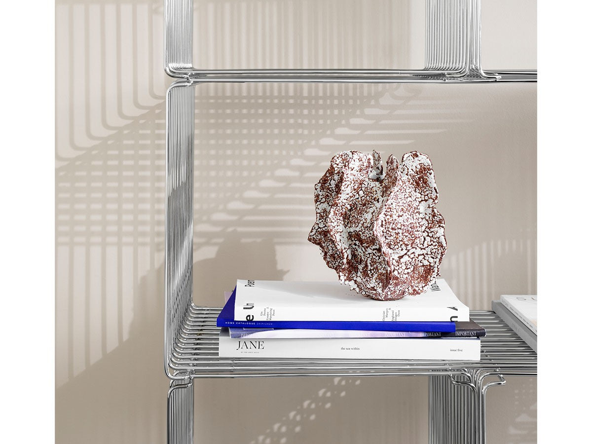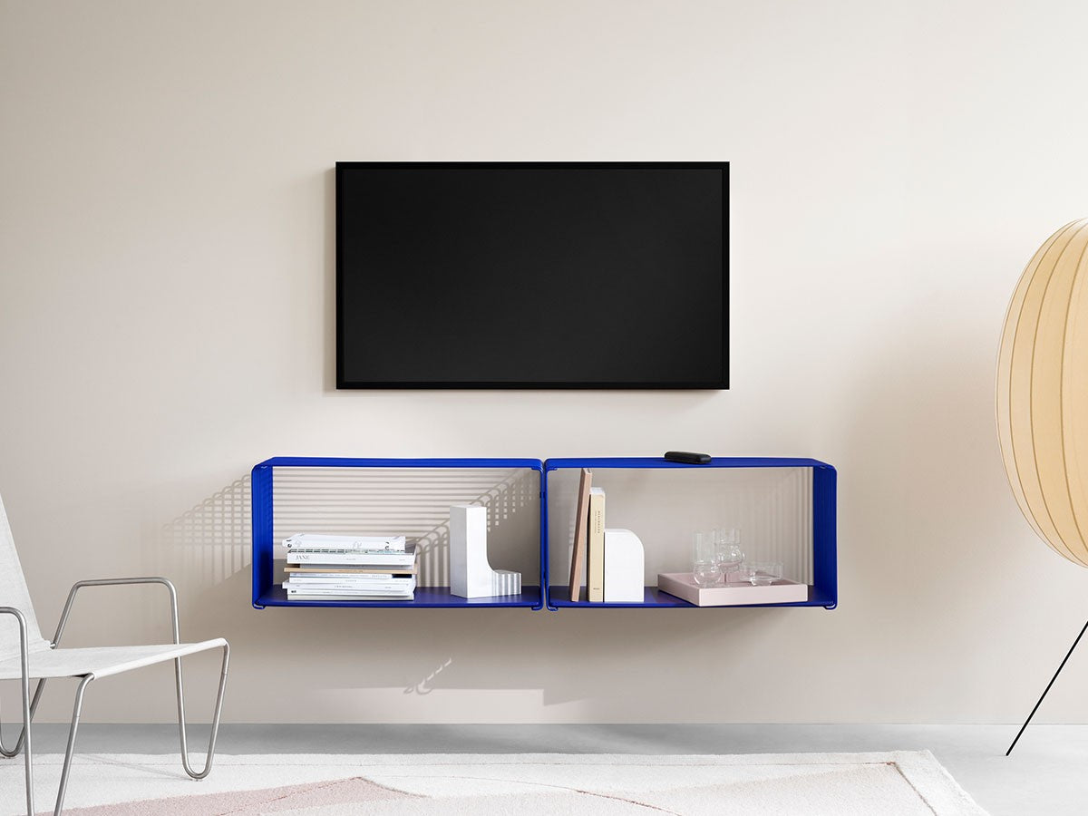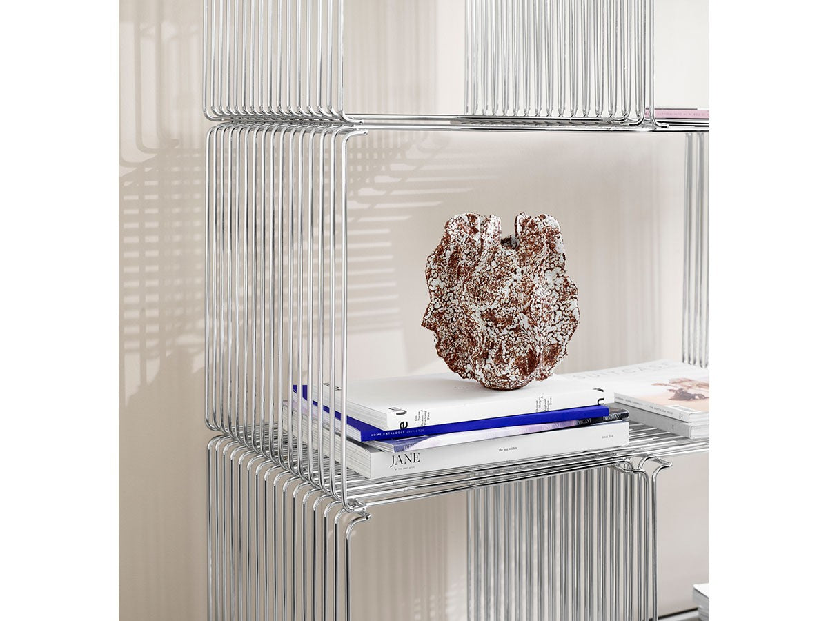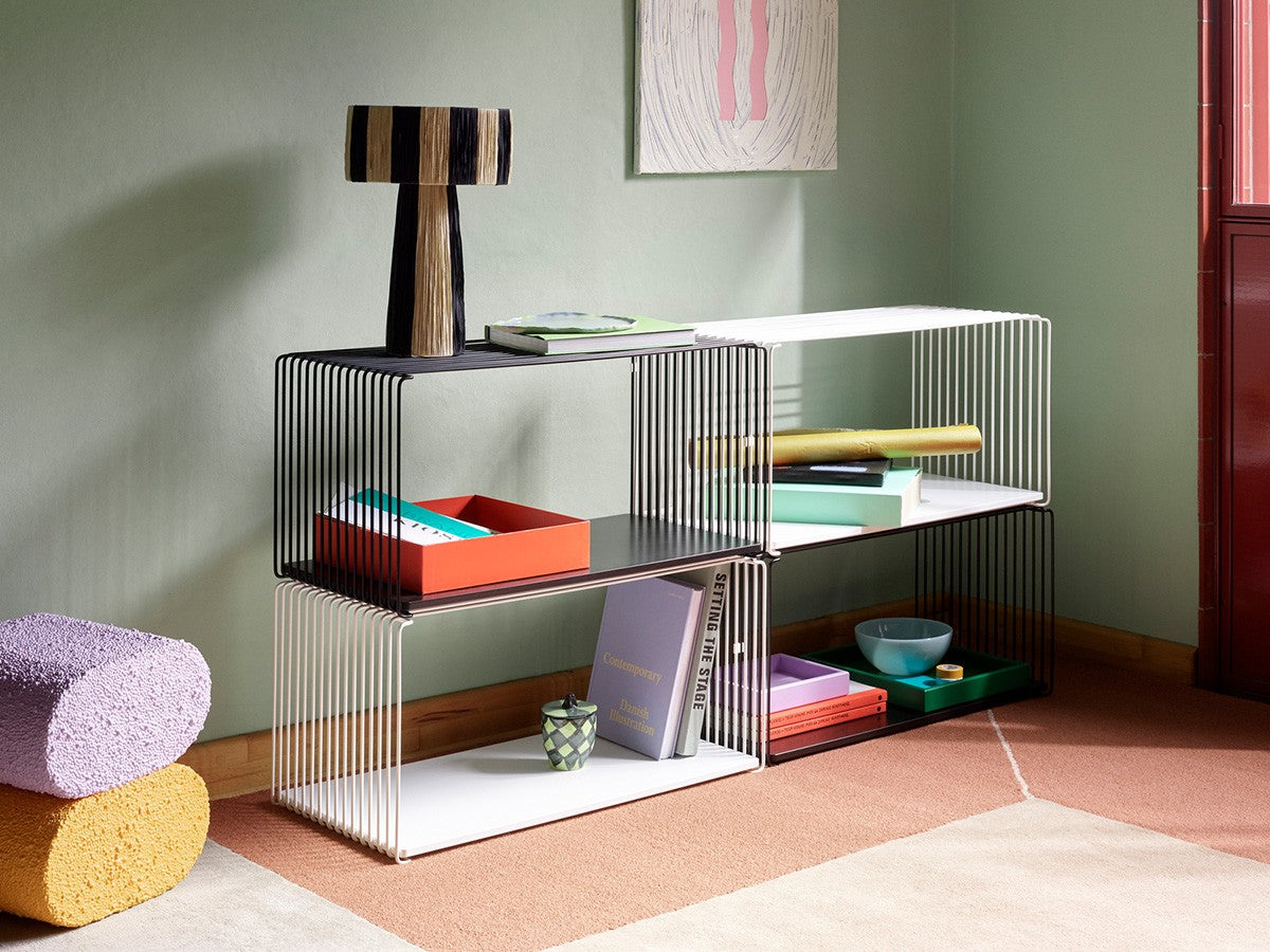 1971年にヴェルナー・パントンがデザインした「パントンワイヤーシステム」。シンプルでありながらエレガントで、軽やかでありながらインダストリアルなモジュールです。床置き、壁掛け、重ね置きも自在。ブックスタンドやお部屋のパーテーションとして、また、小さなテーブルとしてもご使用いただけます。単品としてのご使用だけでなく、別売りの「トップパネル」や「シェルフボード」を追加したり、サイズ違いを含めて複数台を組み合わせることで、あらゆる用途、場所に対応します。