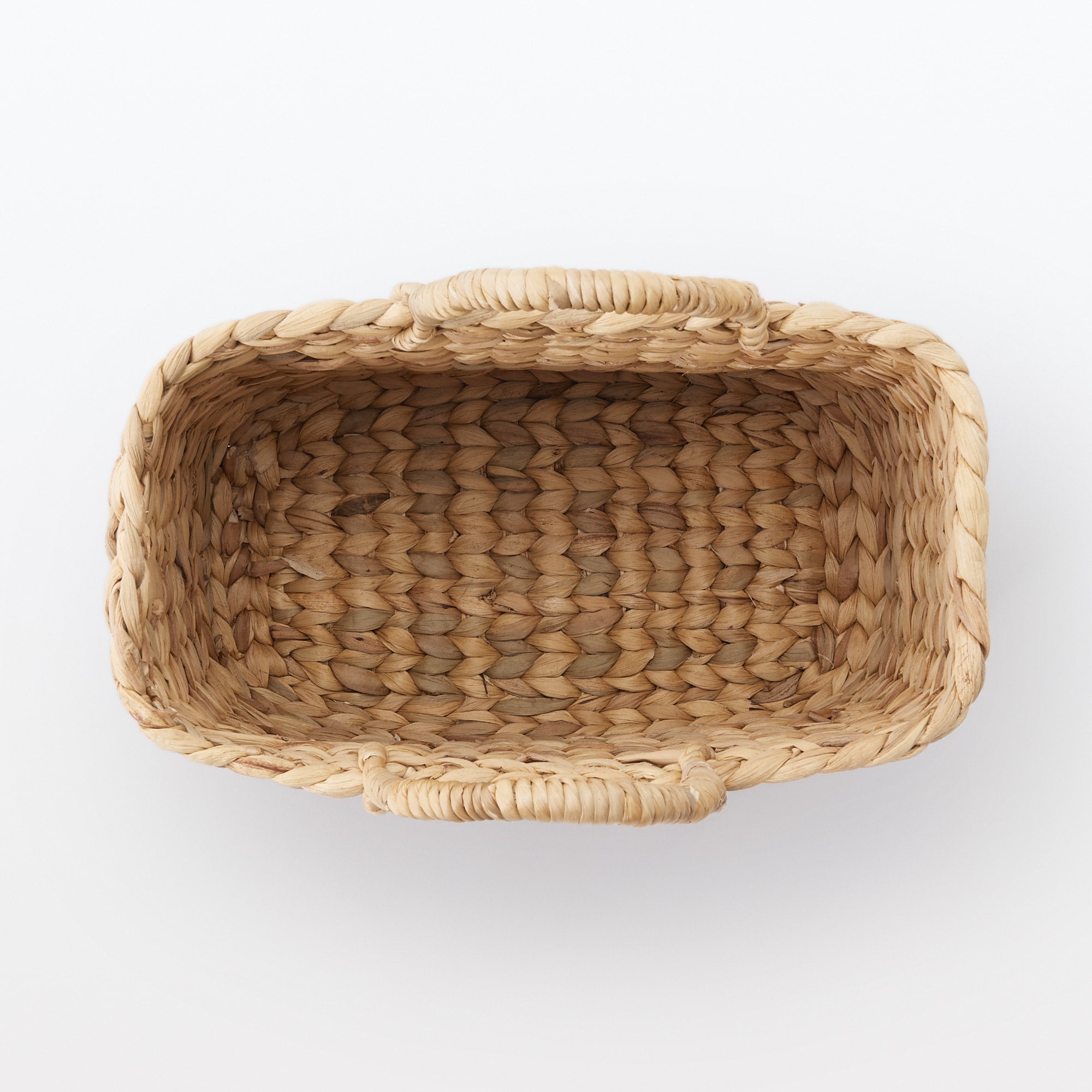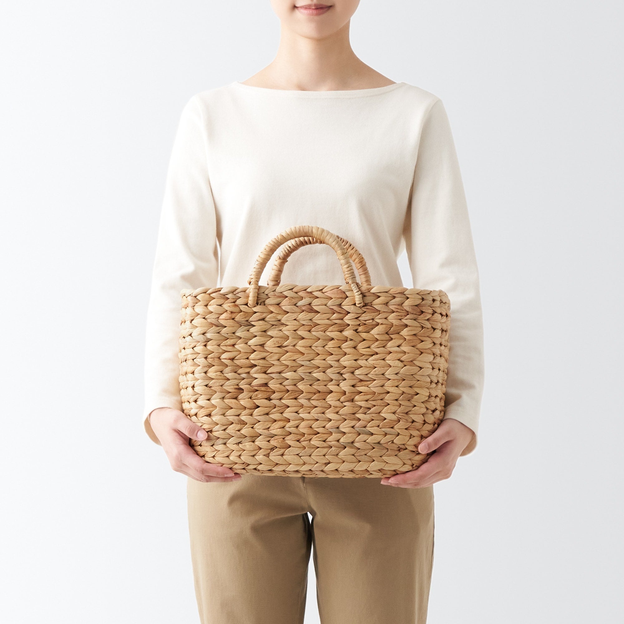 生長の早い水草の一種を使い、手編みで仕上げました。軽く、やわらかな使い心地です。天然の素材を使用しているため、色、形状のバラツキや、素材自体のキズ等があります。商品の特性上、水滴がつくものや水に濡れたものはいれないでください。濡れた状態で金属に長時間触れると金属が錆びることがあります。