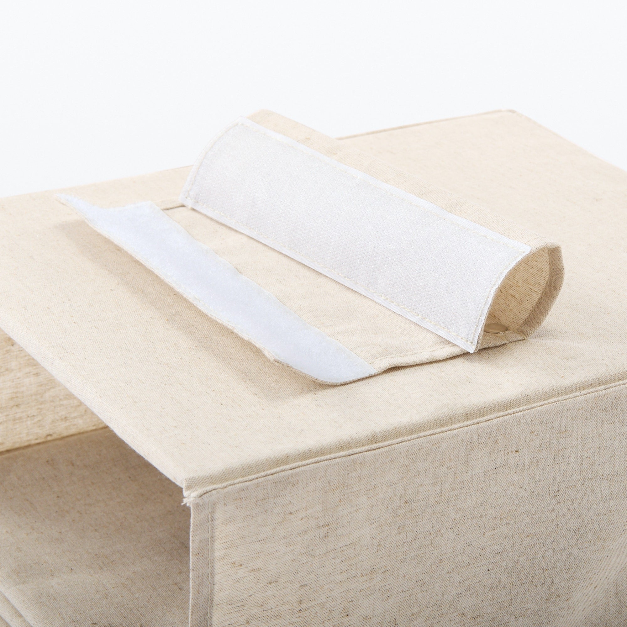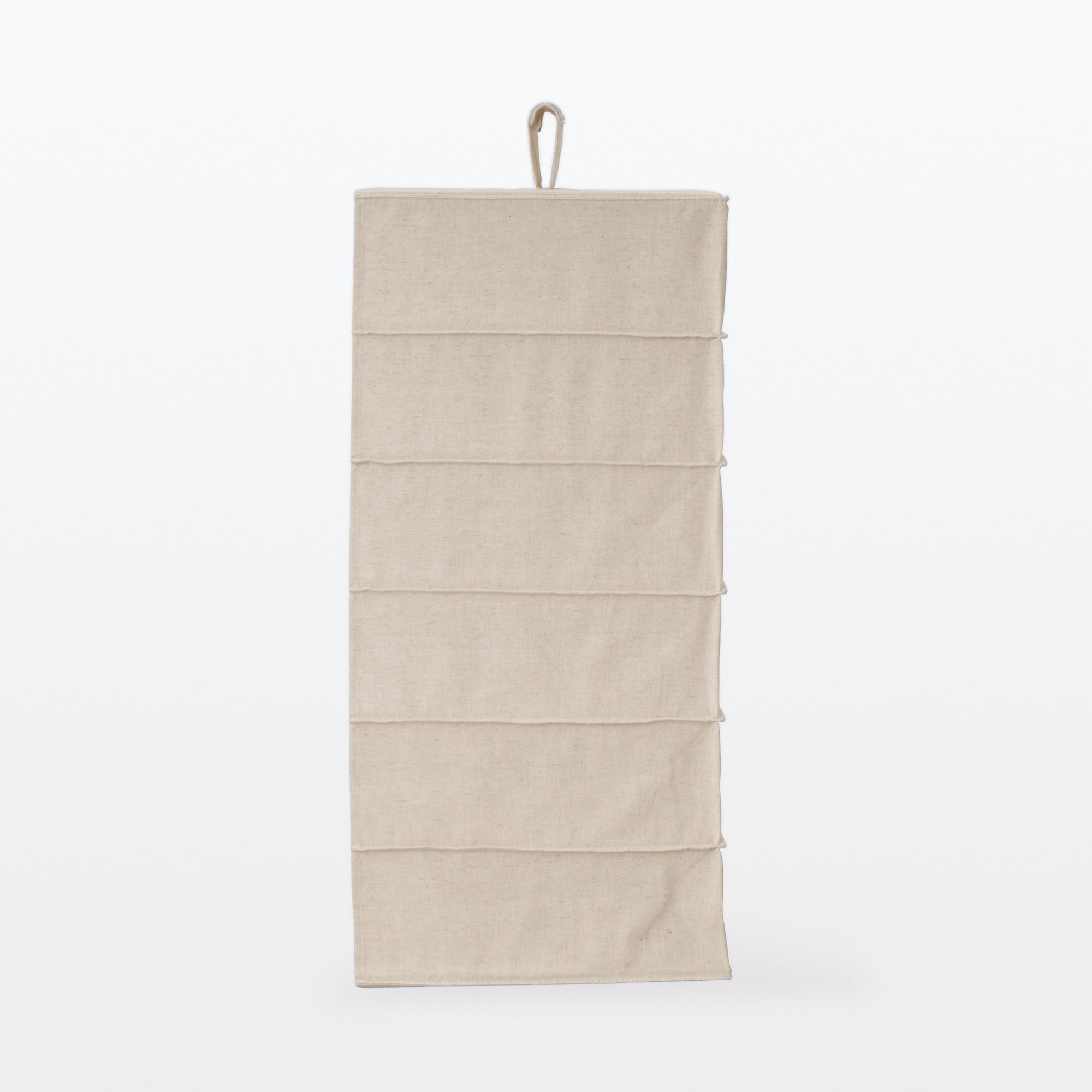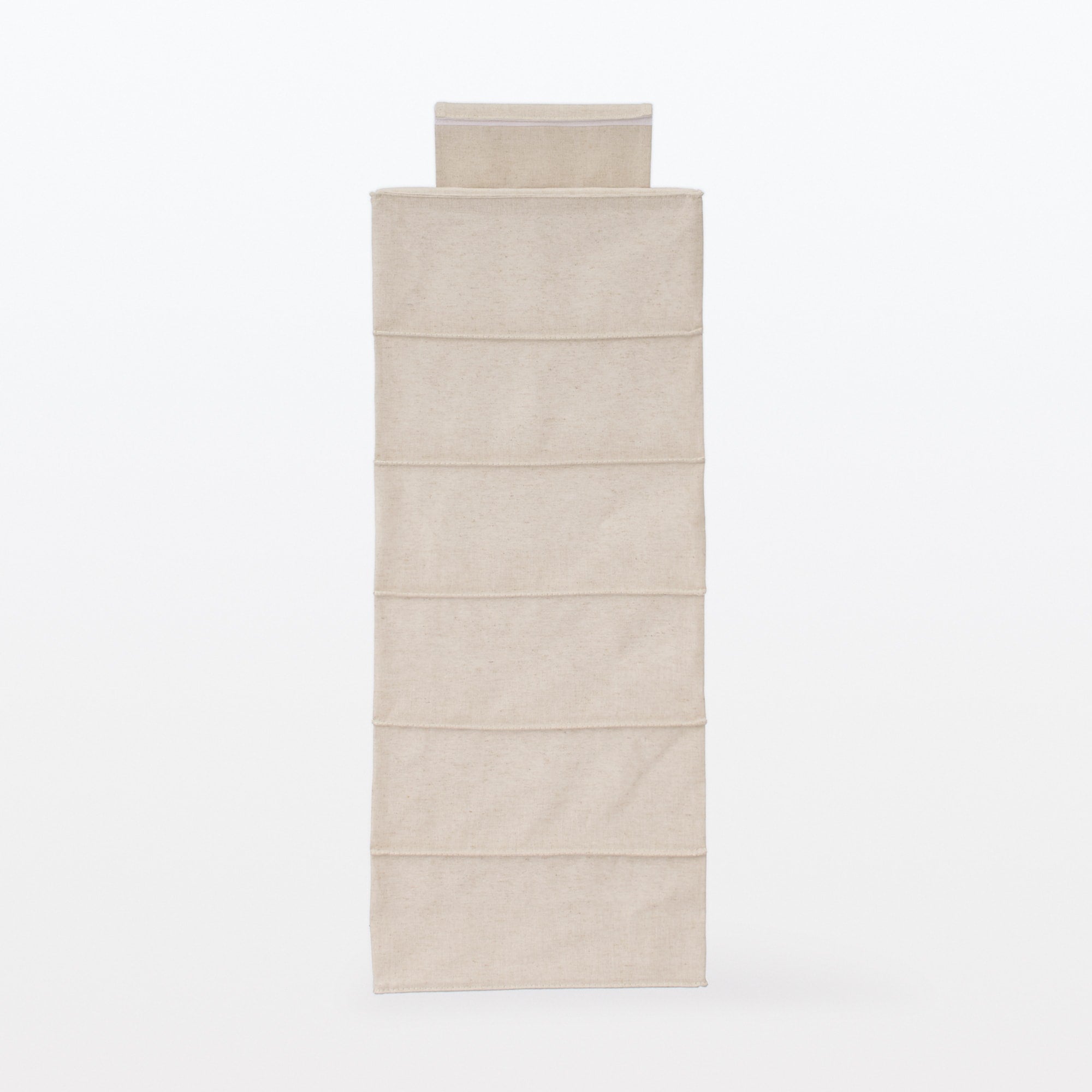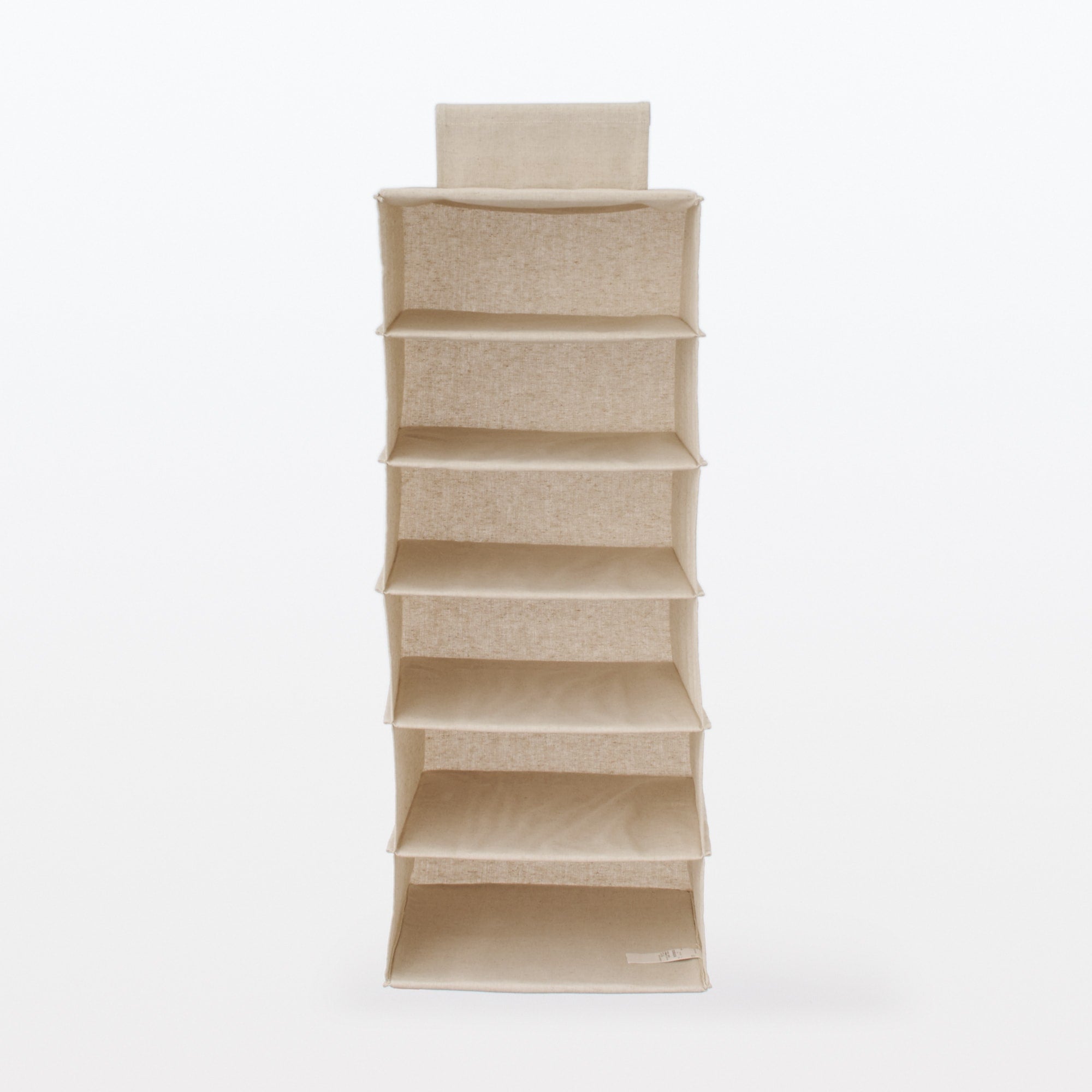 麻の風合いとポリエステルの丈夫さを生かしました。普段使いのシャツやタオルなどの収納に便利です。1段の高さは約12cm。1段あたり約0.6kgが使用目安です。