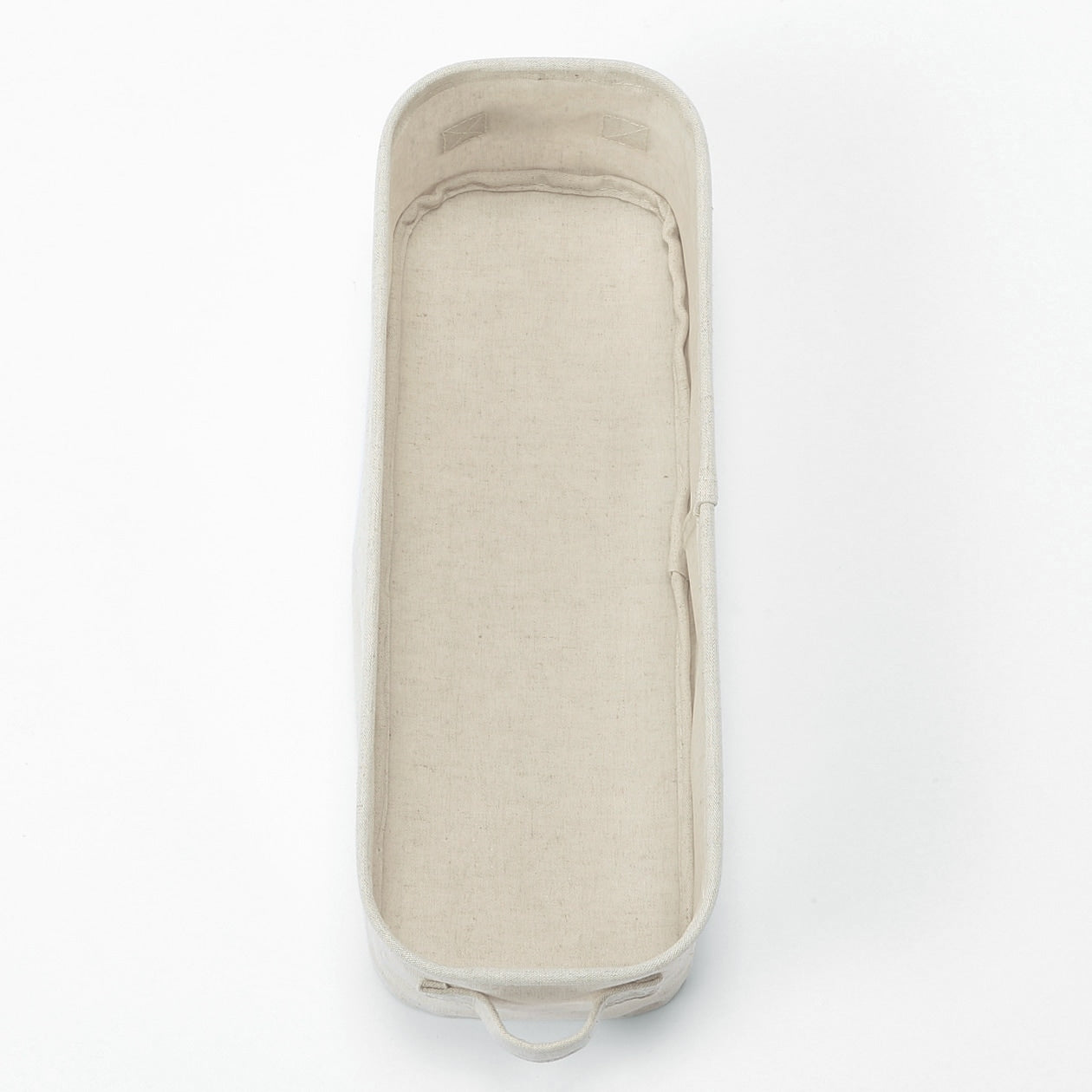 生地の内面をコーティングしたコンパクトにたためる布製ボックスです。整理しにくい小物やおもちゃなどをまとめて収納するのに便利です。耐荷重10kg、内寸約幅12.3×奥行36.3×高さ11cm
