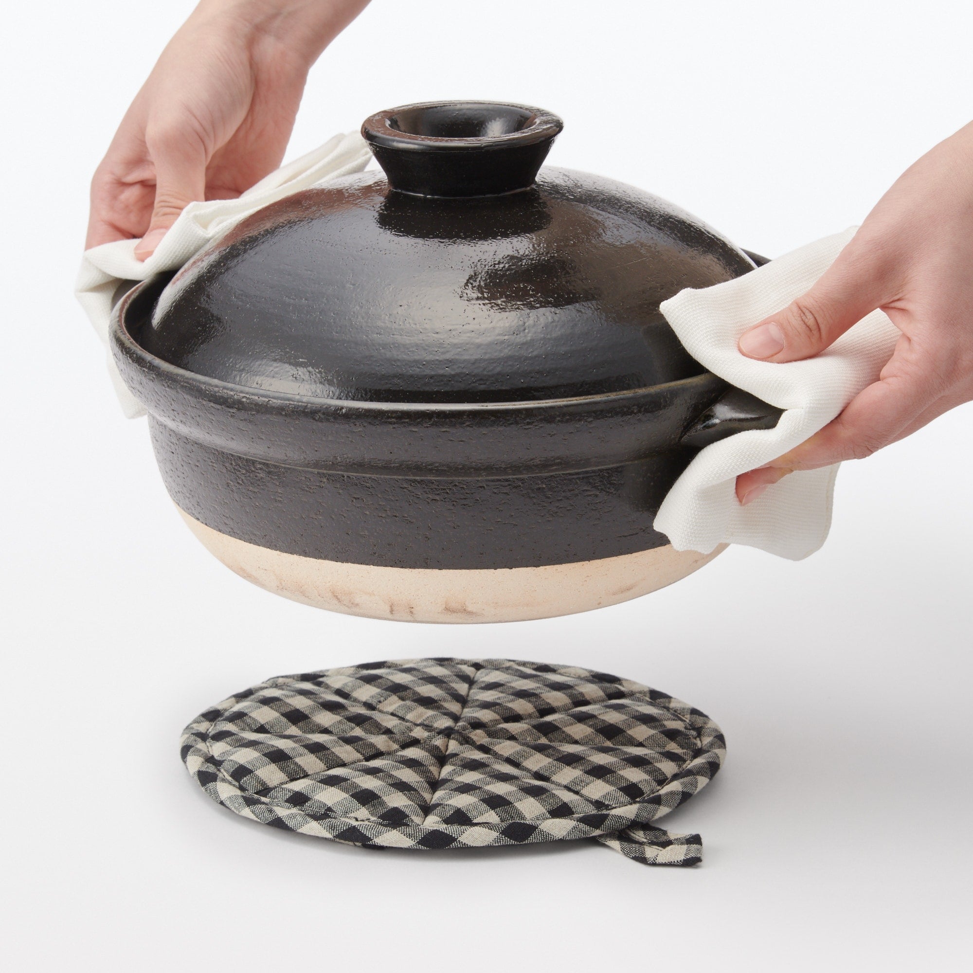 鍋敷きとしてだけでなく、ポケット部分に手を入れて鍋つかみとしてもご使用いただけます。熱を完全に遮断するものではございませんので、加熱直後の鉄板等には使用しないでください。