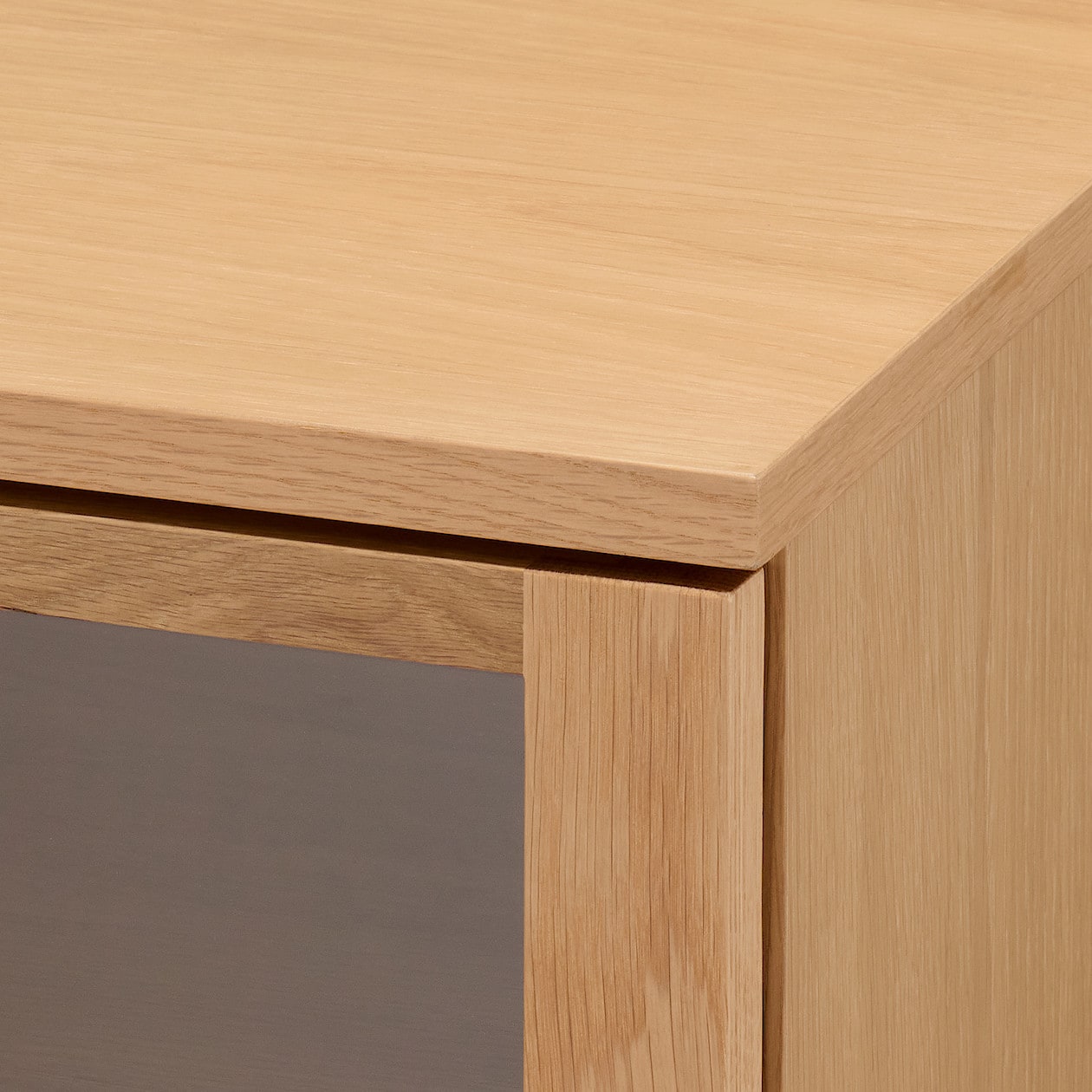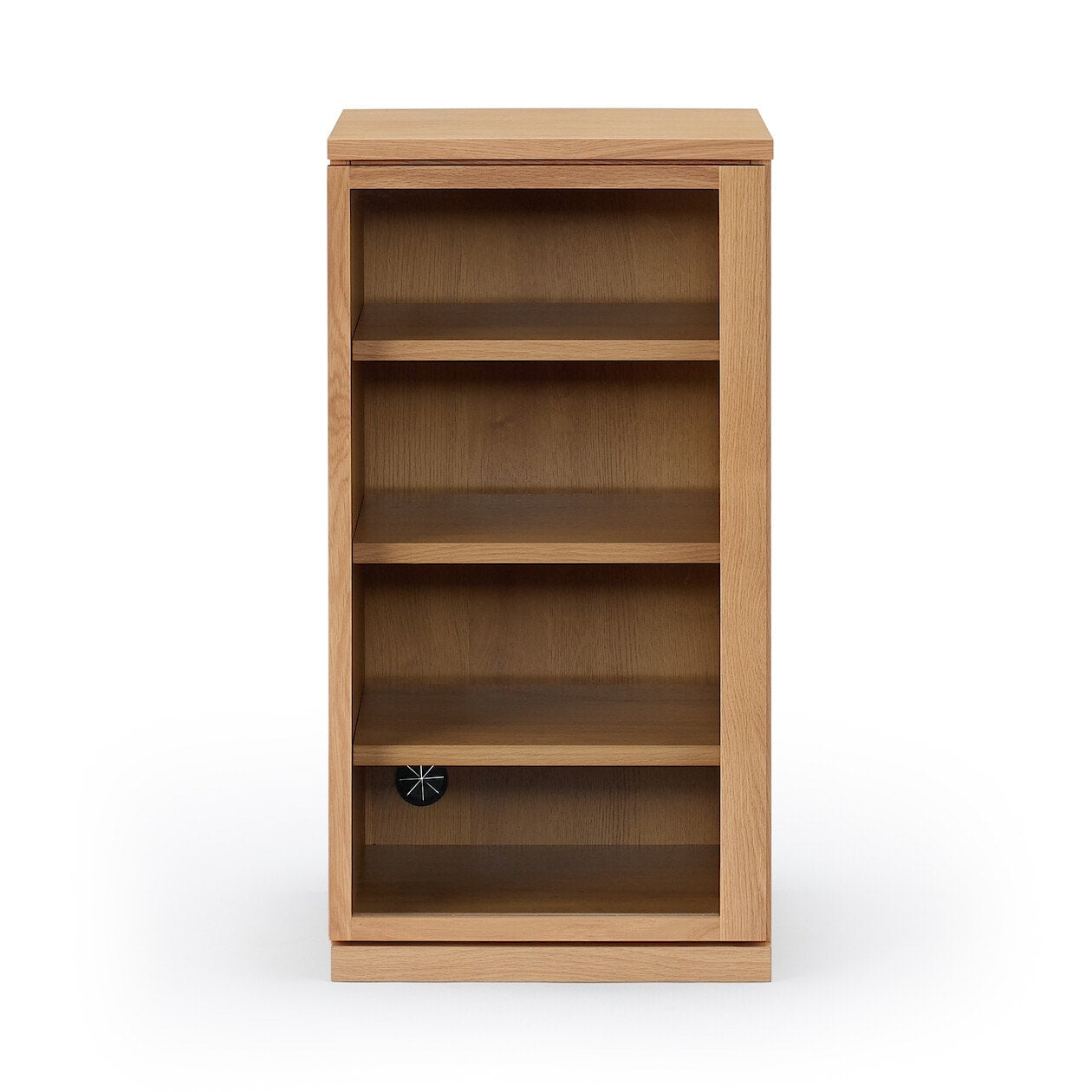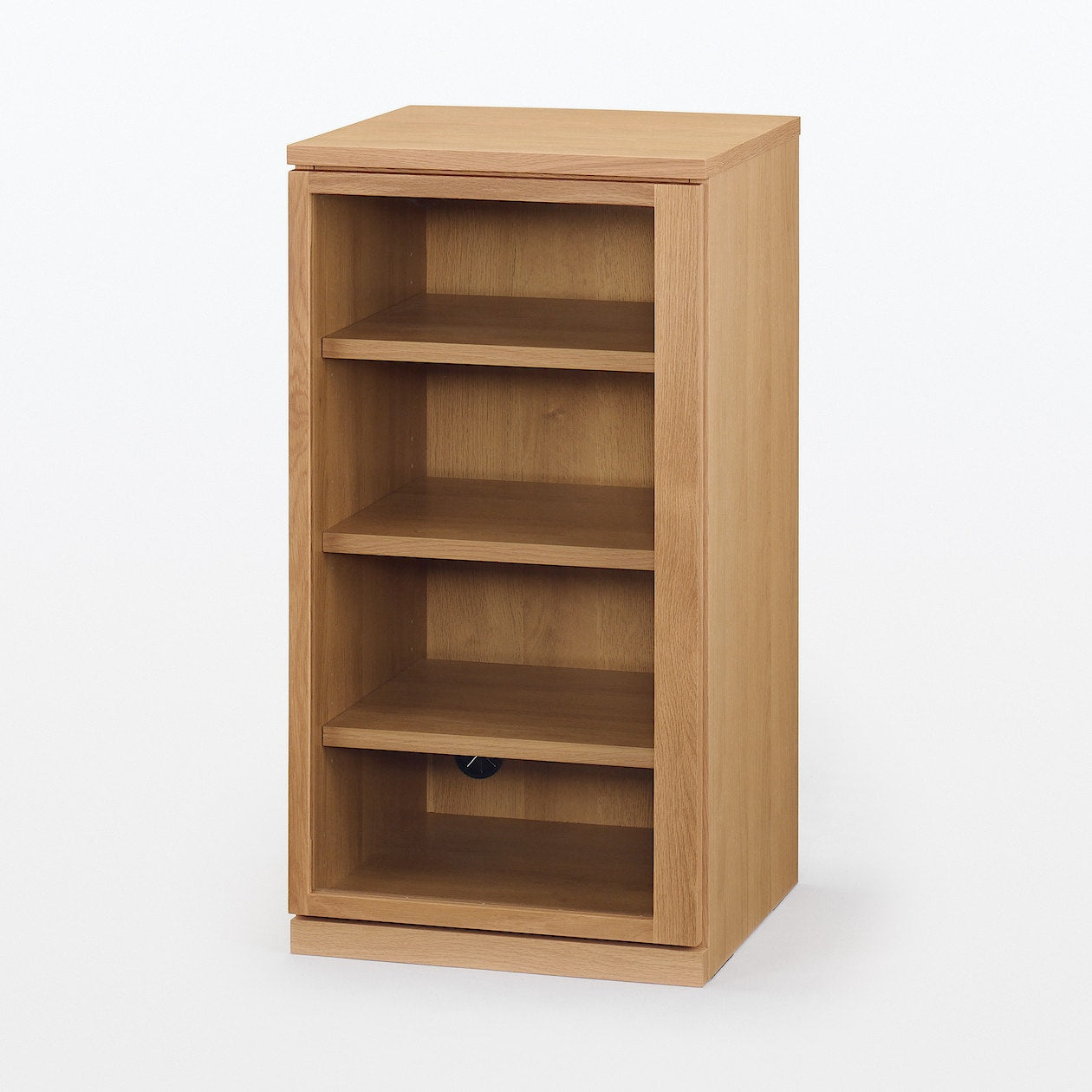 ベーシックなデザインの木製収納です。扉付なので、ほこりを気にせず収納できます。扉内には収納用品がぴったりと収まります。扉は、左右どちらにも取付られます。台輪式で、商品下にほこりがたまらず掃除が楽です。