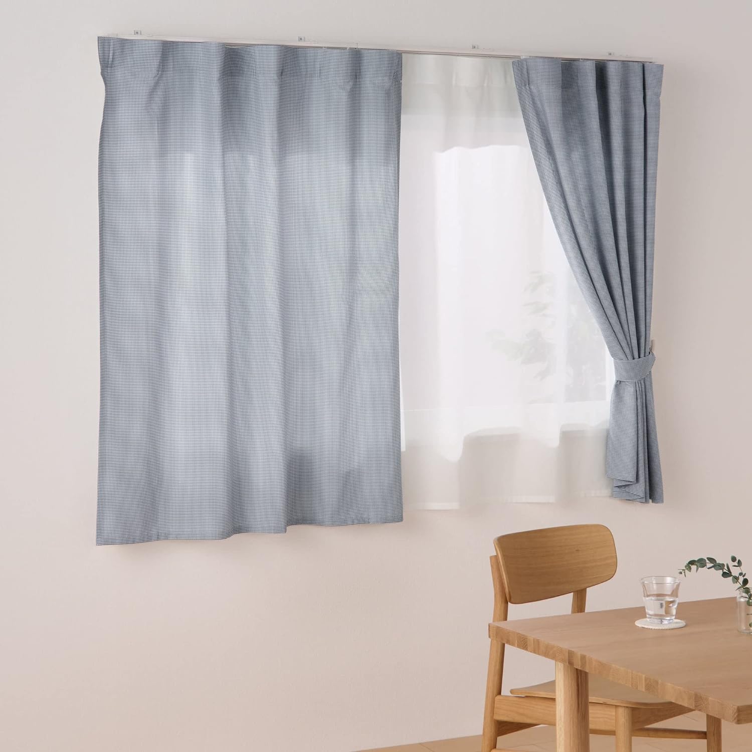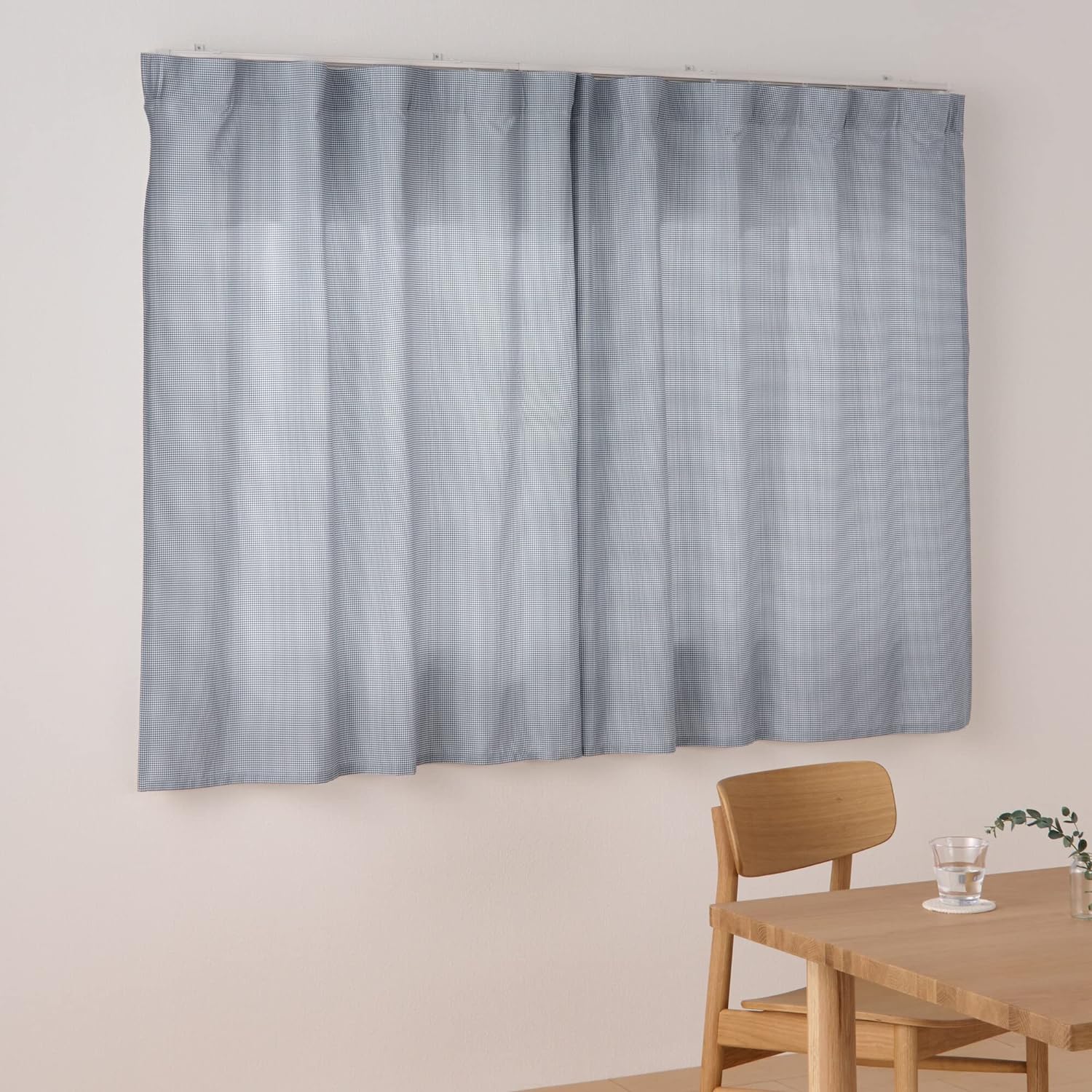シンプルな織組織でギンガムチェック柄に織り上げたカーテンです。洗濯機で洗いやすく乾きやすい、ポリエステルを使用しています。