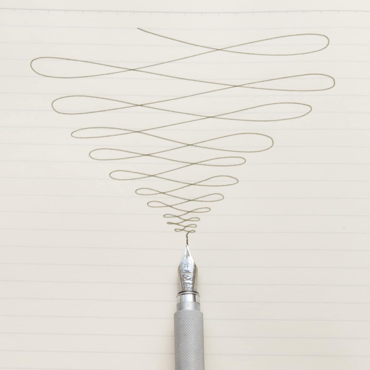 カートリッジは(15-139040)アルミ丸軸万年筆用インクカートリッジ・黒2本入りが対応しております。キャップ装着時:全長約13.7cm、太さ直径約1cm、重量約20g
