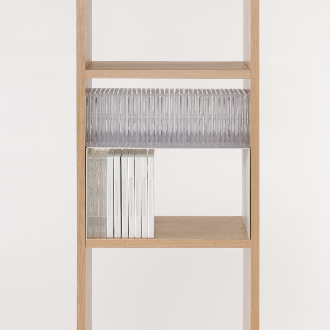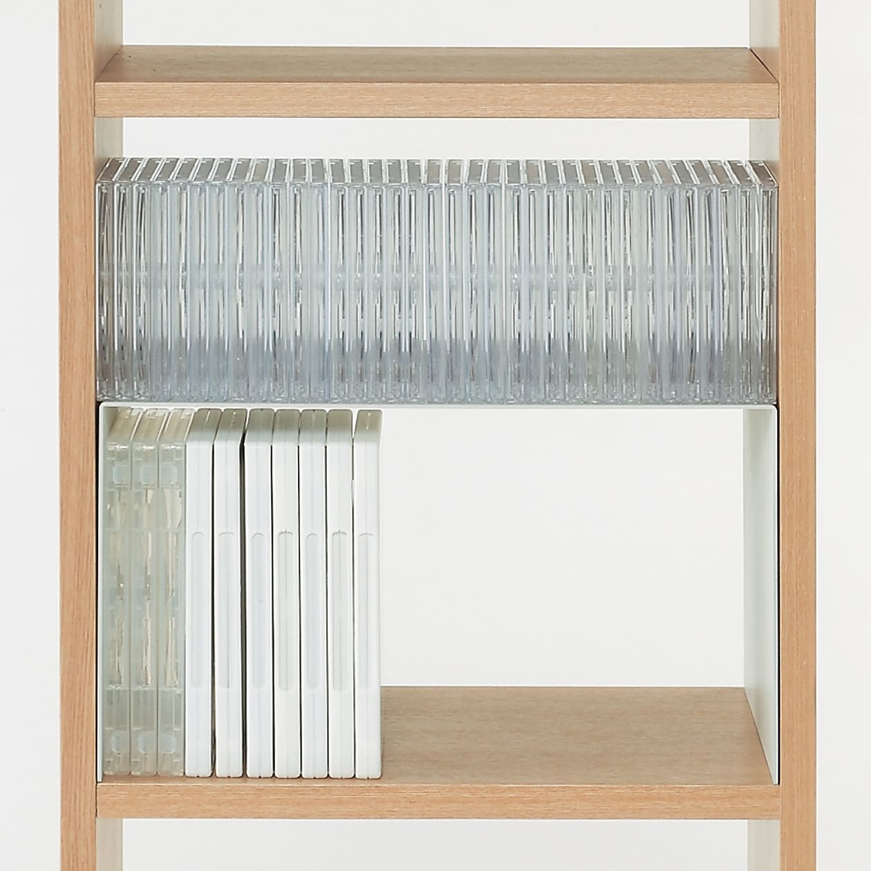 スタッキングシェルフ専用の便利なオプションパーツです。組み合わせて使えば、より機能性がアップします。コの字棚の脚部を内側へ軽く押しながら入れていただくと、傷が付かずに設置できます。