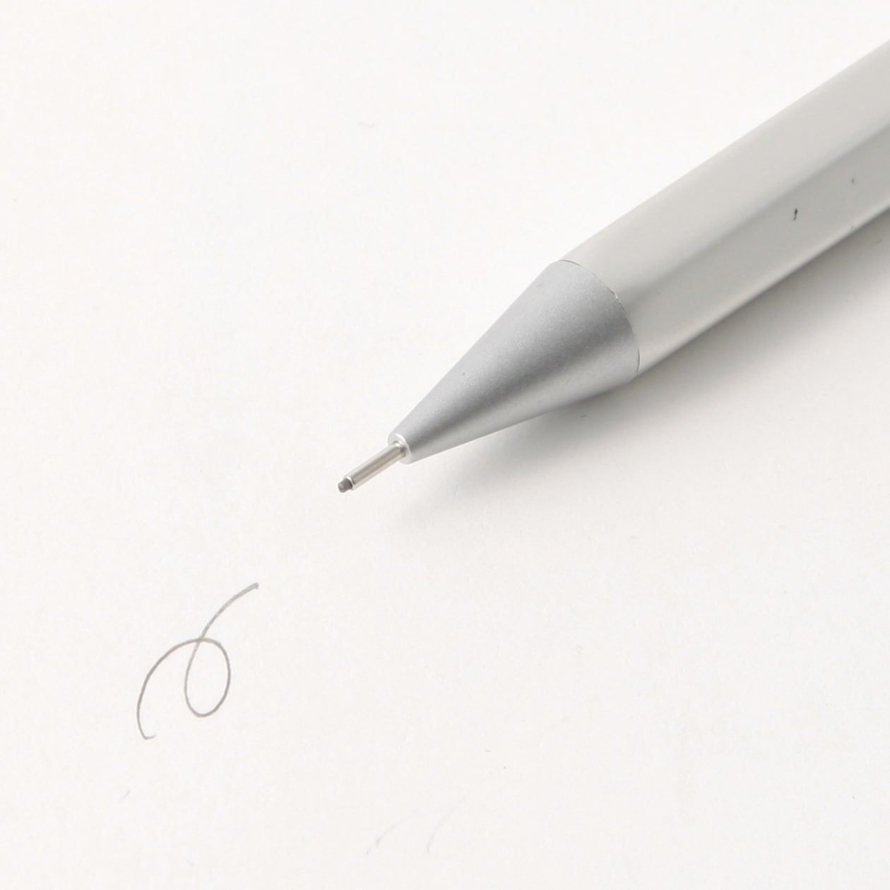 アルミの素材感を活かした、持ち易い六角軸のシャープペンです。