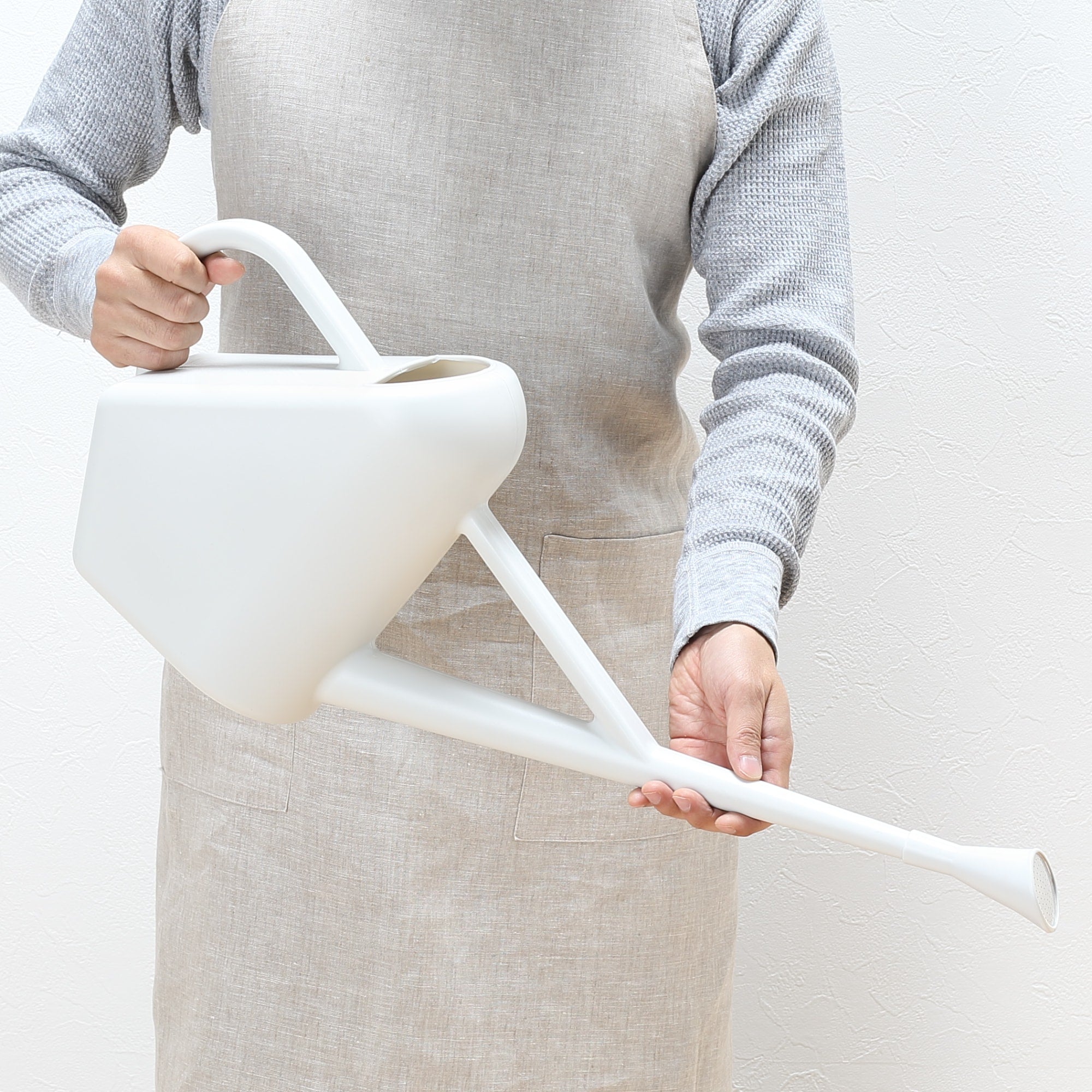 立てて置くことができるジョウロです。ベランダなどの限られた場所でも、立てることでコンパクトに収納することができます。シャワー状に散水するためのハス口が付属しています。