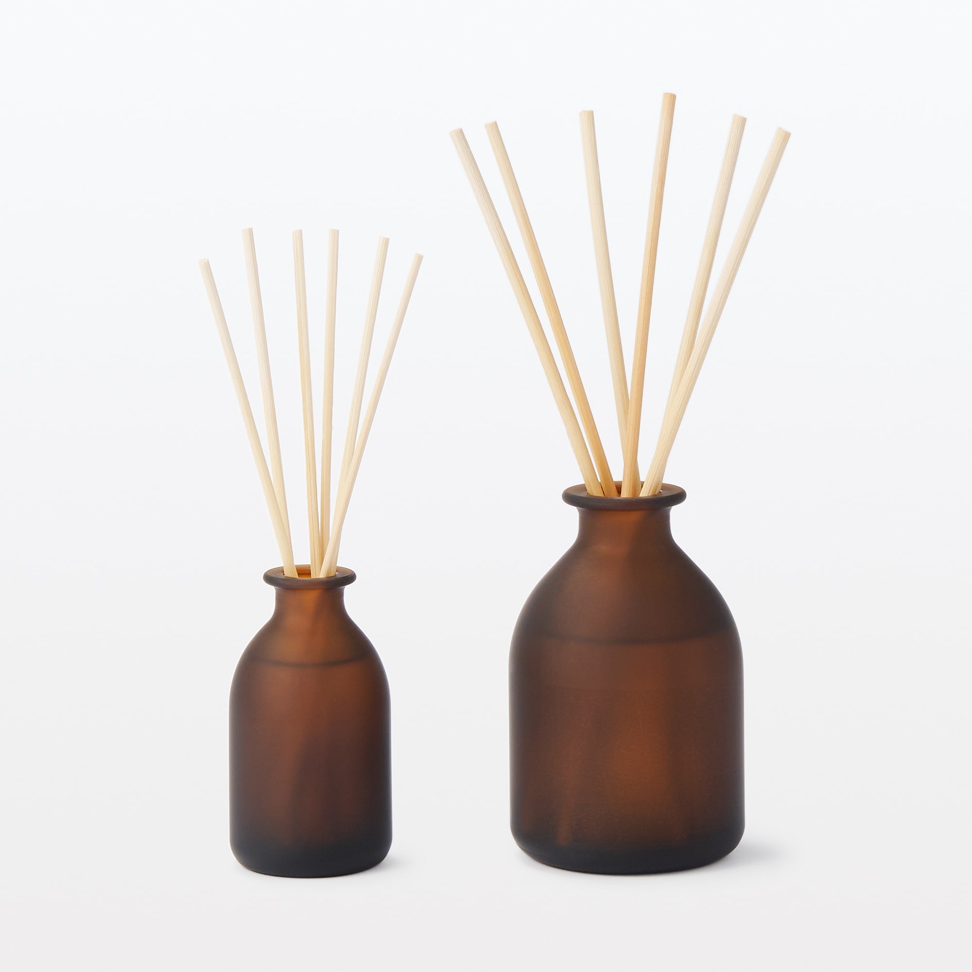 お部屋になじむボトル お気に入りの香りと暮らす。玄関や洗面台には60mL、リビングや寝室には180mLがおすすめです。お気に入りの香りを長く使っていただけるよう詰替用もご用意しています。