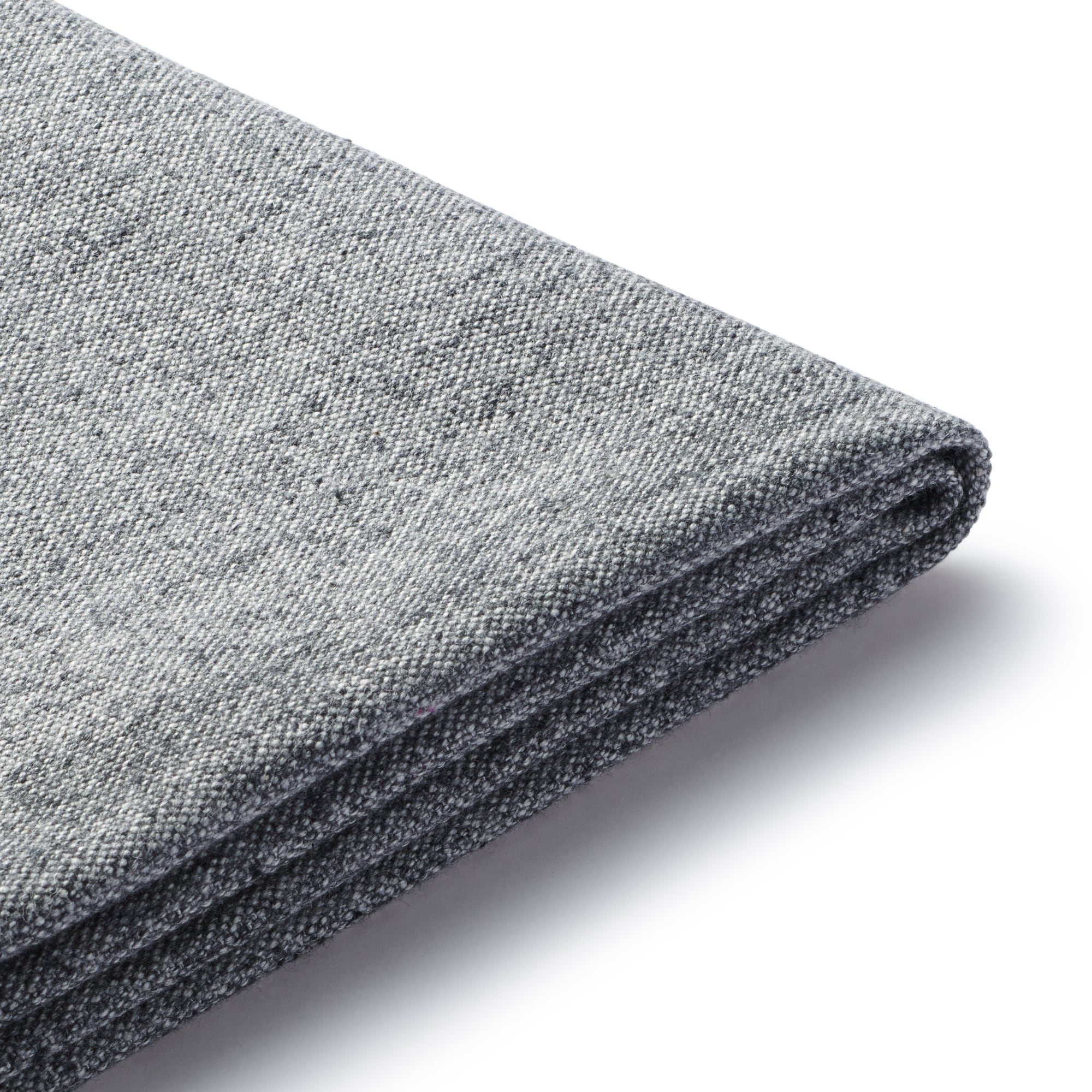 カバン、イス張りなど、業務用に使われている厚手の生地を使用しています。表情が出るように杢調に仕上げました。ご自宅の洗濯機で洗えます。