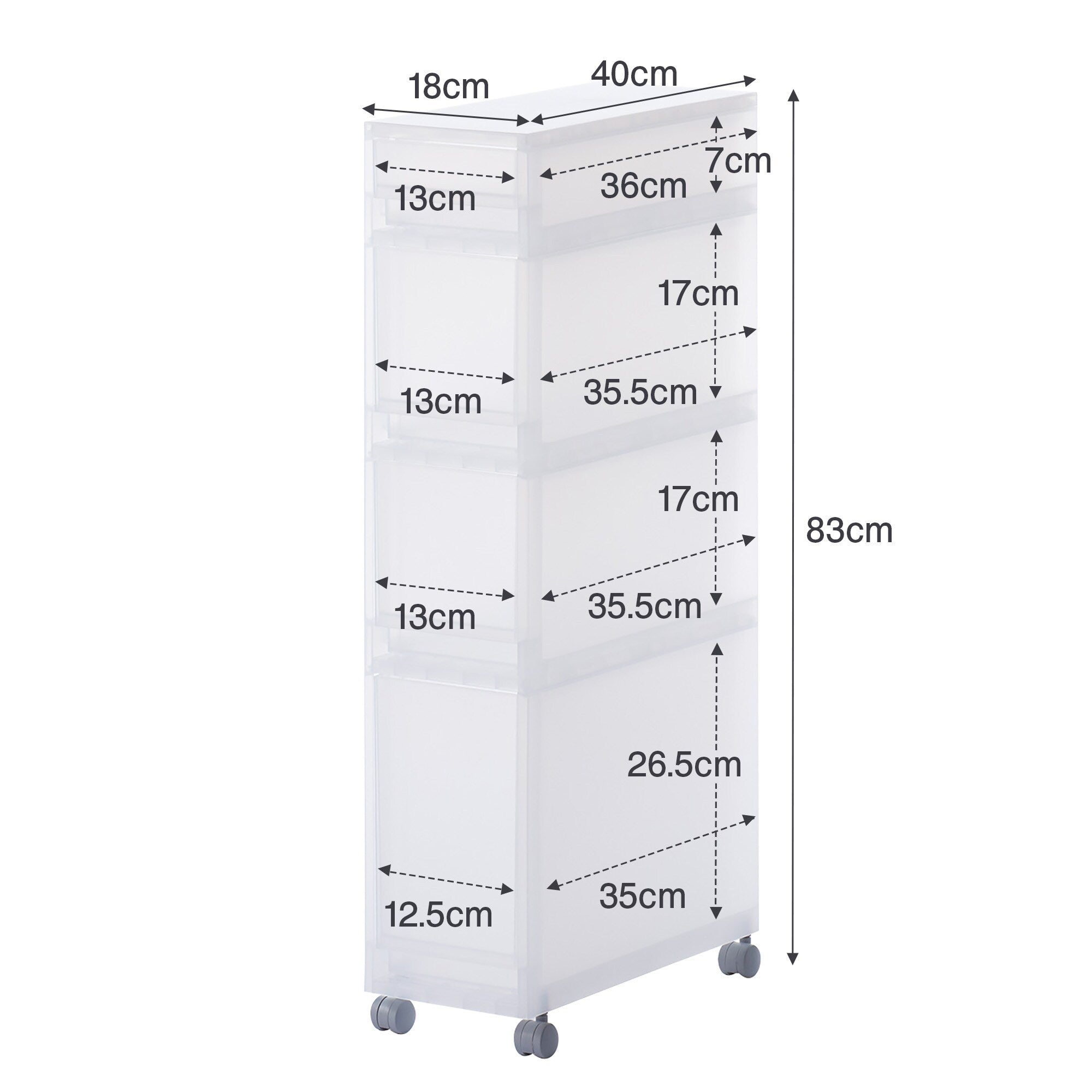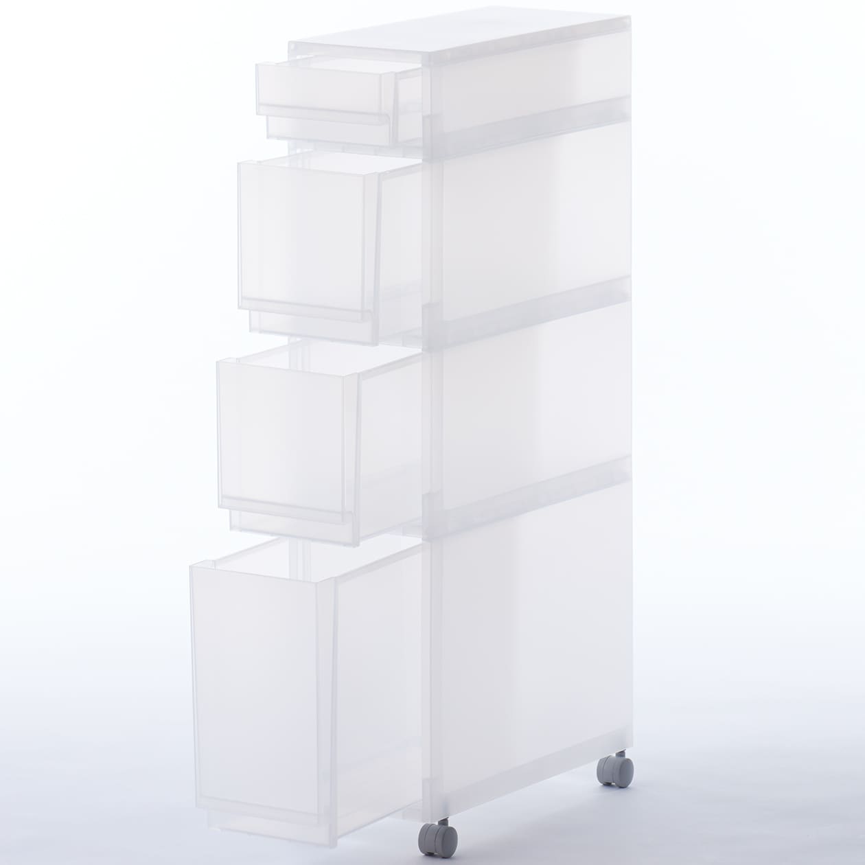 キッチン、ランドリー等の隙間収納に対応する(サイズモジュールを備えた)キャスター付商品です。本体を途中で分解することはできません。
