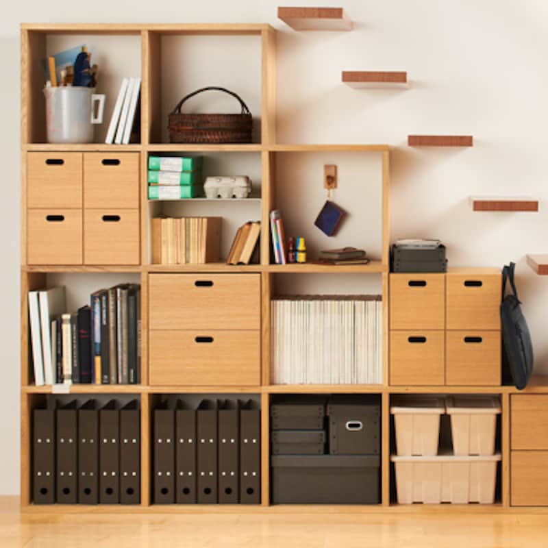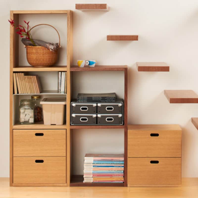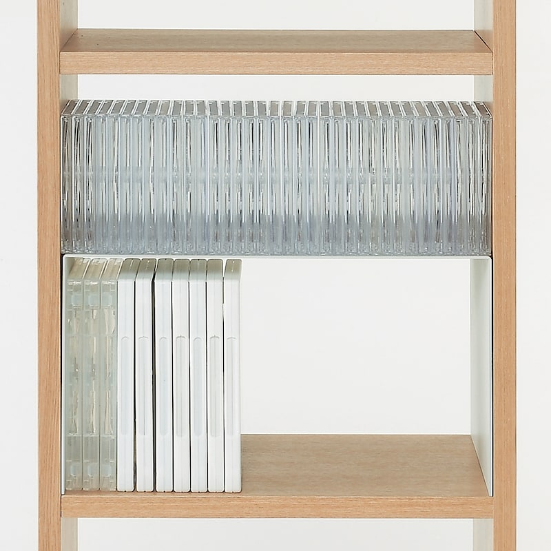 スタッキングシェルフ専用の便利なオプションパーツです。組み合わせて使えば、より機能性がアップします。コの字棚の脚部を内側へ軽く押しながら入れていただくと、傷が付かずに設置できます。