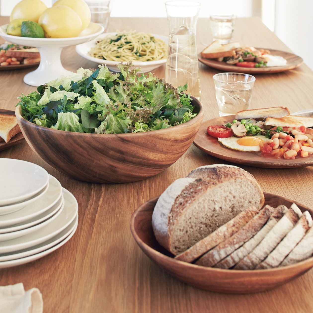 アカシア材ならではの美しい木目が特長です。より使いやすくするため、形を見直しました。