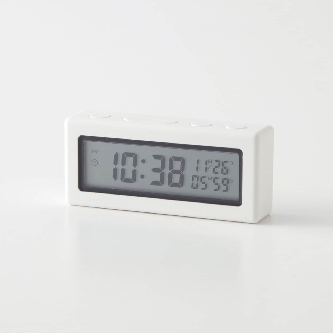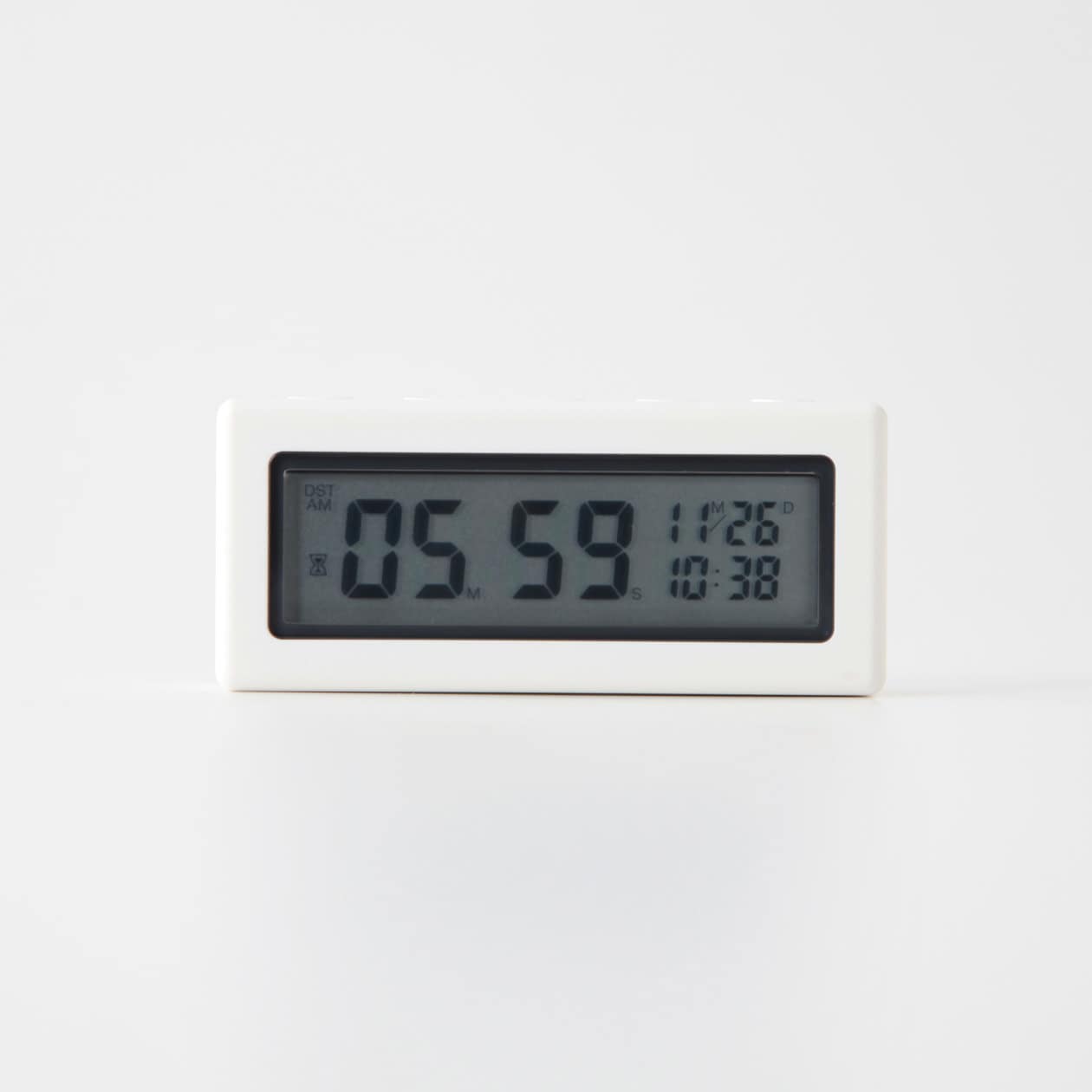 冷蔵庫などに貼り付けて使用できる時計です。タイマー、時計、カレンダーの使いたいモードを大きく表示させることができます。電源:ボタン電池(CR2032)×1個使用(付属)