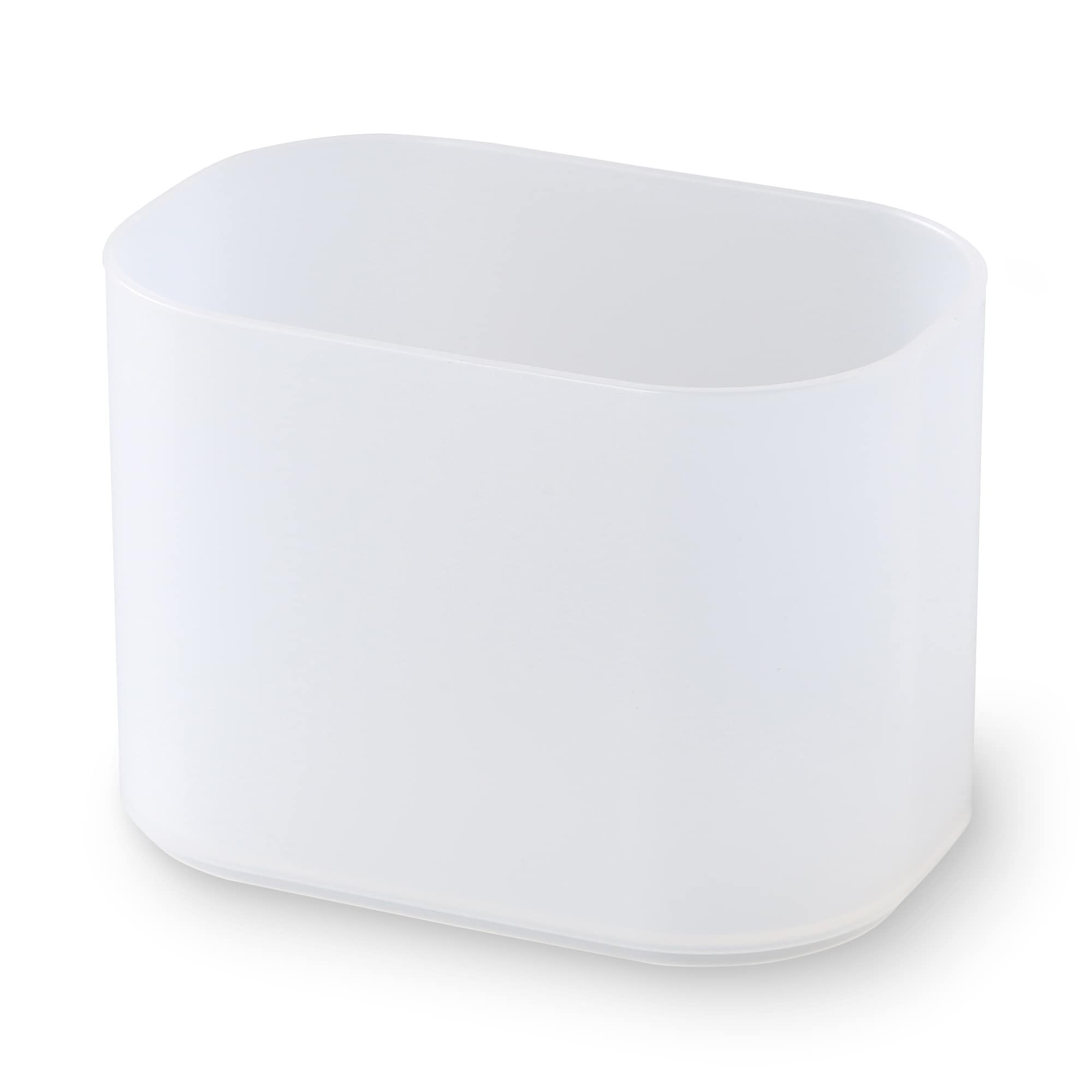 単独でも組み合わせても使える、半透明のメイクボックス。綿棒などの収納に便利です。