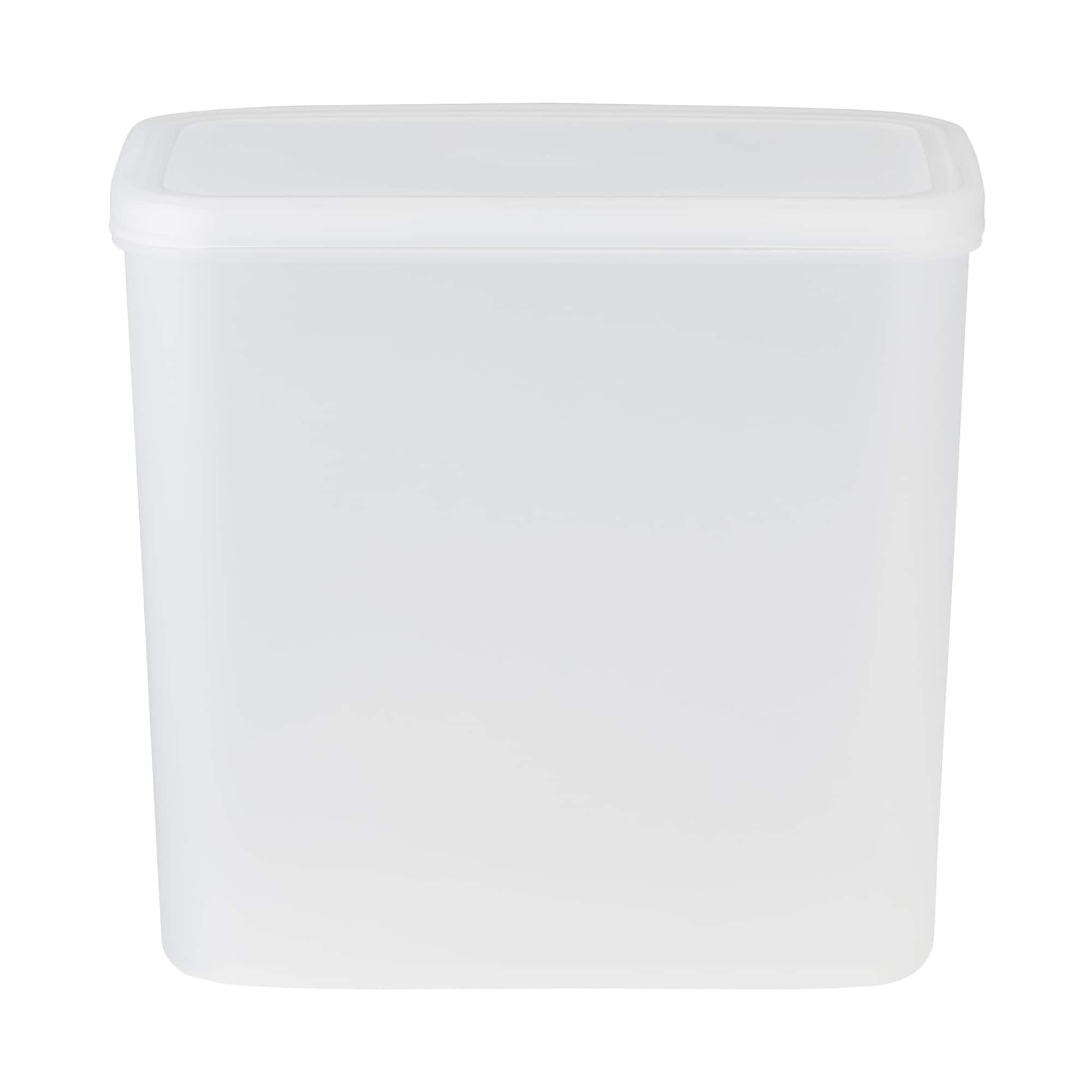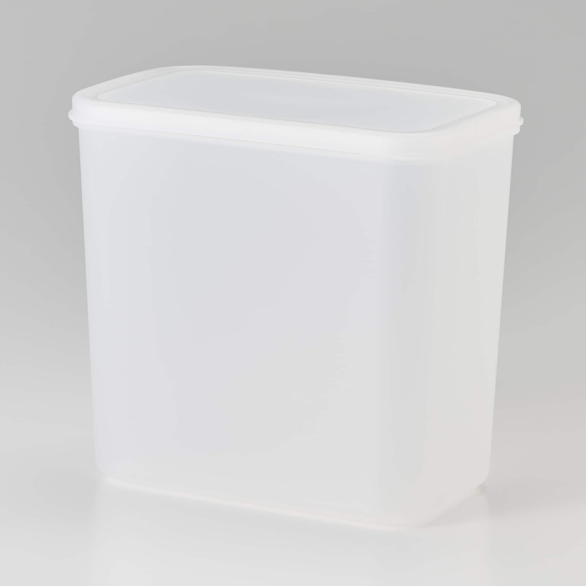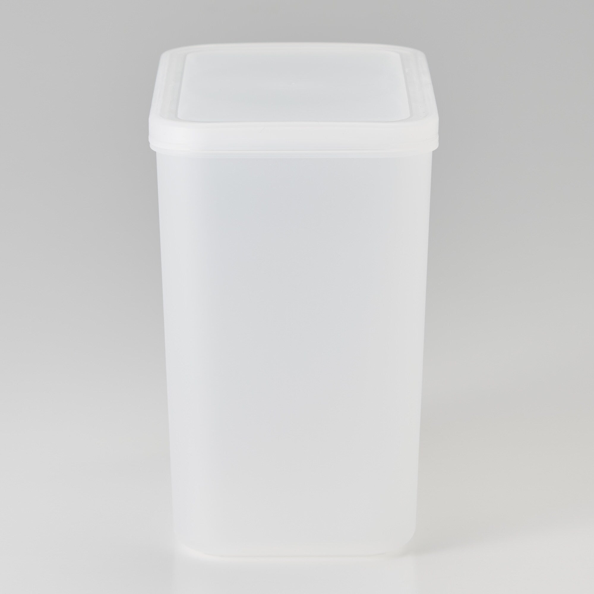 小麦粉や砂糖などの粉ものの保存と、煩雑になりがちな小さなものの収納を解決する容器です。蓋の4角に手掛かりをつけて開け閉めしやすいようにしています。