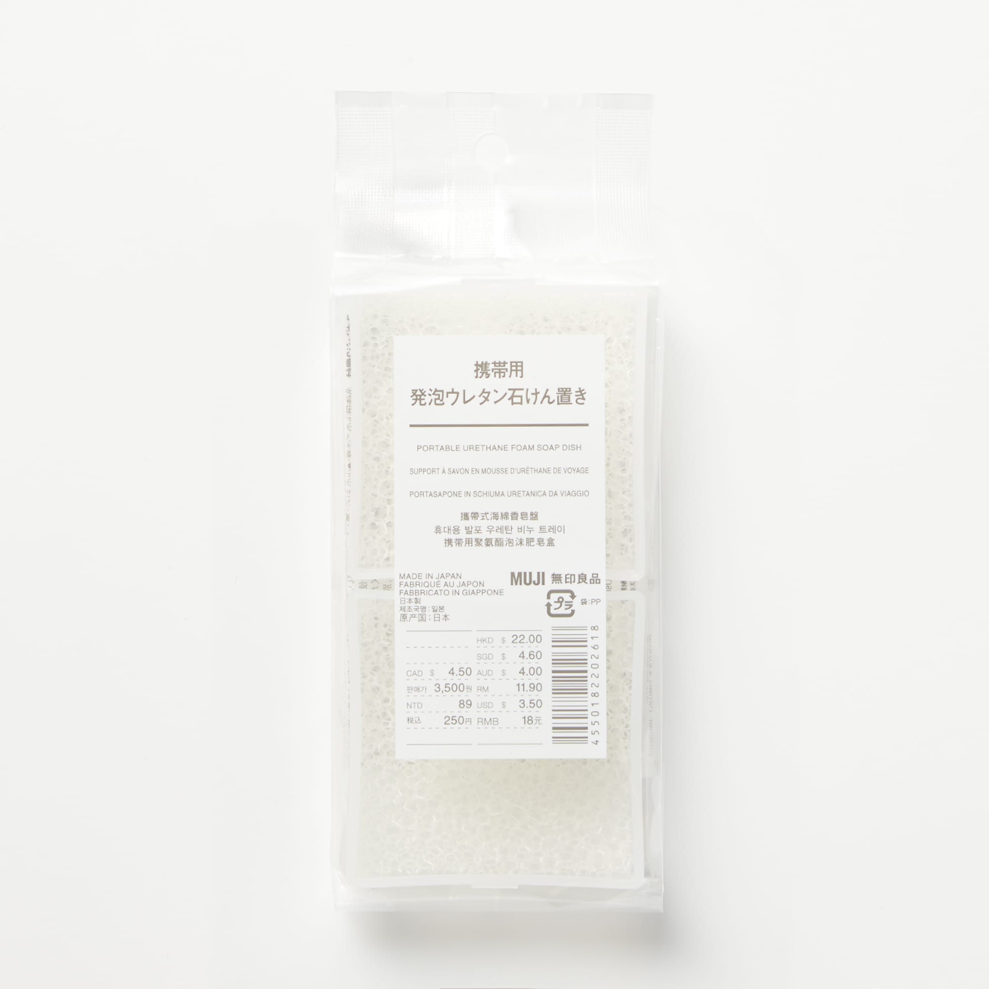 水切れの良い発泡ウレタンを使用した石けん置き。コンパクトで蓋付なので携帯に便利です。