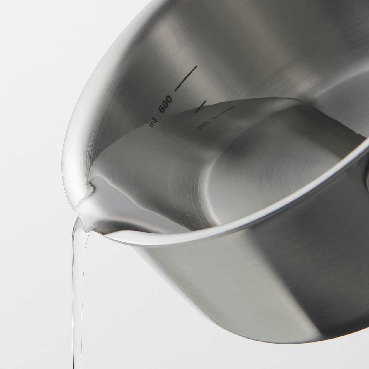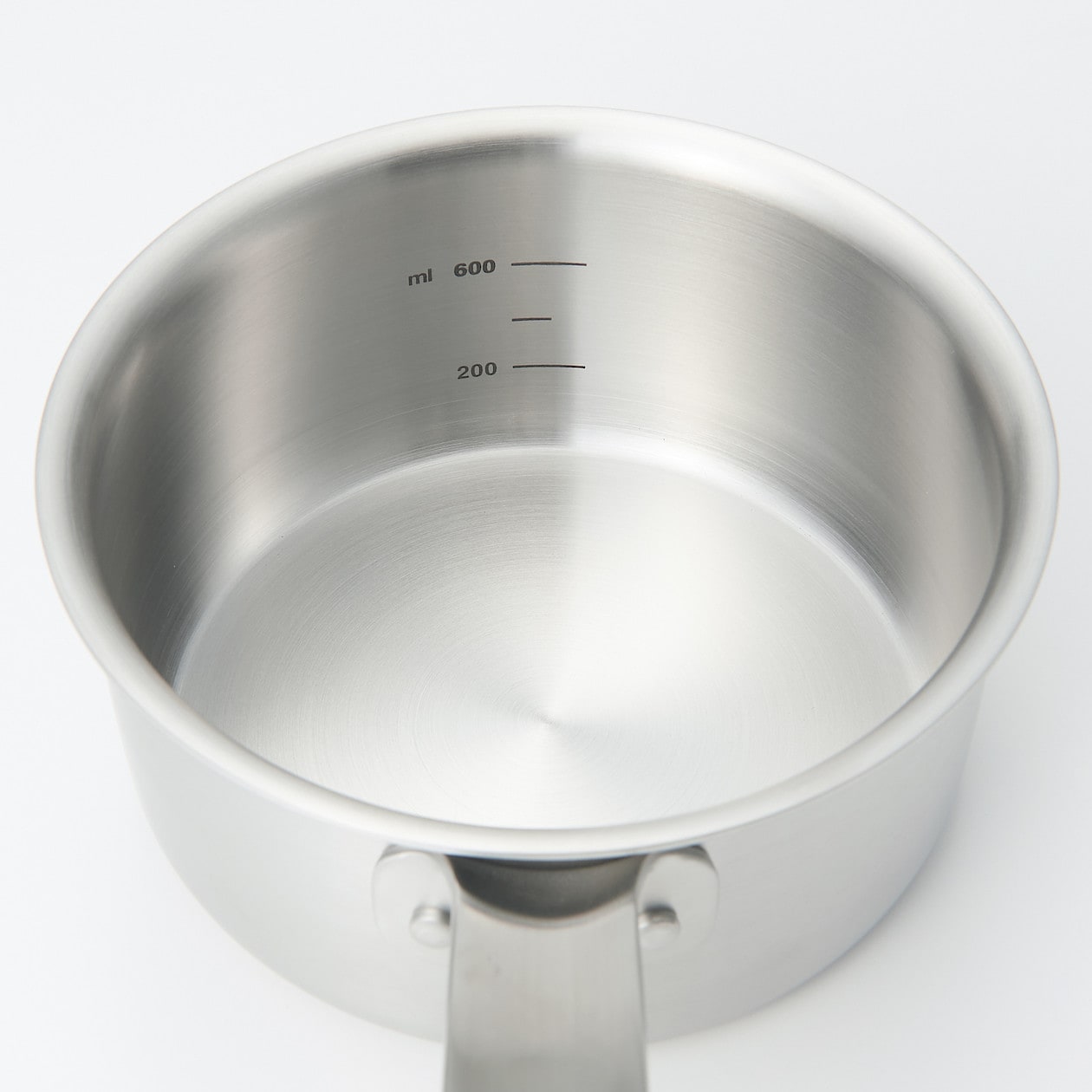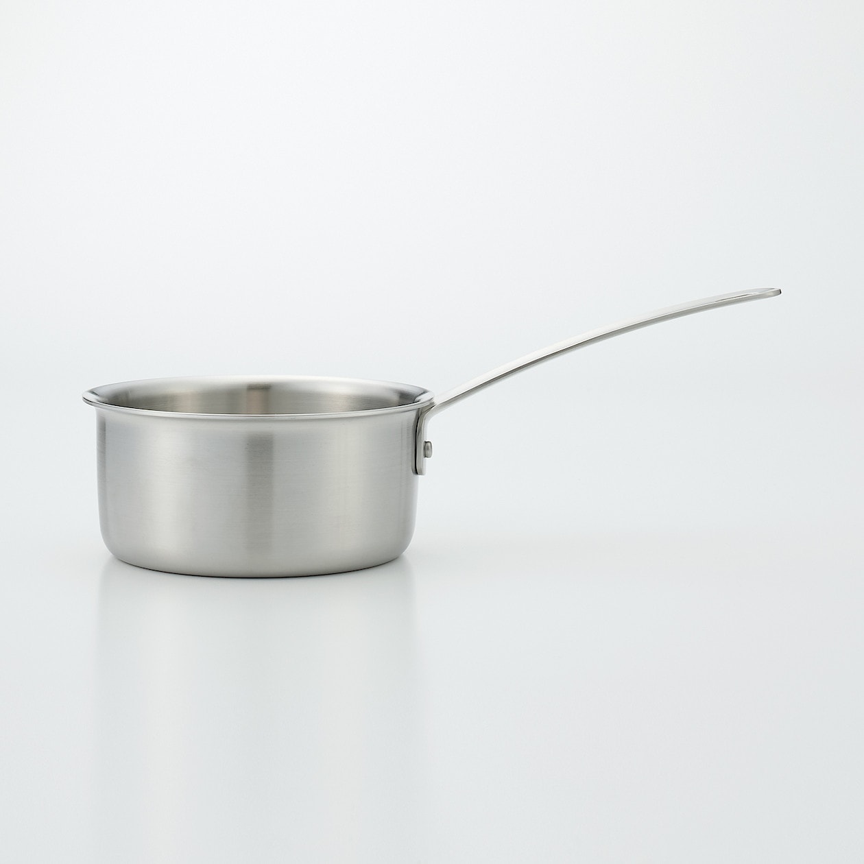 アルミをステンレスで挟み込んだ三層鋼を使用したミルクパンです。ハンドルもステンレスですのでオーブンに入れる事も可能です。さびに強い18-8ステンレスを使用しています。
