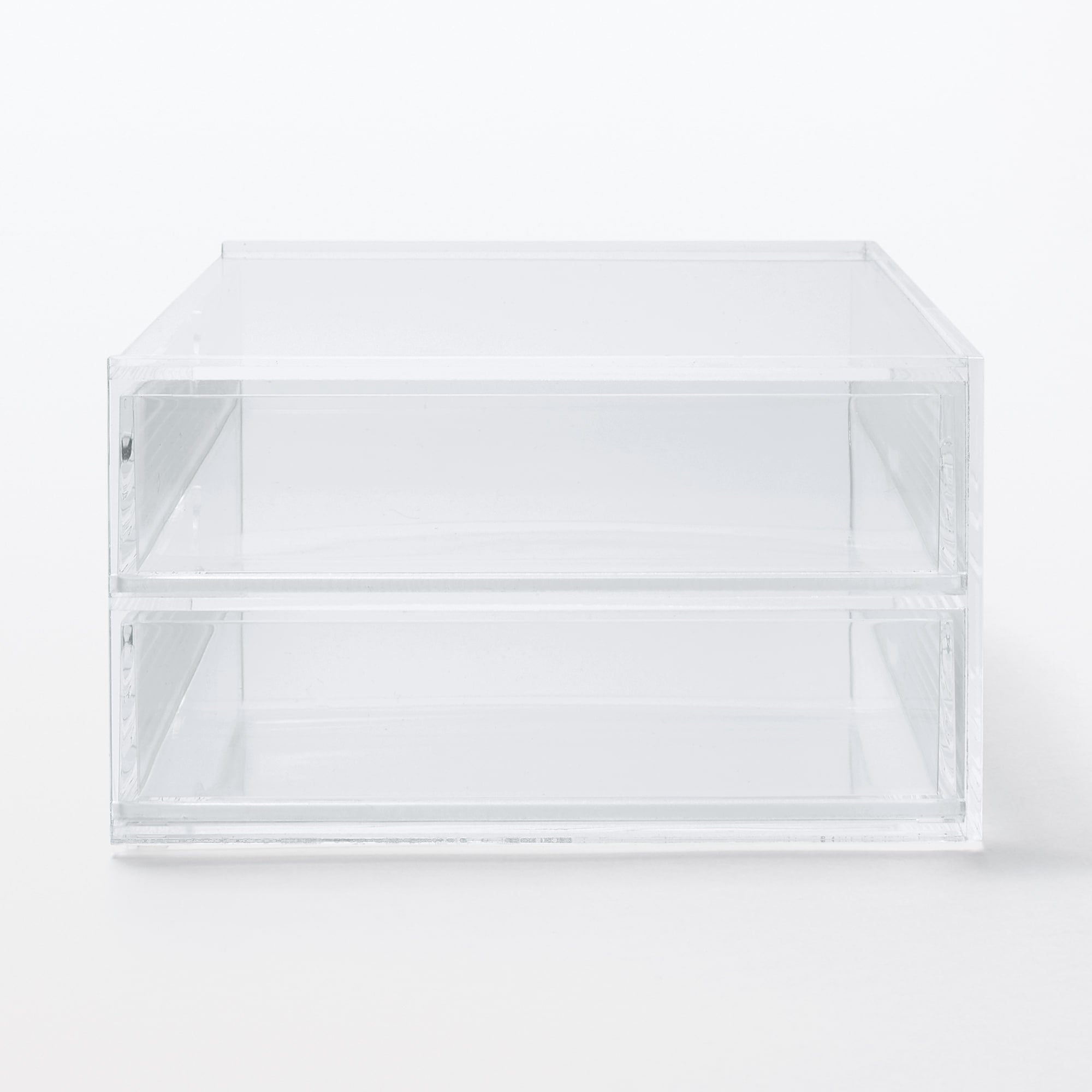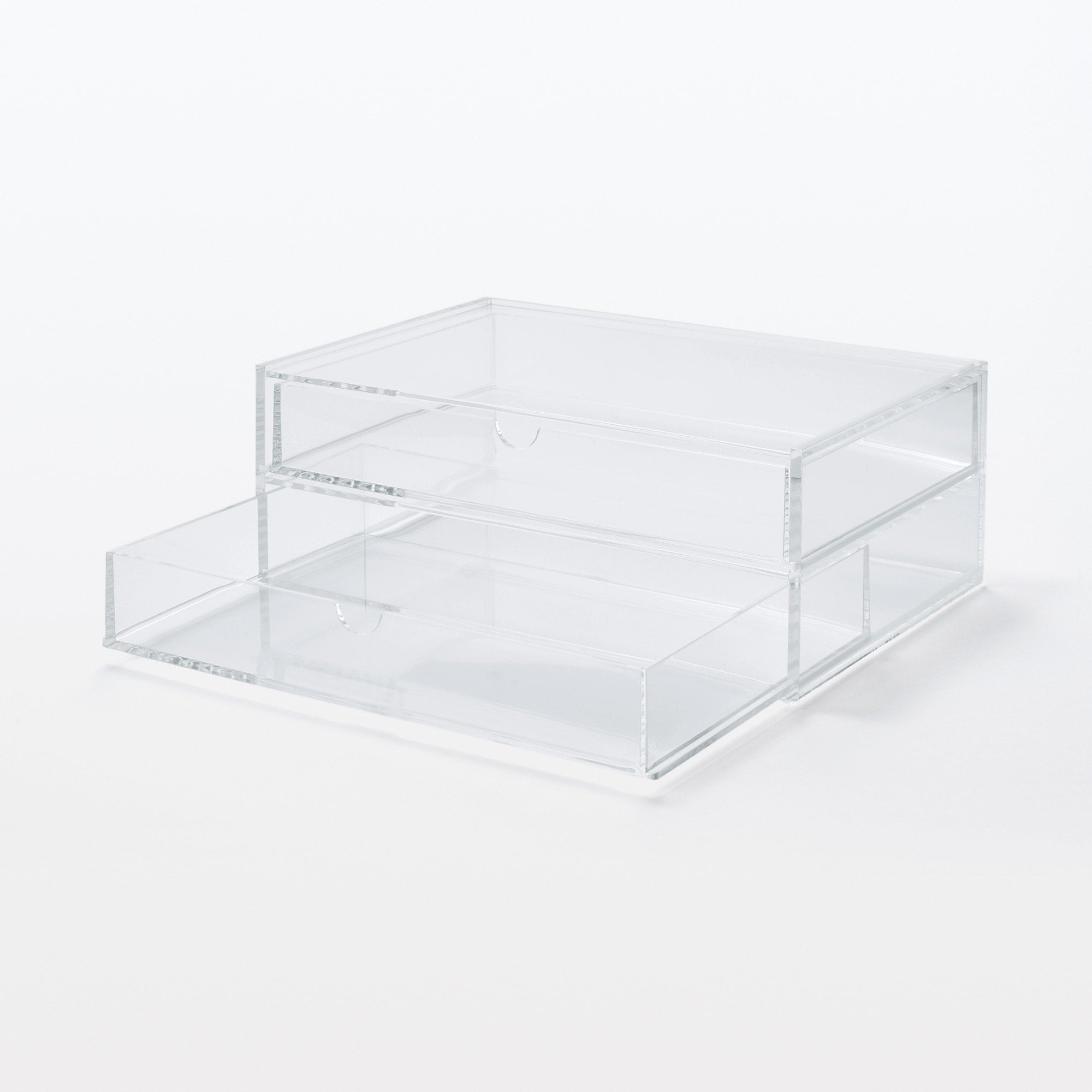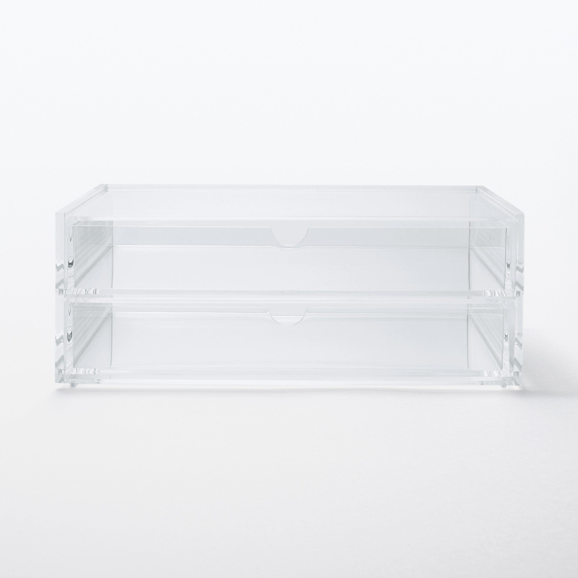2段まで積み重ねができる「見せる」収納に適した透明アクリルケースです。下段を引き出すと、すべてのアイテムを一覧できます。別売りの重なるベロアケース「格子(4550344596517)」「縦(4550344596524)」「ネックレス用(4550344596531)」「リング小物用(4550344596548)」を組み合わせて、ご使用いただけます。