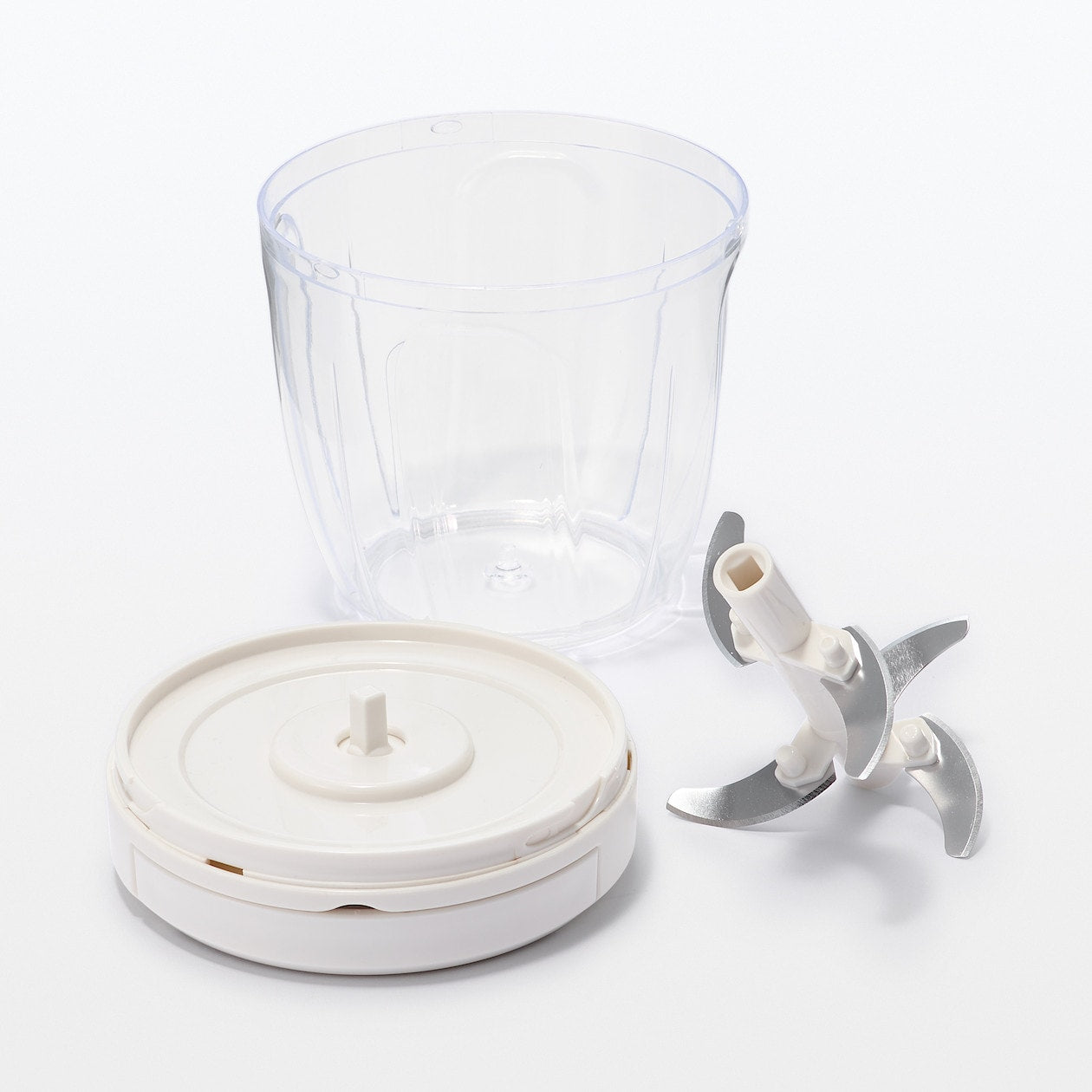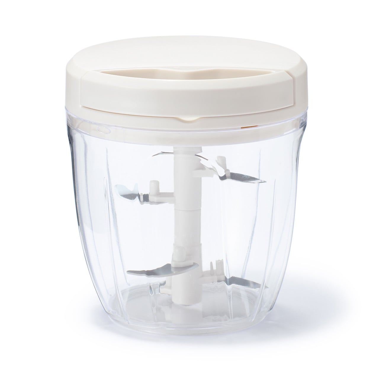 素早くカットできる5枚刃構造のチョッパーです。ハンドルを引くだけで、簡単にみじん切りができます。包丁・まな板を使わず、下ごしらえをパッと手早くできて便利です。