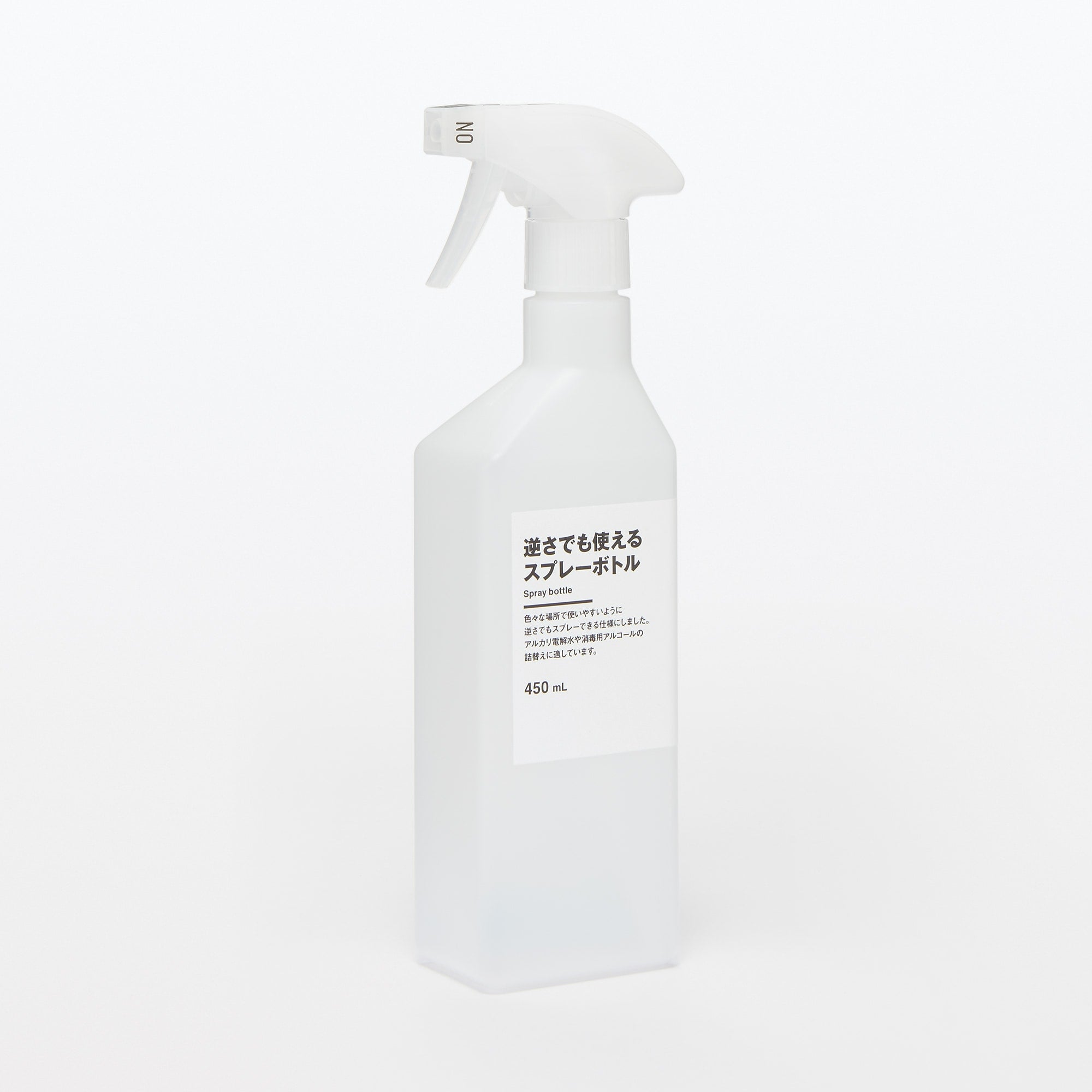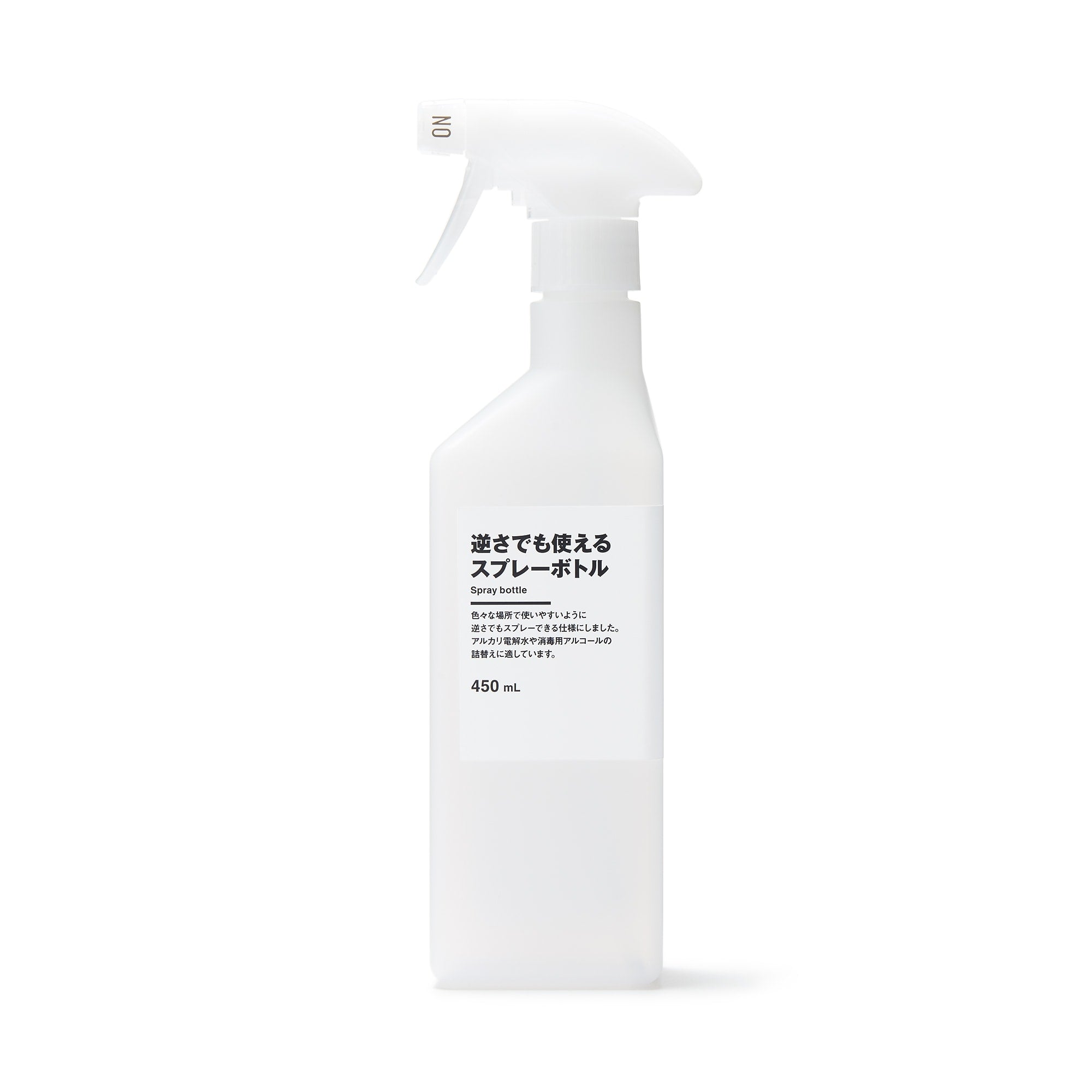 色々な場所で使いやすいように逆さでもスプレーできる仕様にしました。アルカリ電解水や消毒用アルコールの詰替えに適しています。