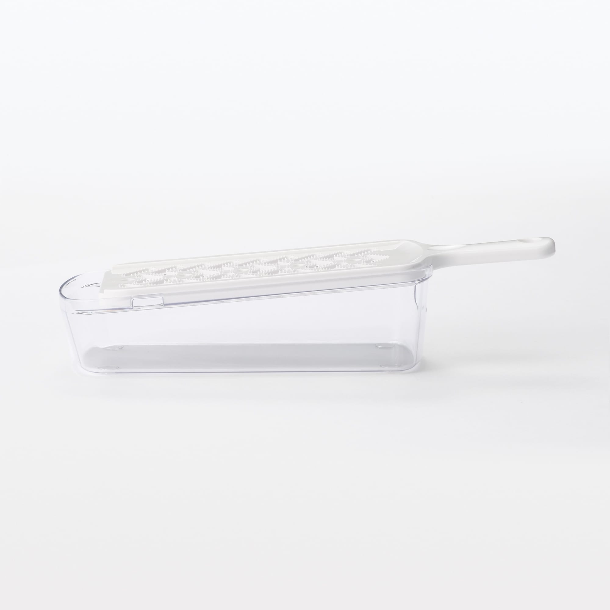 多方向に向いた大小の刃の構造と、傾斜をつけた受け皿により軽い力で楽におろせます。毎日の時短調理に役立ちます。おろし器にセットされている受け皿はもちろん、お手持ちのボールでも使えます。おろし器の先端の溝を引っかけるとずれにくく使いやすいです。
