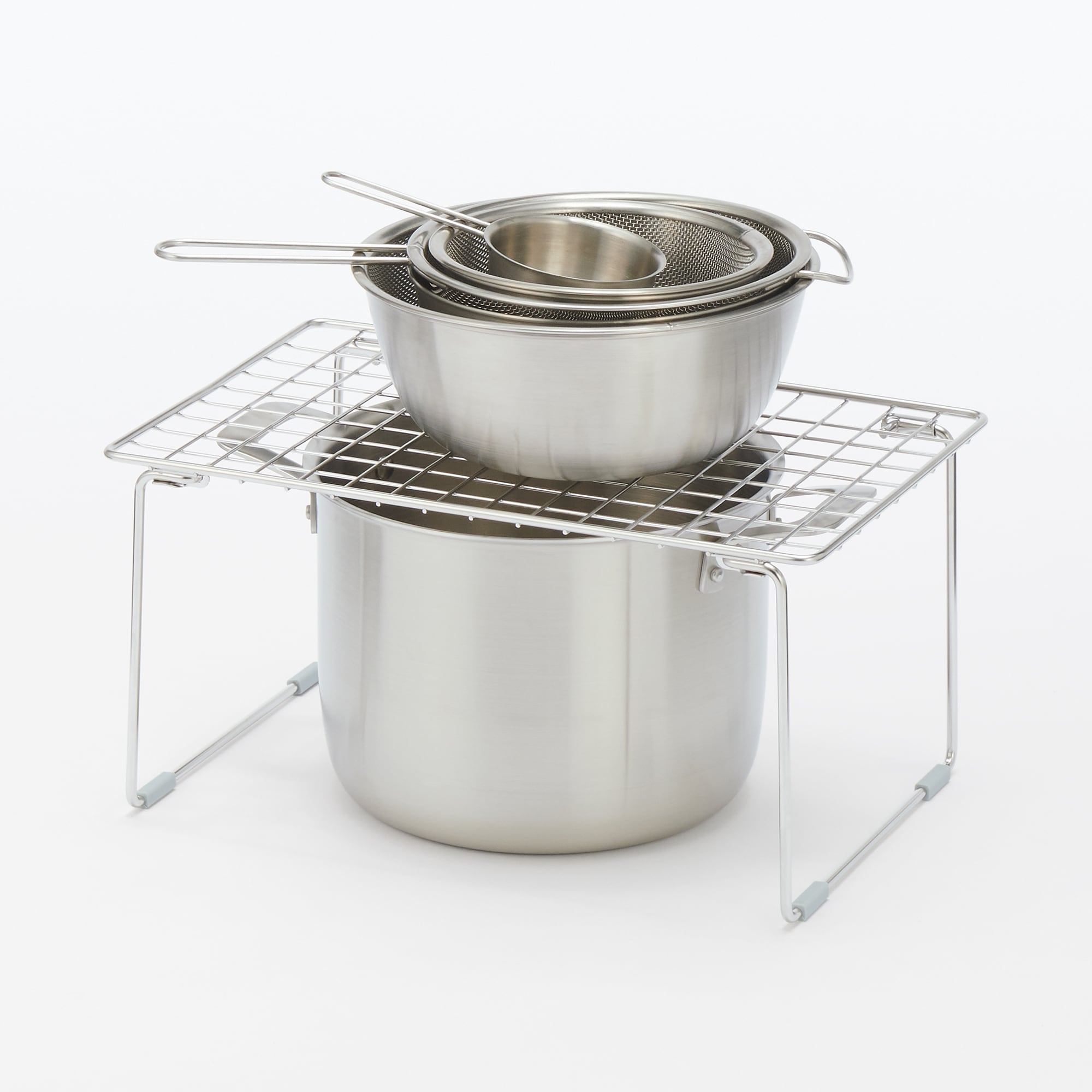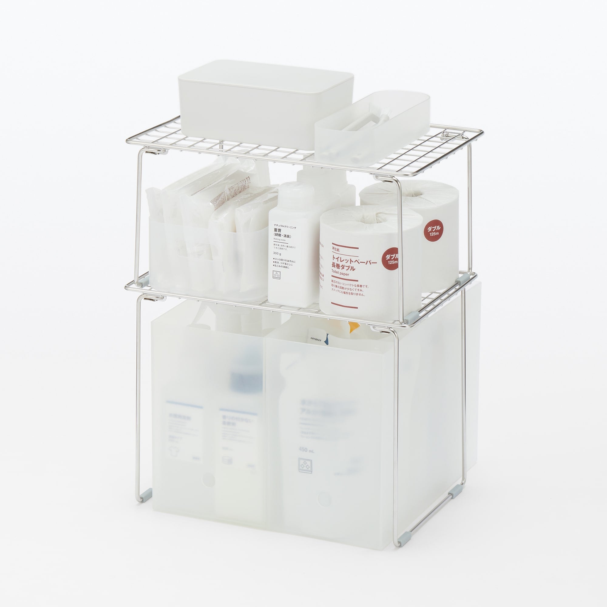 シンク下を有効活用できるラック。安定性のあるステンレス製で、鍋や洗剤等の重いものも収納できます。